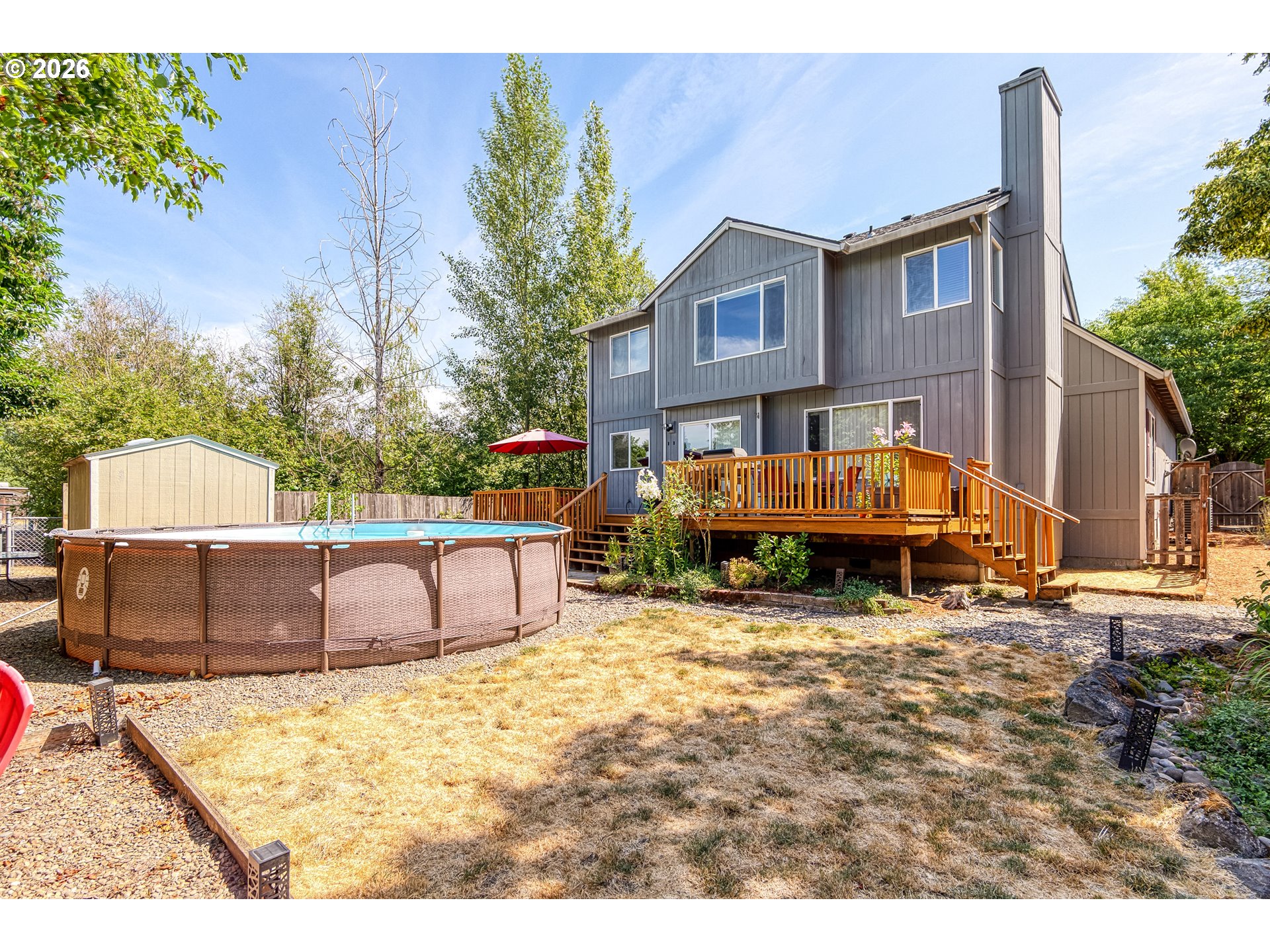 Imagine coming home to the space, flexibility, and comfort you’ve been looking for in one of the area’s most desirable neighborhoods. Ideal for multi-generational living, this home features a main-level bedroom and full bath perfect for guests or extended family, plus an oversized upstairs bonus room suited for a home office, media room, or playroom. Formal living and dining rooms flow effortlessly into the open-concept kitchen and family room, creating the perfect balance of entertaining and everyday ease. Central A/C provides year-round comfort, while the full-length west-facing deck captures beautiful seasonal sunsets beyond the neighboring hills and natural space behind the fully fenced backyard. Enjoy outdoor dining, quiet evenings, and memorable nights around the natural fire pit. A freestanding shed keeps yard and pool tools organized, and the extra-wide driveway with two-car garage offers generous parking. Just minutes away, Knox Ridge Park features swings, play areas, and picnic space, while local Dilley ES is ranked highest in the district. Best of all, in an area where many homes come with added costs, this property offers no HOA, no membership requirements, and no fees of any kind.
