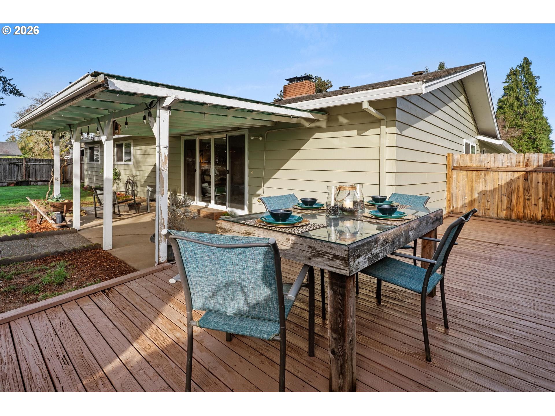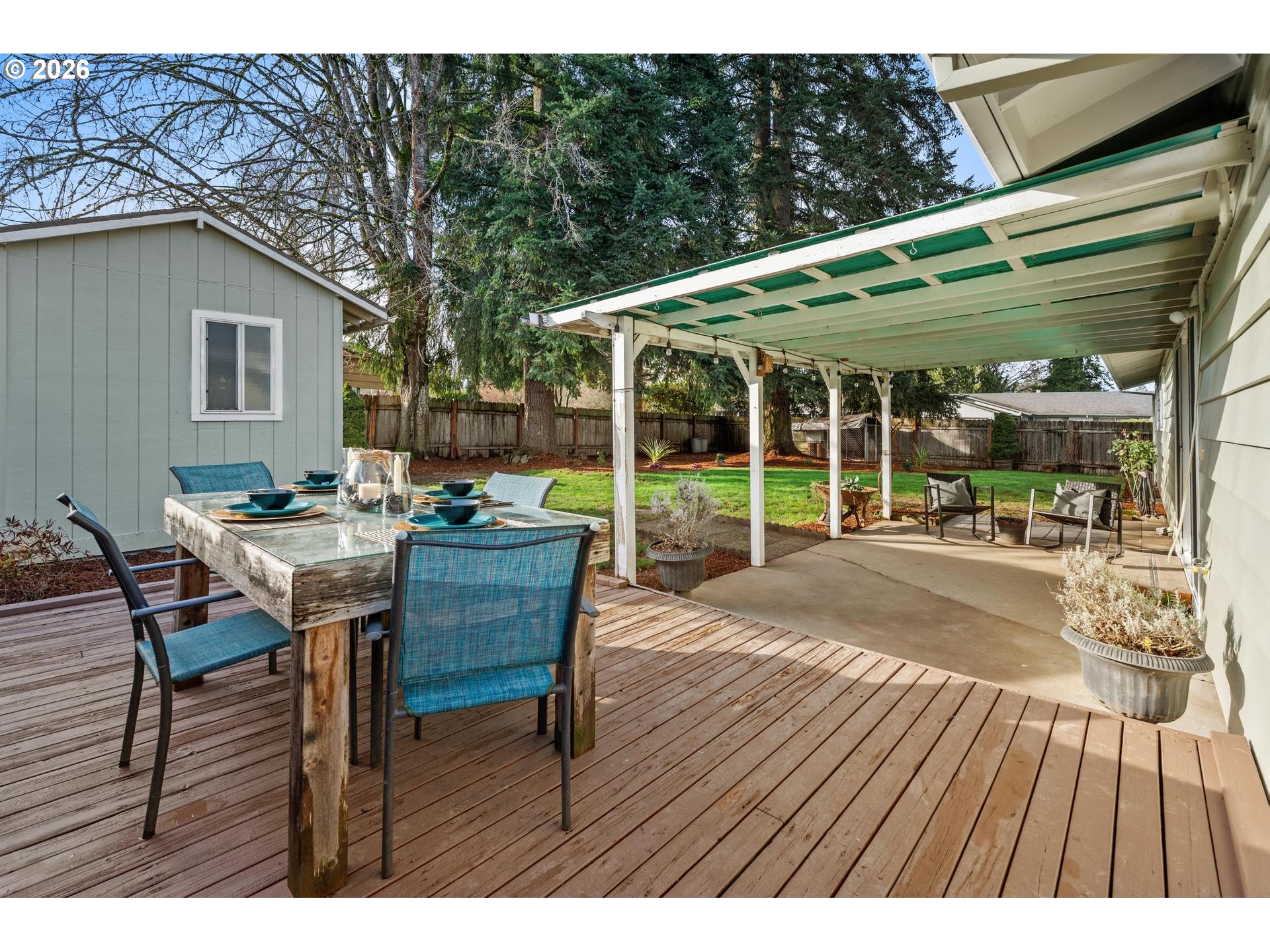 You’ll feel right at home the minute you enter this classic ranch style home with some modern updates. It features 3 bedrooms and 2 bathrooms within 1,664 sq/ft. Cozy up to a wood burning fireplace in the spacious living room. Generous dining area seamlessly blends to the kitchen—the ultimate entertainer's dream. Primary Bedroom offering dual closets for ample storage and main bath has a new double vanity, convenient for busy mornings. Second bath has walk-in shower off the dedicated laundry room with utility sink for the perfect 'drop zone' to keep outdoor messes separate from your main living space! Experience a seamless indoor-outdoor transition through an extra-wide 4-panel sliding door connecting the heart of the home to an extended outdoor living area. A covered patio and separate deck create a multi-functional space perfect for hosting or quiet relaxation. Fully fenced backyard has mature tree canopy for gentle shade, secluded retreat or safe space for kids and pets to play. Detached 7.5’ x 14.5’ shed for gardening, hobbies or extra storage. Plus, this property has room for your trailer or boat with no HOA. New interior and exterior paint. New LVP flooring throughout. A short walk to multiple schools & parks. Located in a fabulous Forest Grove neighborhood on a.24-acre corner lot. A must see to appreciate this friendly, slower paced neighborhood with tons of community pride.