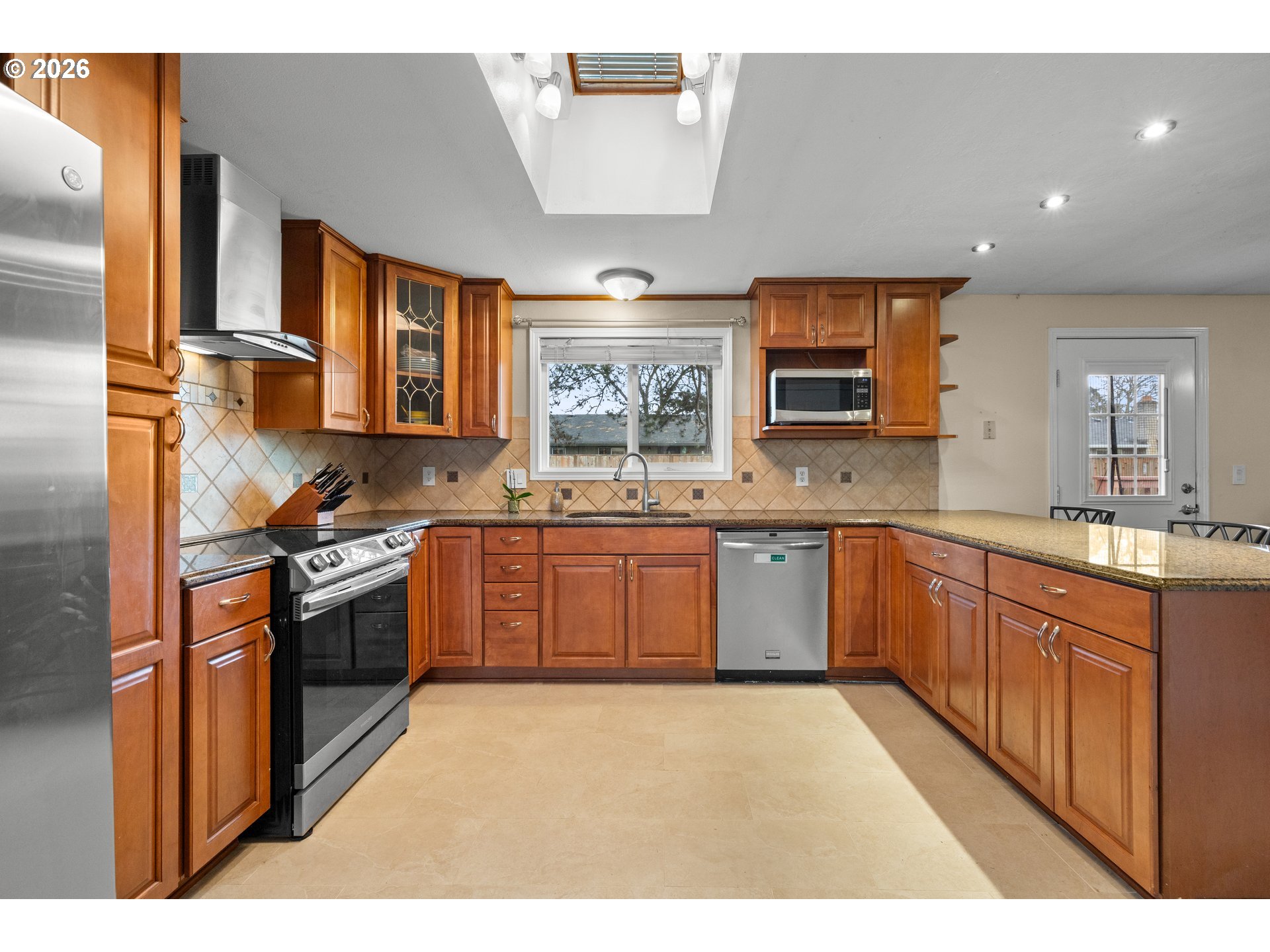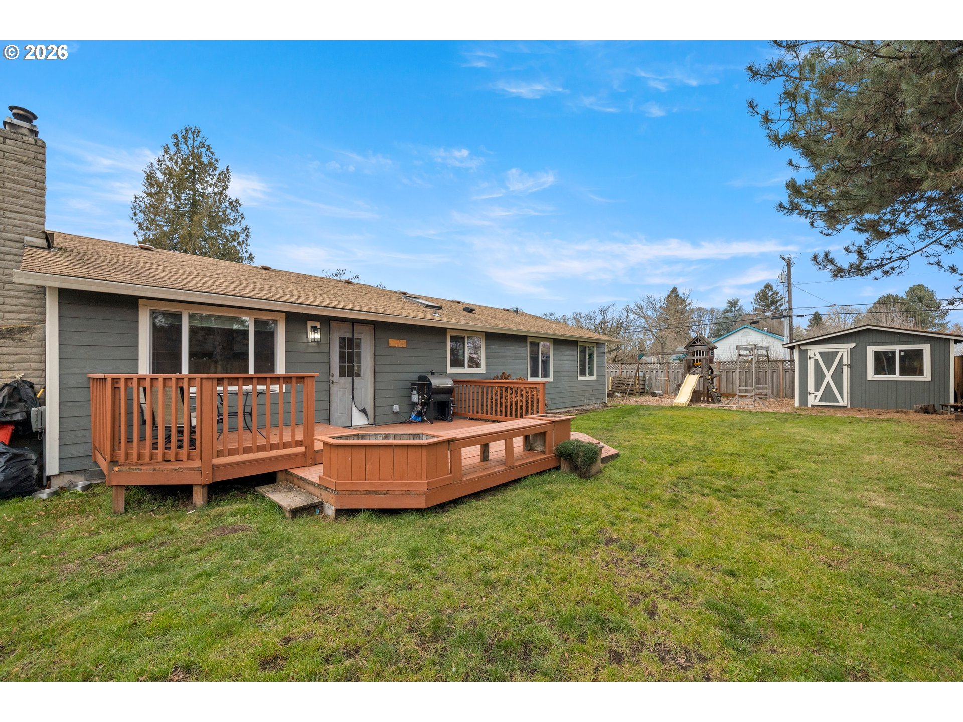 Charming single level home with three bedrooms and one bathroom, located on a generous 0.16 acre corner lot tucked away on a quiet cul-de-sac street. Hardwood floors welcome you into a formal dining area or flexible living space. The open kitchen showcases wood cabinets, granite countertops, stainless steel appliances, breakfast bar for three and newly installed tile flooring. The living room is warmed by a wood-burning fireplace insert. Enjoy outdoor living in the fenced backyard with a spacious deck, garden shed, and covered wood storage.Open house 3/14 1p-3p and 3/15 1p-3p [Home Energy Score = 4. HES Report at https://rpt.greenbuildingregistry.com/hes/OR10243910]