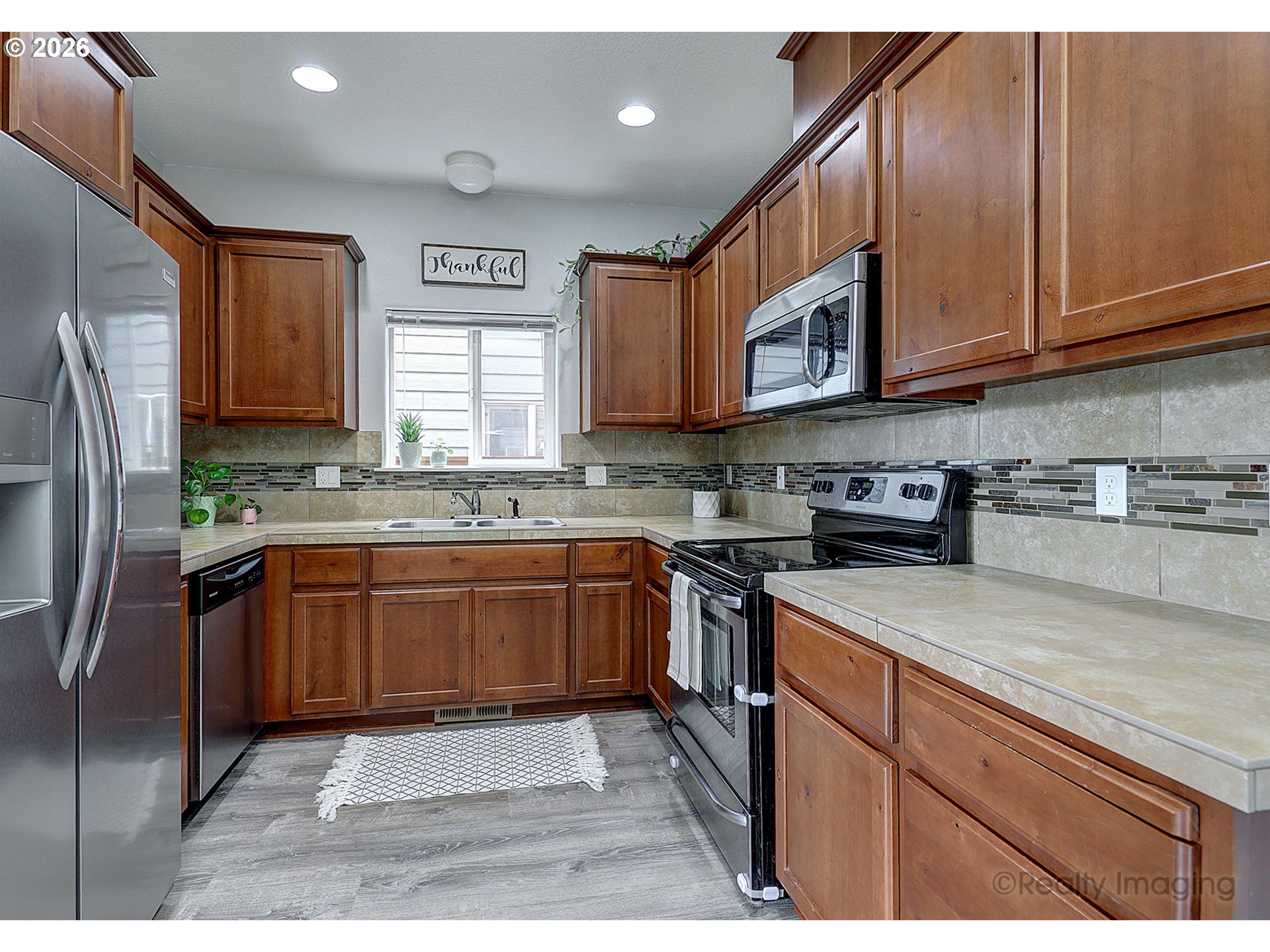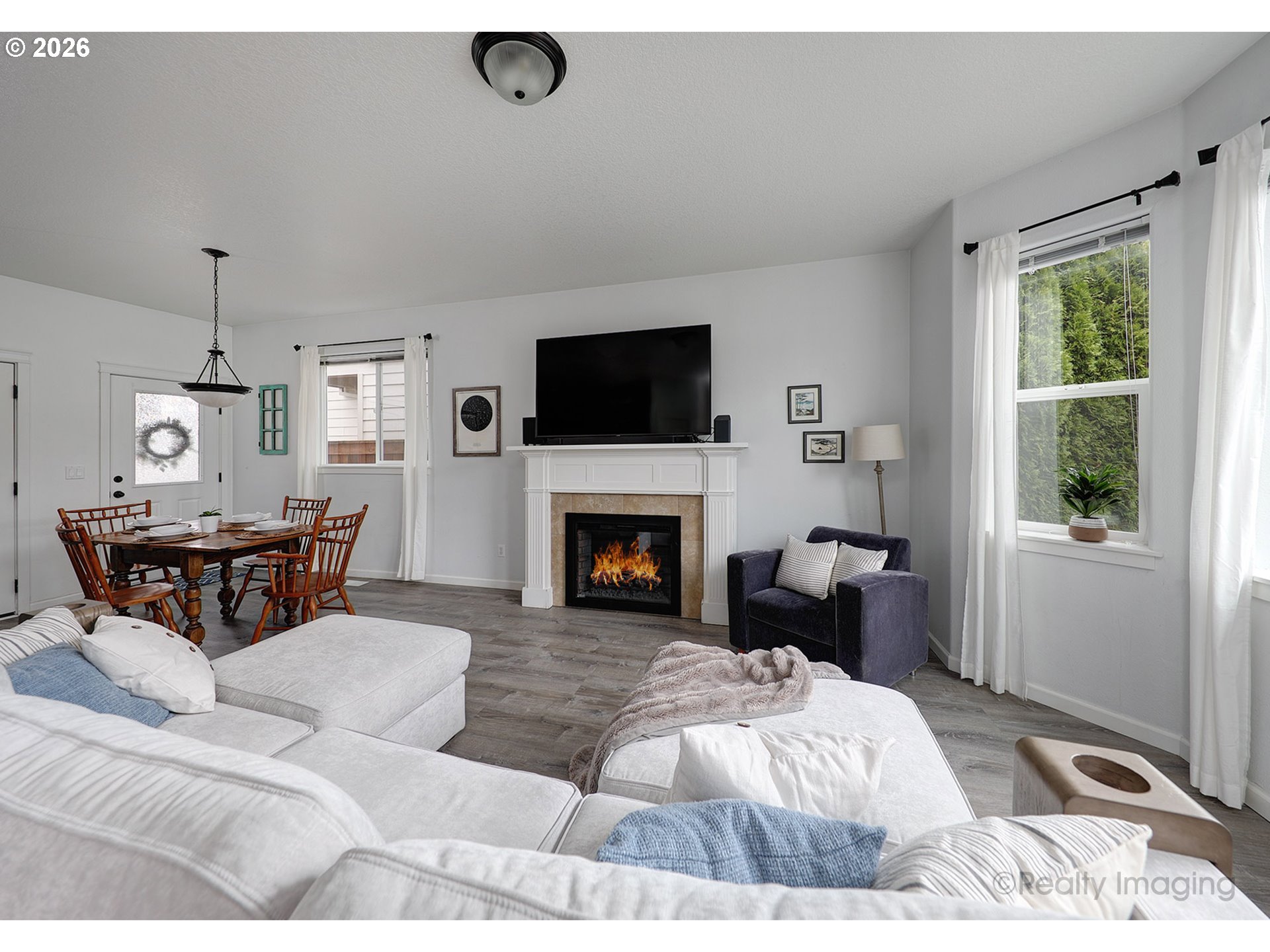 Welcome home to this inviting 3 bedroom, 2.5 bath detached home tucked into a quiet Forest Grove neighborhood. With 1,505 square feet of comfortable living space, this home blends modern convenience with everyday coziness. The open-concept main floor features luxury vinyl plank flooring, stainless steel appliances, a new built-in microwave, and a cozy fireplace - perfect for both relaxing nights in and easy entertaining. Step outside to the oversized, private front patio, ideal for hosting friends or enjoying a quiet morning coffee. Upstairs, the oversized primary bedroom impresses with vaulted ceilings and two closets, including a walk-in. Forced air heating and air conditioning keep things comfortable year-round, and the attached two-car garage adds everyday practicality. Refrigerator, washer, and dryer are all included. Conveniently located near Pacific University, local wineries, parks and trails, and downtown Forest Grove, this home offers a great balance of peaceful living with easy access to everything you love about the area.