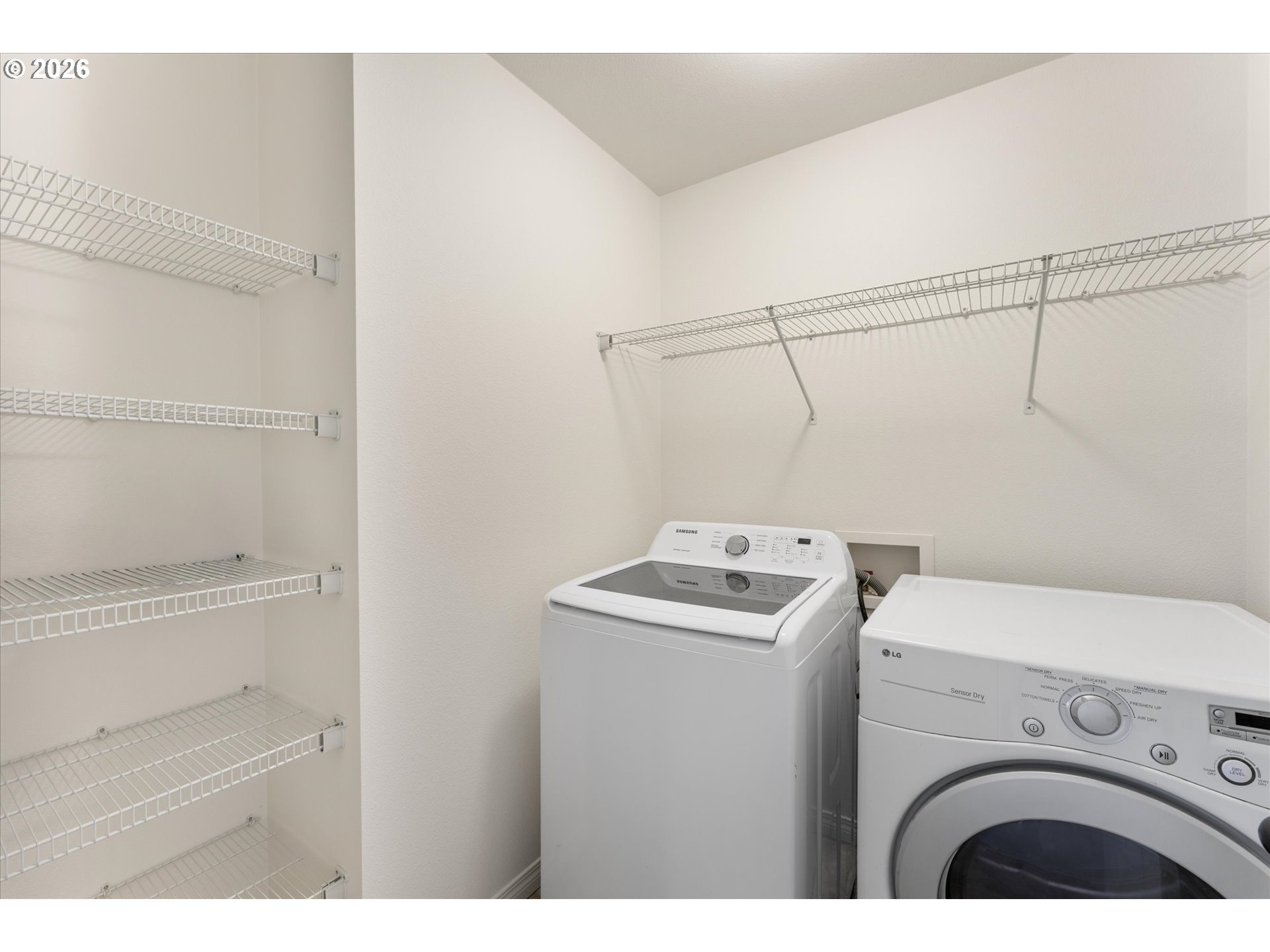 Beautifully updated and impeccably maintained, this one-owner open-concept home is designed for comfortable everyday living and easy entertaining. Recent updates include professional interior paint, new blinds, new carpet with premium padding, and refreshed bathroom fixtures.The kitchen features soft-close cabinets and Samsung appliances, including a new gas range and microwave, along with a newer dishwasher and refrigerator. A center island provides additional prep space, storage, and seating—making it a natural gathering place.The warm, inviting living room with a gas fireplace flows effortlessly into the dining area and kitchen. Sliding glass doors lead to a deck and fenced outdoor space, perfect for outdoor dining, morning coffee, summer get-togethers, or simply unwinding at home.Upstairs, you’ll find a versatile flex space, two additional bedrooms, and a convenient laundry room. The primary suite offers a peaceful retreat with a tray ceiling, en-suite bath, and a generous walk-in closet.Thoughtful upgrades include bath and laundry fans upgraded to countdown timers, wall safe, new 1/2 bath sink, fully finished garage with new opener. AC to keep you cool in the summer. All appliances including washer/dryer included, make this home move-in ready.Ideally located near parks, scenic trails, and shopping, this home also benefits from HOA dues that cover front yard and neighborhood landscaping—providing easy, low-maintenance living with ample parking in a desirable setting. [Home Energy Score = 7. HES Report at https://rpt.greenbuildingregistry.com/hes/OR10245214]