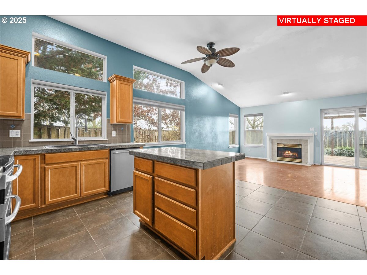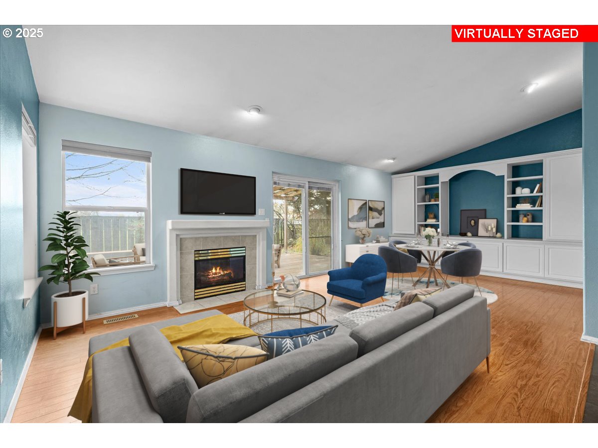 Spacious one story ranch in a North Plains neighborhood offering an outstanding opportunity to personalize and build equity. This 3-bed, 2-bath home sits on a quiet street and features a functional 1,784 sq ft layout with great natural light and an attached two-car garage. Inside, the living room includes a gas fireplace and built-ins, creating a warm and inviting focal point. The kitchen is open and part of the great room concept, offering an island and excellent potential for a gathering space.The exterior offers a private backyard and plenty of space to re-imagine outdoor living. Located just minutes from parks, schools, and all the conveniences of North Plains and the Hwy 26 corridor, this property appeals to buyers seeking space and one-level living. Homes of this size and layout are rarely available in this pocket of town.