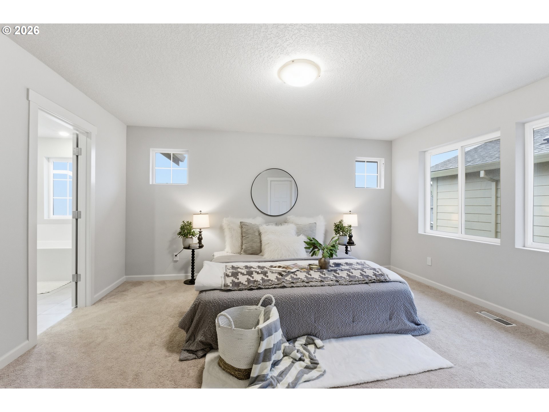 Better than new! This beautifully finished 4-bedroom, 2.5-bath home, built in 2023, offers 1,932 sq ft of light-filled living space. The open-concept layout features a stylish kitchen with darker cabinetry, striking white granite countertops, and stainless steel appliances, creating a beautiful contrast and functional workspace. The inviting living area is anchored by a cozy gas fireplace, perfect for relaxing evenings at home. Large windows fill the space with natural light, enhancing the bright and welcoming feel throughout. With attractive finishes inside and a low-maintenance exterior, this home offers comfortable living with modern style.