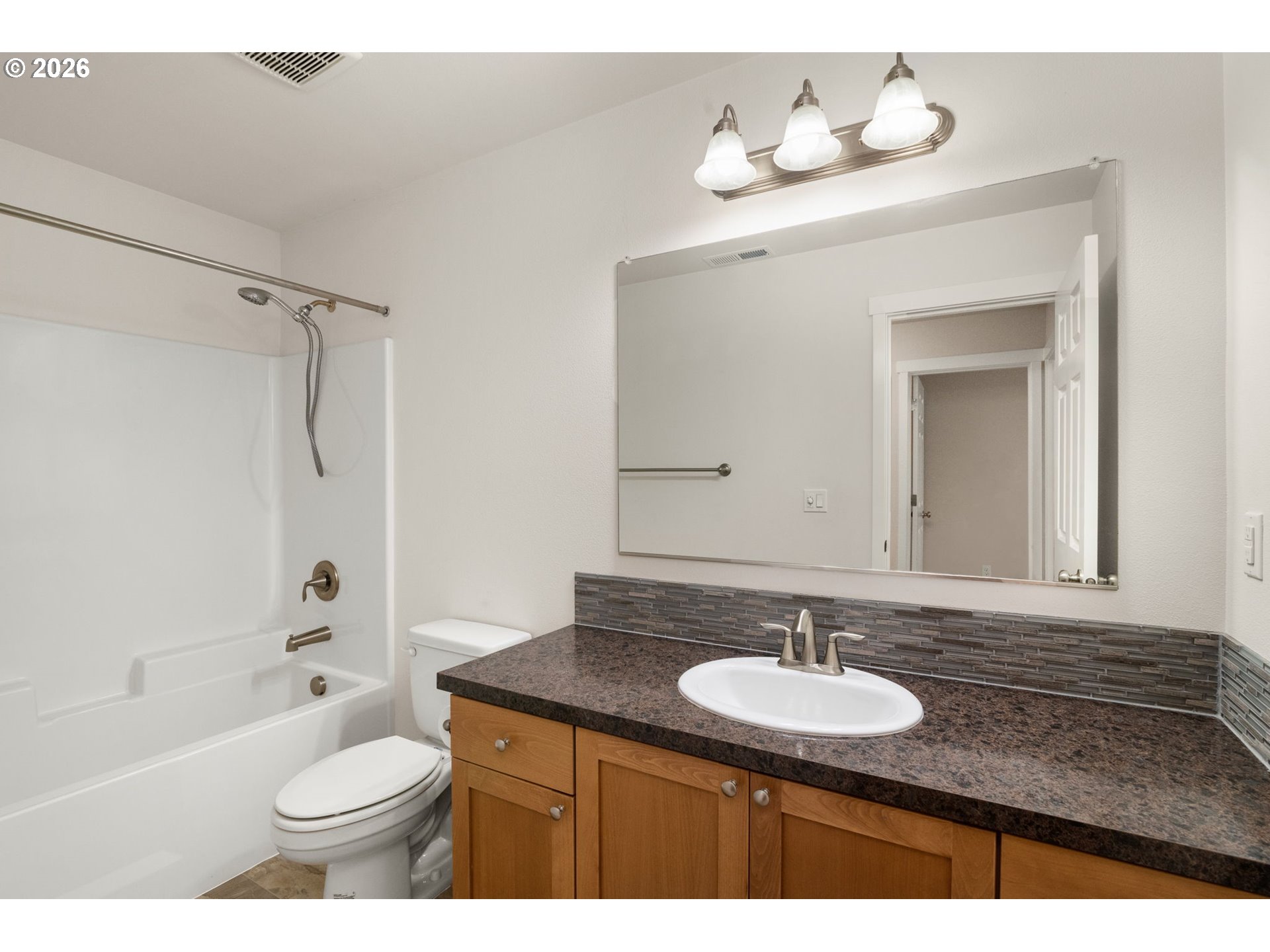 This lovingly maintained home offers a functional single-level layout! A charming front porch welcomes you into comfortable living spaces designed for easy everyday living. The flexible floor plan includes both a living room and family room, providing ample space to gather, relax, or entertain. The kitchen is thoughtfully designed with stainless steel appliances, a gas range, built-in microwave and dishwasher, pantry, island, and durable laminate flooring. A nearby dining area connects seamlessly to the main living spaces, creating a natural flow for daily life and hosting. The primary bedroom features vaulted ceilings, a spacious ensuite with double sinks, shower/tub combination, and a walk-in closet. Two additional bedrooms offer versatility for guests or a home office. A dedicated laundry room includes extra storage. Outside, the fully fenced backyard features a composite deck and yard space ready for relaxing or entertaining. Conveniently located just minutes from downtown North Plains, local shops, parks, and highway access, you’ll find comfort, convenience, and exceptional value with this move-in ready home!