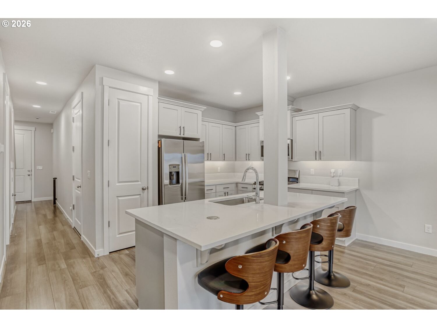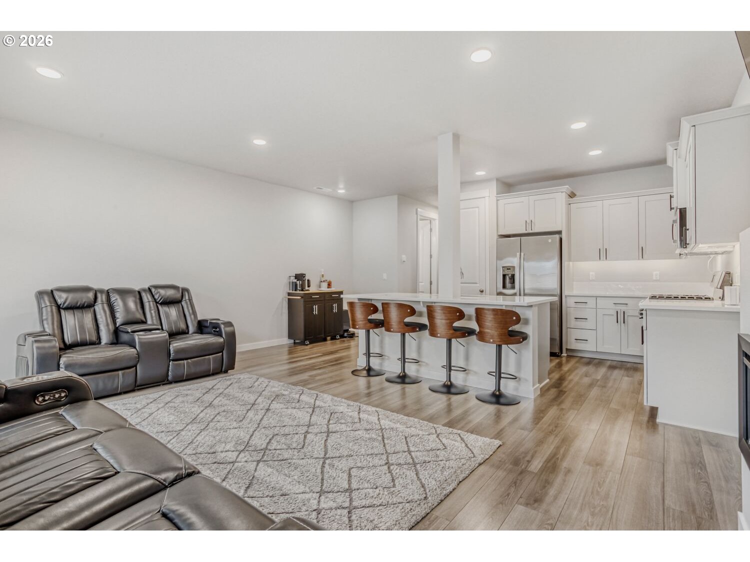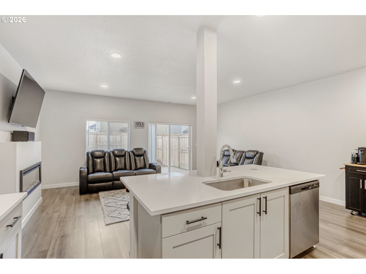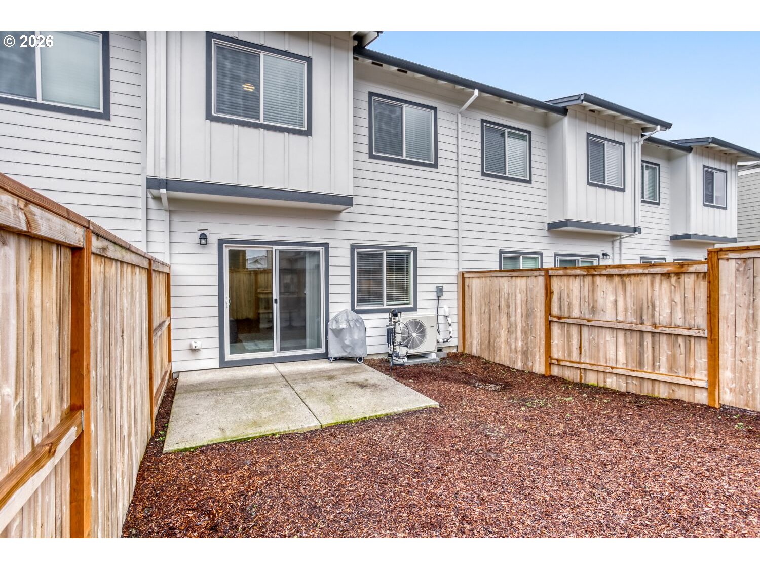 Our loss your gain, fantastic new construction home purchased new 06/2025. Seller's work is relocating them. You will enjoy the 14k in upgrades: Starting at the large and impressive executive front door, high ceilings, stainless steel refrigerator and gas oven, washer and dryer, smart lights: front porch, great room and primary bedroom, lights under kitchen cabinets, smart thermostat and an extended concrete patio for an extra large outdoor entertaining patio. Plus, this home has a fenced backyard for a little bit of your own space. Garage has add 50-amp 240V Dedicated Circuit for future car charger. Home is very clean, light and bright. The great room has an electric fireplace and sliding glass door and a nice size kitchen with pantry. Located in fantastic new construction neighborhood with several wonderful parks to chose from. Sofas, bar stools, tv are negotiable ask for list of negotiable personal items.