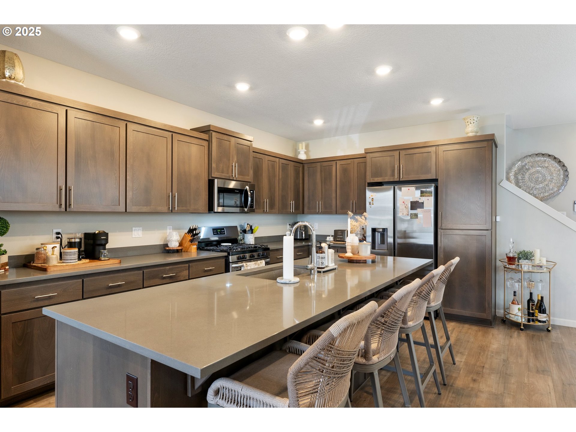 Dishwasher, Disposal, FreeStandingGasRange, FreeStandingRefrigerator, Island, Microwave, Quartz, StainlessS