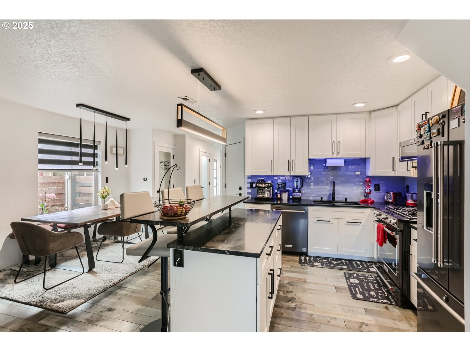 A rare find—packed with custom upgrades and thoughtful details throughout. From the moment you step inside this beautifully upgraded home, you’ll notice the craftsmanship and custom finishes that set this property apart. The home features vaulted ceilings with ceiling fans, custom-ordered hardwood floors, and a bright, open layout designed for comfort and style. The kitchen is a true standout, offering a gas stove with pot filler, bar-height countertop, and modern appliances—perfect for cooking and entertaining. Every closet in the home has been elevated with custom built-in shelving, adding exceptional storage and organization. The bathrooms are beautifully updated with rain showers, tile flooring, premium finishes, and remote-controlled night lighting for convenience and ambiance. Additional smart upgrades include lighting on the stairway, zebra blinds, Ring doorbell, smart thermostat, water heater, and washer, making the home both functional and elegant. Enjoy outdoor living year-round under the covered patio finished with Italian stone, complete with gas hook-up for a grill—ideal for entertaining or relaxing evenings. A built-in wall vacuum system adds to the home’s clean, efficient design. Situated minutes from shopping, parks, and high-tech employers, with NO HOA fees or restrictions, this property is perfect for primary residence as well as short or long term rental. This truly special home combines custom craftsmanship, smart features, and timeless style—ready for its next owner to enjoy.(seller is related to the listing agent).