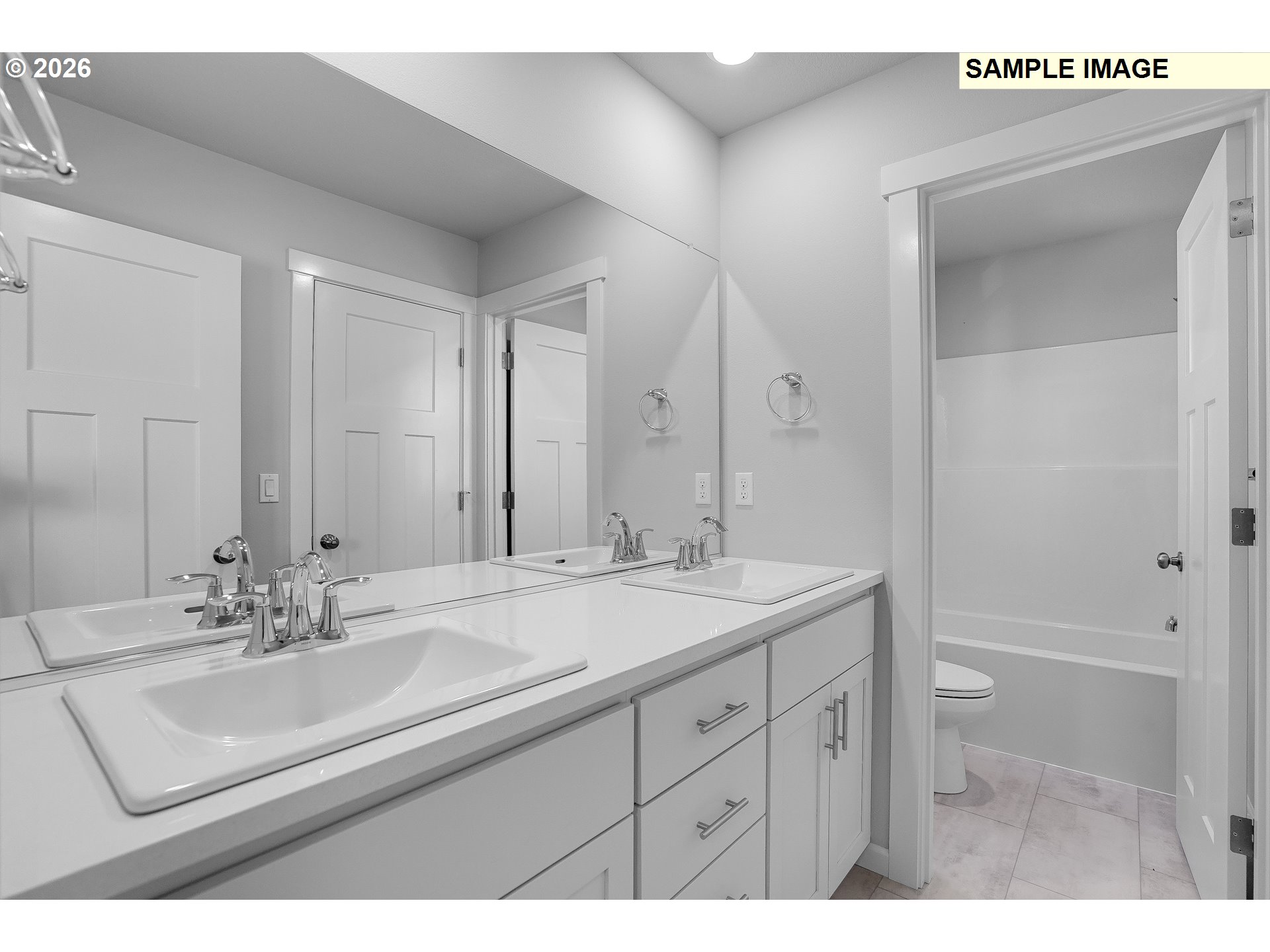 Welcome to Brynhill by Lennar and the Chambrey plan in beautiful North Plains. Multitasking and entertaining is made simple in this two-story 3 bedroom, 2.5 bath single-family home. An open floorplan is shared between the great room, kitchen and nook on the first level of the home. Sliding glass doors behind the nook lead to the outdoor space. All three bedrooms are located upstairs, including the primary suite with an en-suite bath featuring double vanities with separate bath and shower plus a spacious walk-in closet. The two secondary bedrooms share a convenient Jack-and-Jill style bathroom in between them. Interior highlights include quartz countertops, shaker-style cabinets, LVP flooring in kitchen/entry way, LVT flooring in baths, a cozy fireplace in the great room and much more. This home also includes central air conditioning, a refrigerator, washer and dryer, and blinds—all at no extra cost! This brand new community is loaded with amenities including multiple onsite parks featuring pickleball, basketball, a putting green, a cornhole area, playgrounds, and picnic areas. Homesite 433, estimated completion: Spring 2026. Incentives available with use of preferred lender.