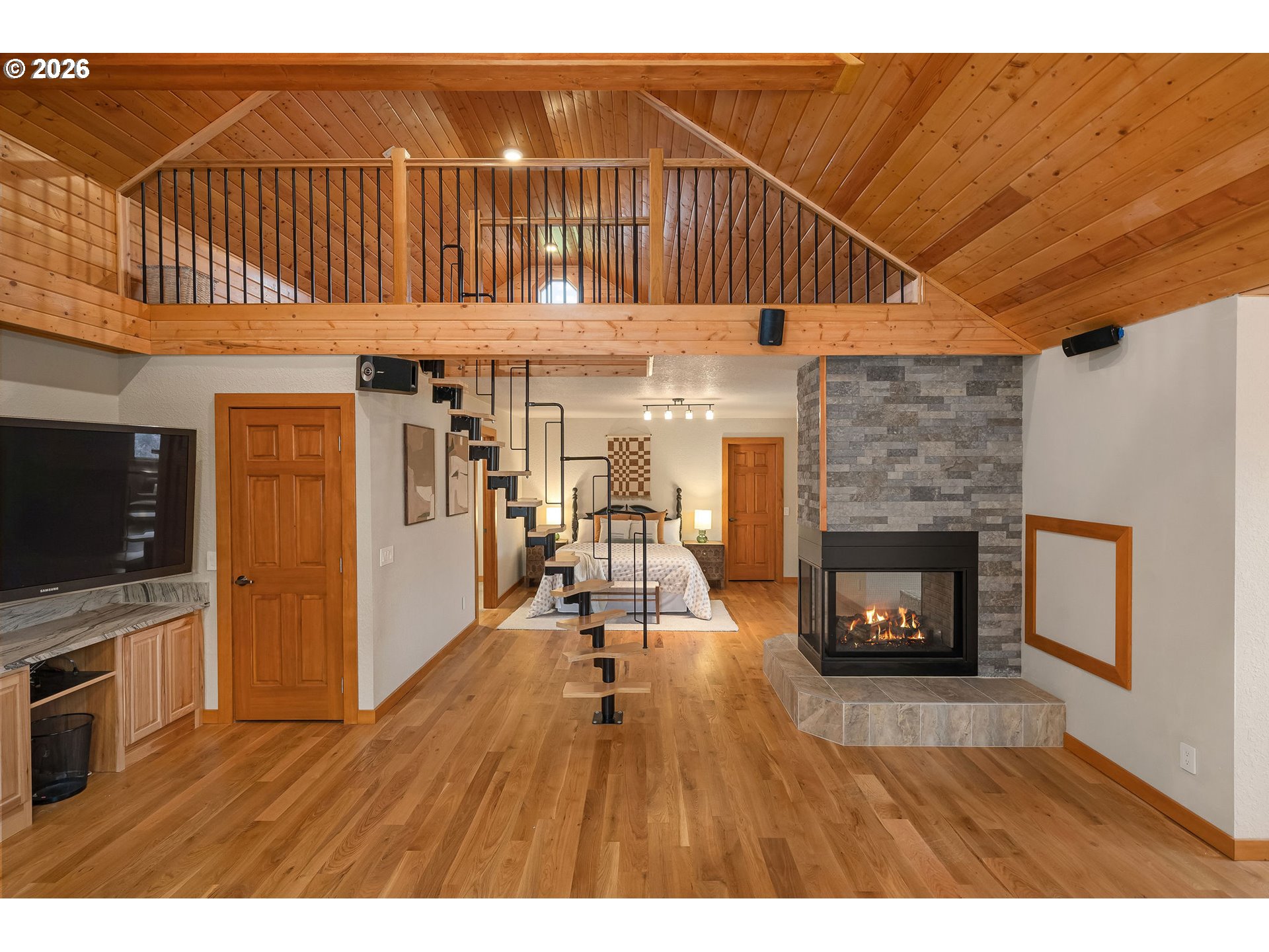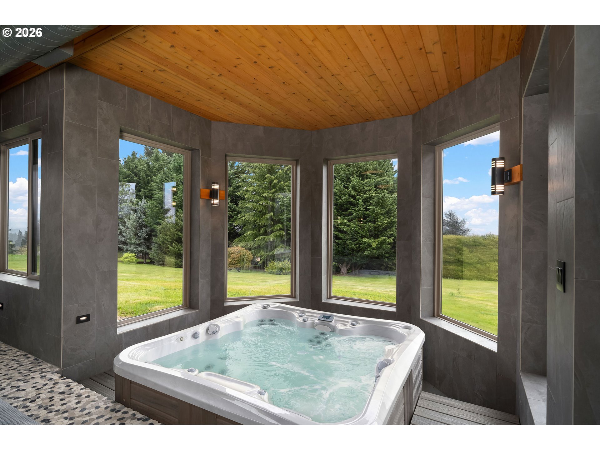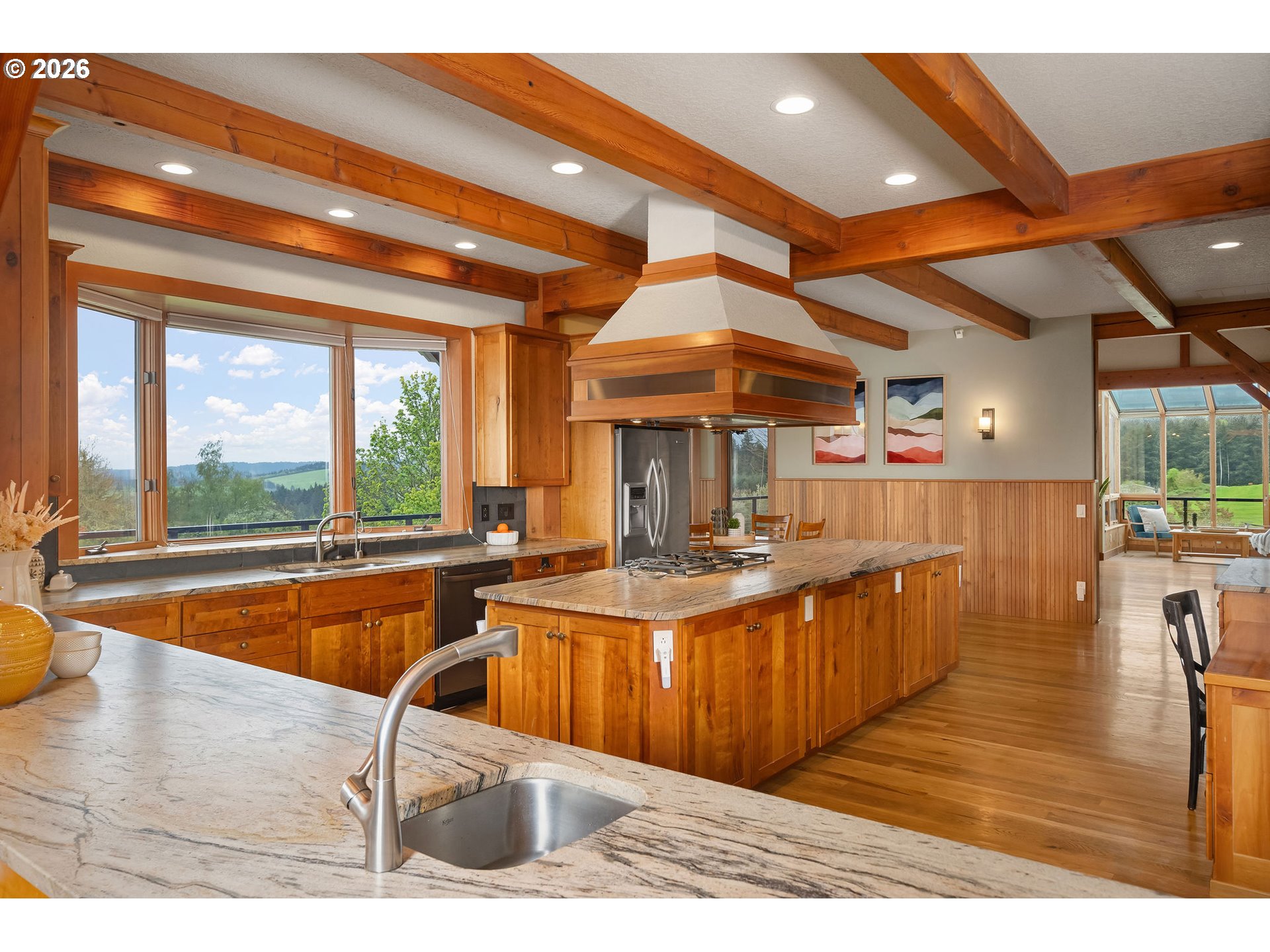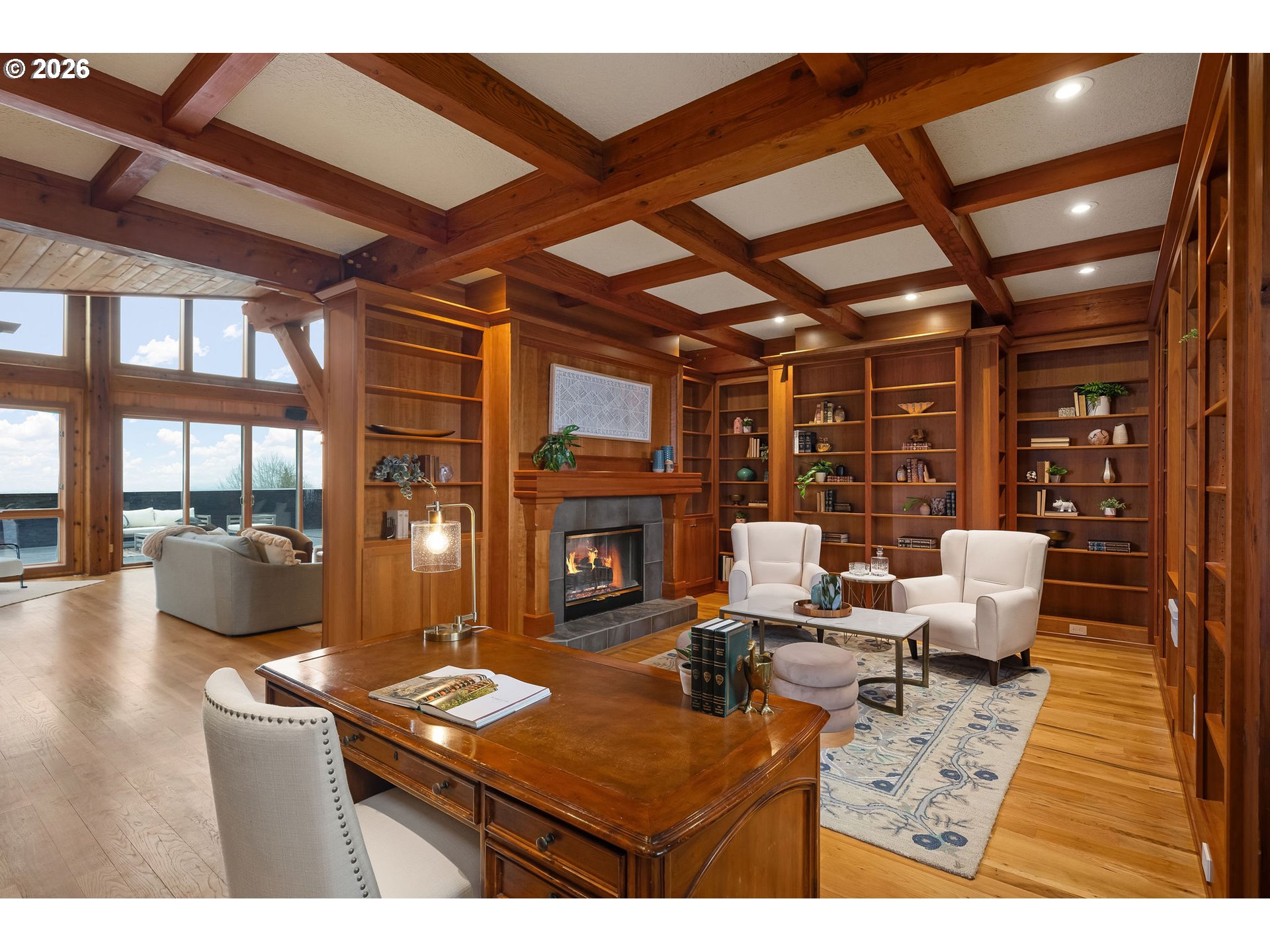 Open THURS, FRI Twilight, Sat & Sun! Rare 10-acre estate offering 12,007 sq ft of exceptional craftsmanship and versatility. This one-of-a-kind timberframe home features 5 bedrooms and 4.5 baths, constructed with stunning reclaimed wood dating back to the 1880s and sourced from the historic Bumble Bee Cannery in Astoria and a mill in Longview. Rich architectural details, exposed beams showing the joinery construction, and five fireplaces create warmth and character throughout. Five peaks visible from property, with Hood views from 24-foot soaring windows in great room, kitchen, dual offices, primary, and deck. St Helens, Rainier, Adams and Jefferson from different vantage points. A custom carved mantle shows all five mountains.Designed for both everyday living and entertaining, the home includes a stunning indoor saltwater pool and hot tub, complete with radiant heat flooring on pool deck, gym, theatre with 12-foot screen, billiards space, and stately library. True chef's kitchen with 12-foot leathered granite slab island and counters, double Electrolux convection ovens, 5 burner gas cooktop with commercial grade hood, and walk-in pantry.A separate upstairs apartment with loft provides ideal guest or multi-generational living. Whole-home generator offers year-round peace of mind.This expansive home with serious lodge resort vibes offers equestrian and winery potential. Volcanic rich soil perfect for Oregon's award-winning pinot noir grapes. Set on 10 rolling acres, the property includes a large barn with equipment, greenhouse, darkroom, and extensive storage throughout.A rare opportunity to own a legacy property that blends history, function, and lifestyle—just minutes from wine country and within reach of Portland.