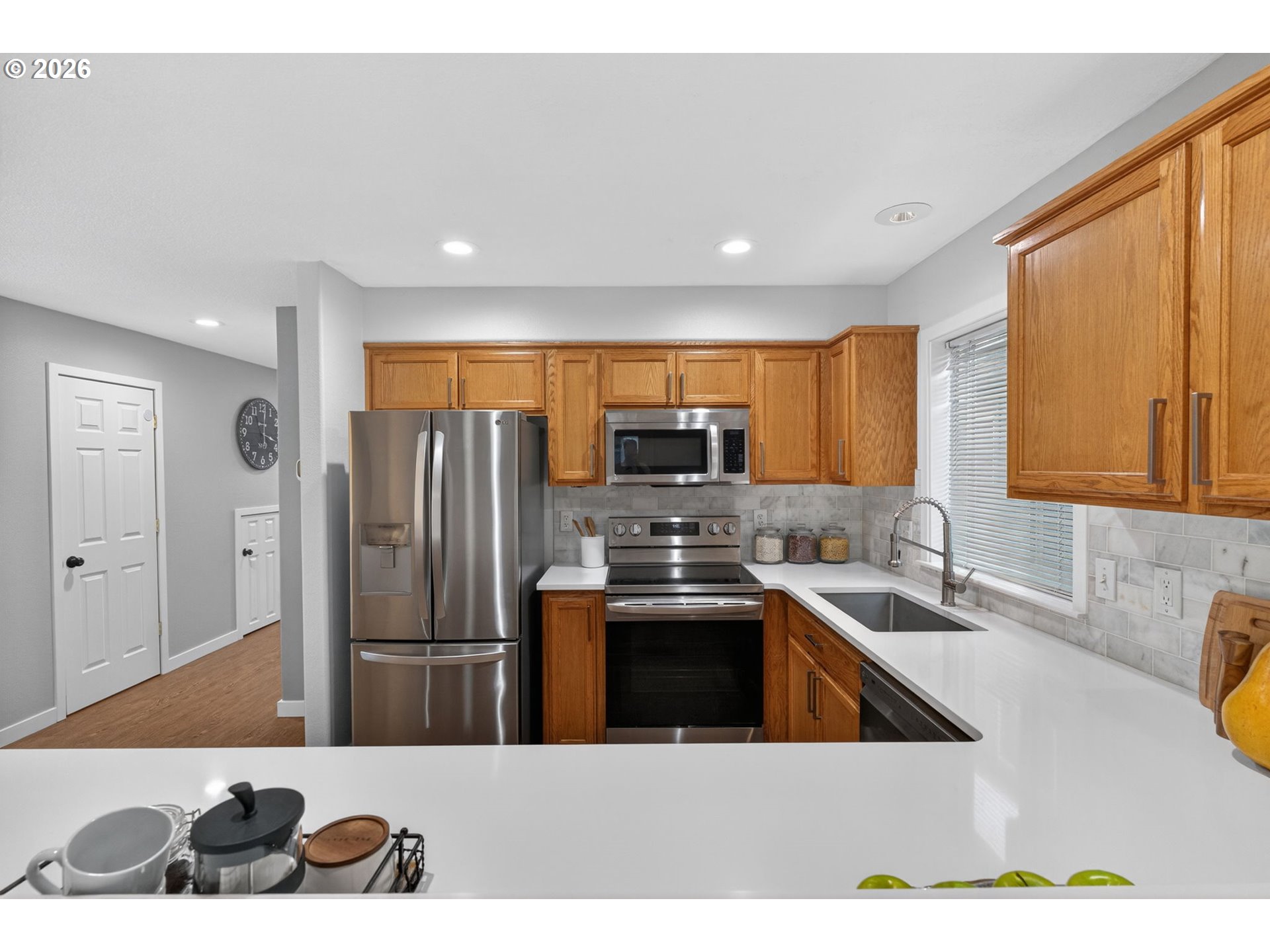 Open House Sat 3/21 1-3pm, Sun 3/22 11-1pm.Your search ends here! Welcome home to this beautiful and newly renovated home. Whether you are a first time home buyer or you are downsizing to have function and beauty with low maintenance this gem is perfectly adorned and ready to truly relax and enjoy!The many recent upgrades include: triple paned windows, A/C Heat pump and new gas furnace with smart thermostat, interior and exterior paint, newer carpet, water heater, white quartz countertops kitchen and baths, new hardware and fixtures, new deck and fence in the front plus pavers, brand new washer and dryer included in the sale. Roof was certified for another five years above approximately 15years of life per seller. You will love the oversized backyard with brand new deck and tool shed for all your gardening needs. The front yard is fenced too for additional outdoor living and fun summer activities. The one car garage and the ample driveway with pavers for a fresh designed look give more options for additional storage and parking convenience. This home has had a complete facelift inside and out, ready now to invite your friends to gather in your fresh indoor and outdoor spaces. The best value in town! Don't blink or you will miss this treasure sure to bring joy and tranquility every day! [Home Energy Score = 6. HES Report at https://rpt.greenbuildingregistry.com/hes/OR10233060]