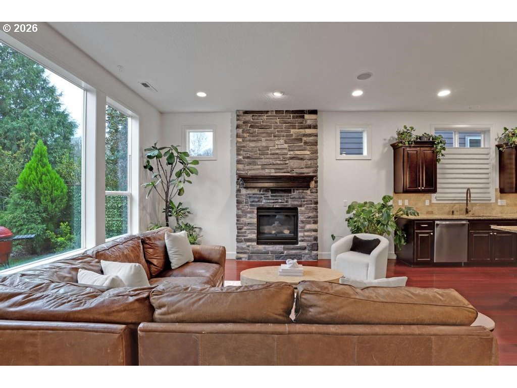 Quality Noyes construction. 2,994 Sq. Ft. with 4 bedrooms + Bonus + Den (or 5th bedroom) with adjacent full bathroom on the main. Light filled great room floor plan with gas fireplace and hardwood floors. Chef's kitchen features oversized island with breakfast bar, stainless steel appliances, double ovens and walk-in pantry Upstairs includes primary suite with double door entry, tray ceilings, views to the backyard, double vanity, walk-in shower, soaking tub & walk-in closet. Three additional bedrooms, bonus room and full bathroom. Beautiful private, fully fenced backyard with covered patio, water feature, mature landscaping and built-in fire pit. Tankless water heater and high-efficiency forced-air gas furnace. 3 car garage. Washington County and excellent schools - Oak Hills, Tumwater, Sunset!