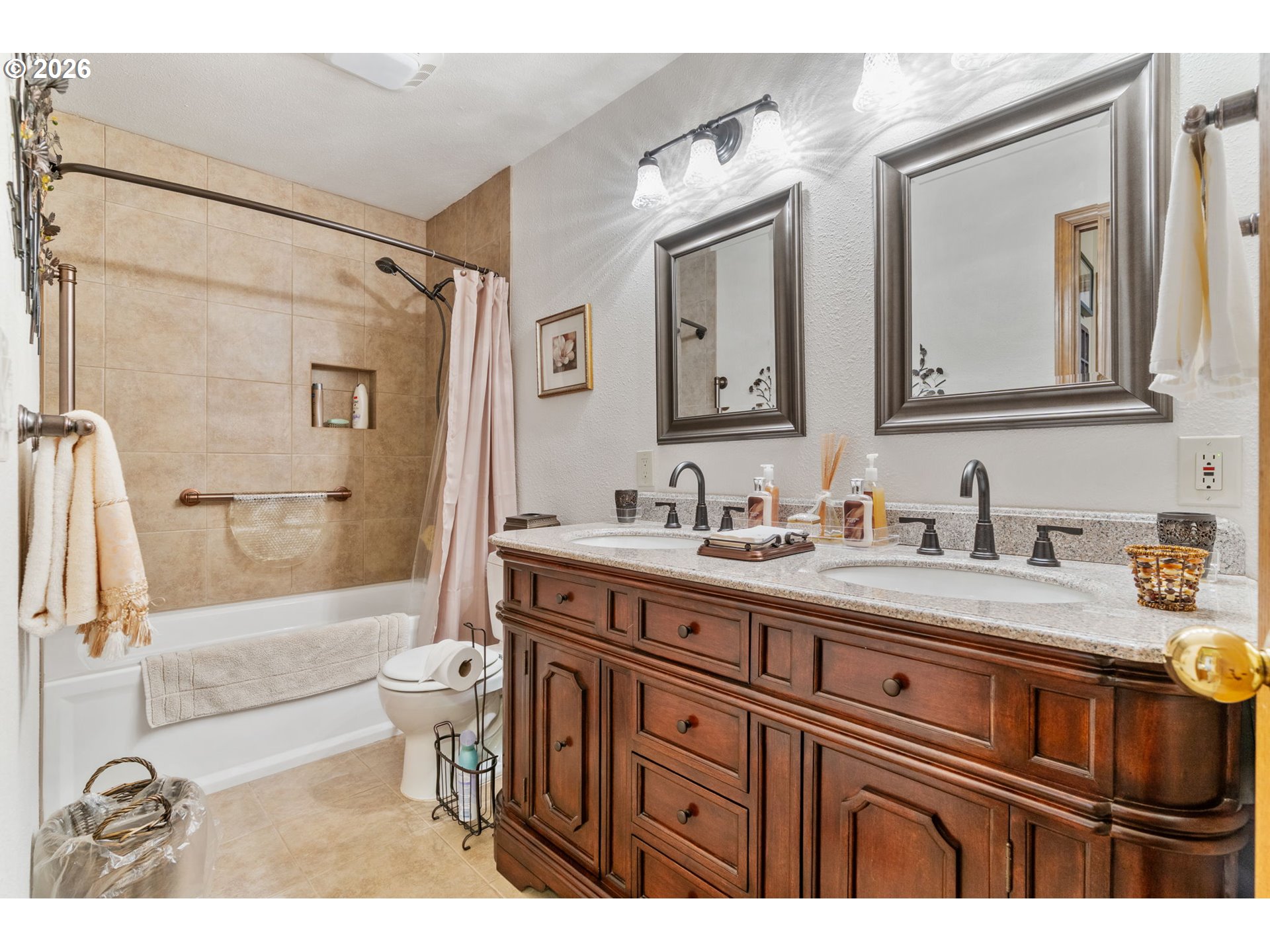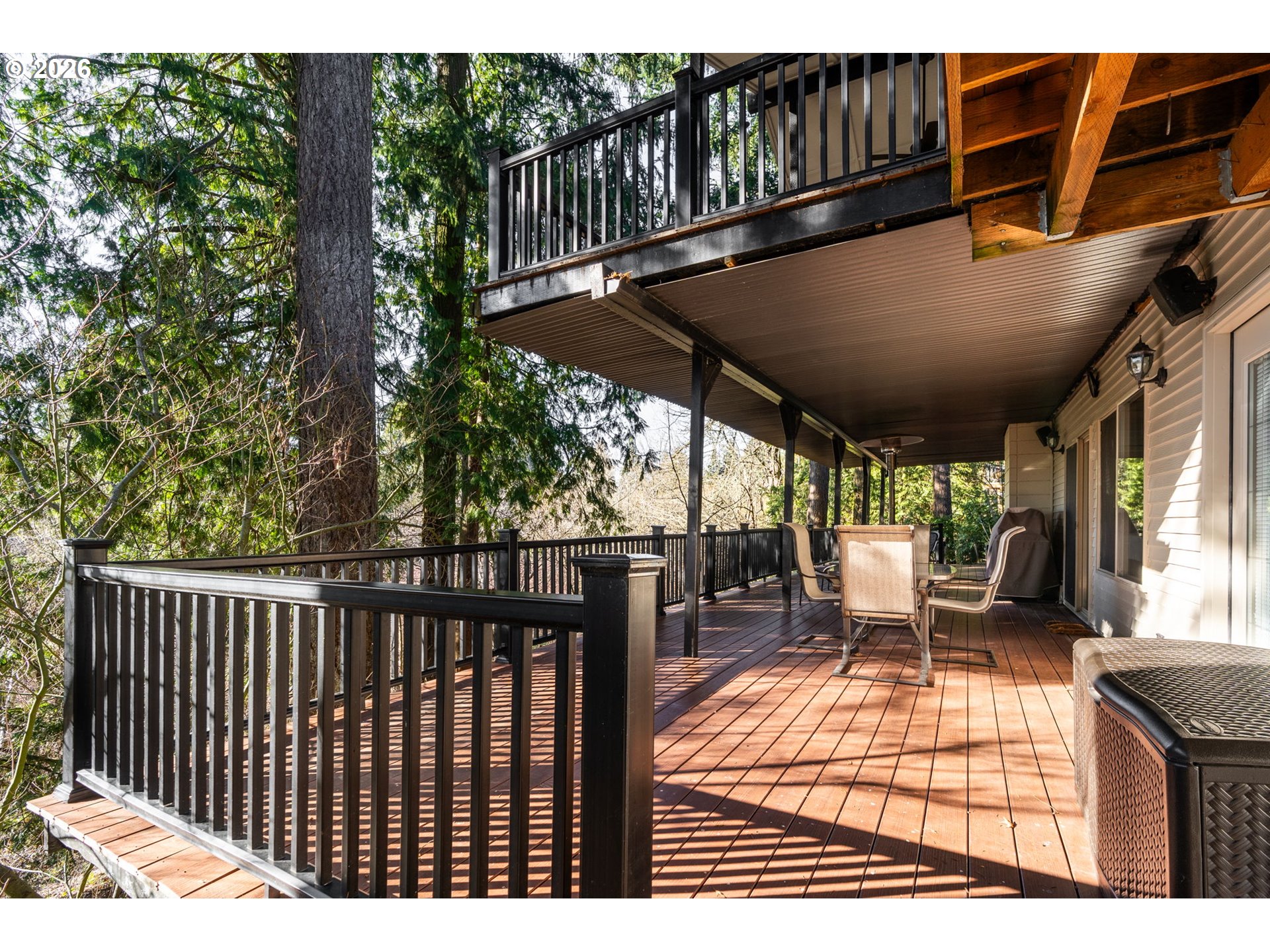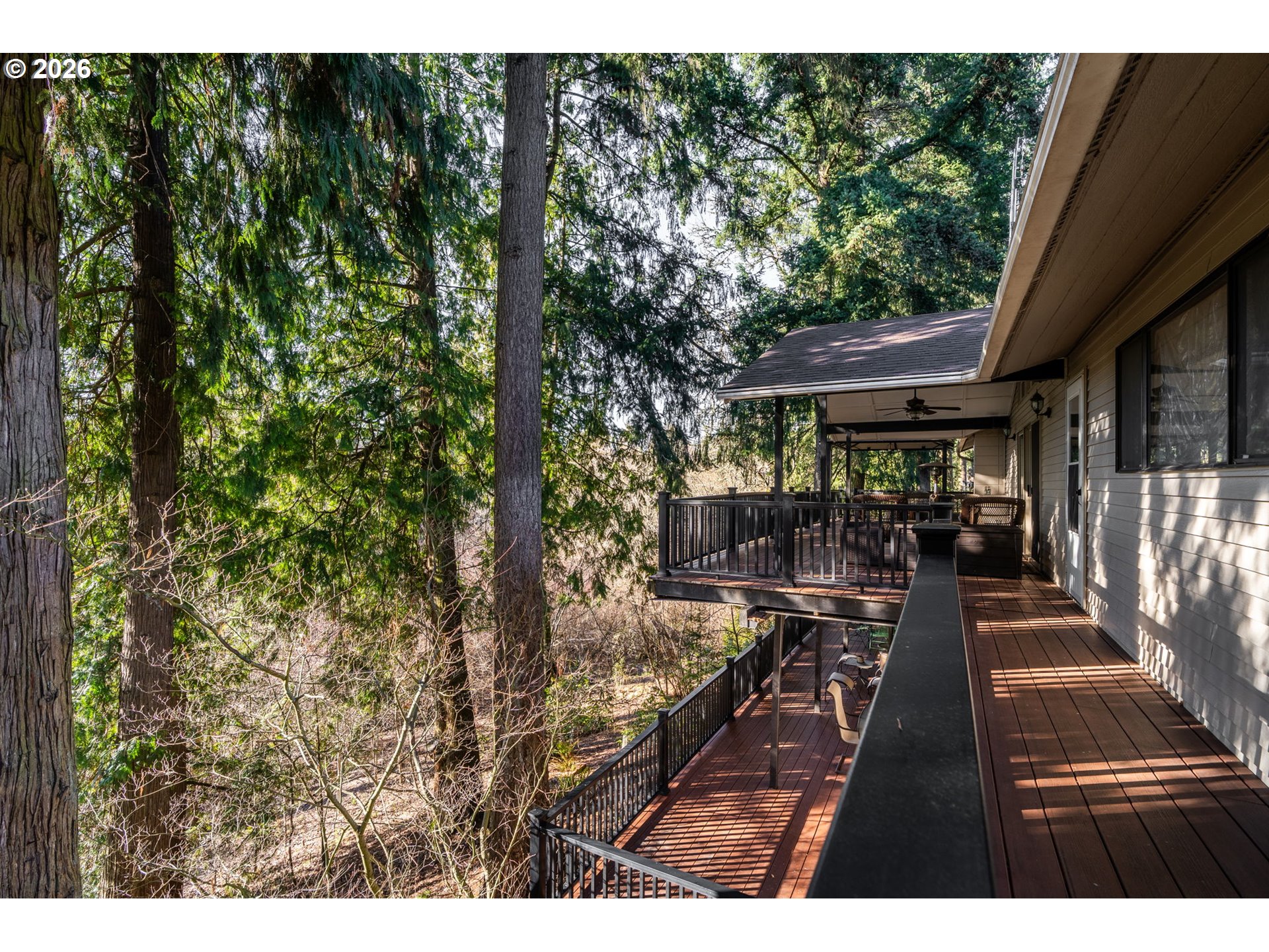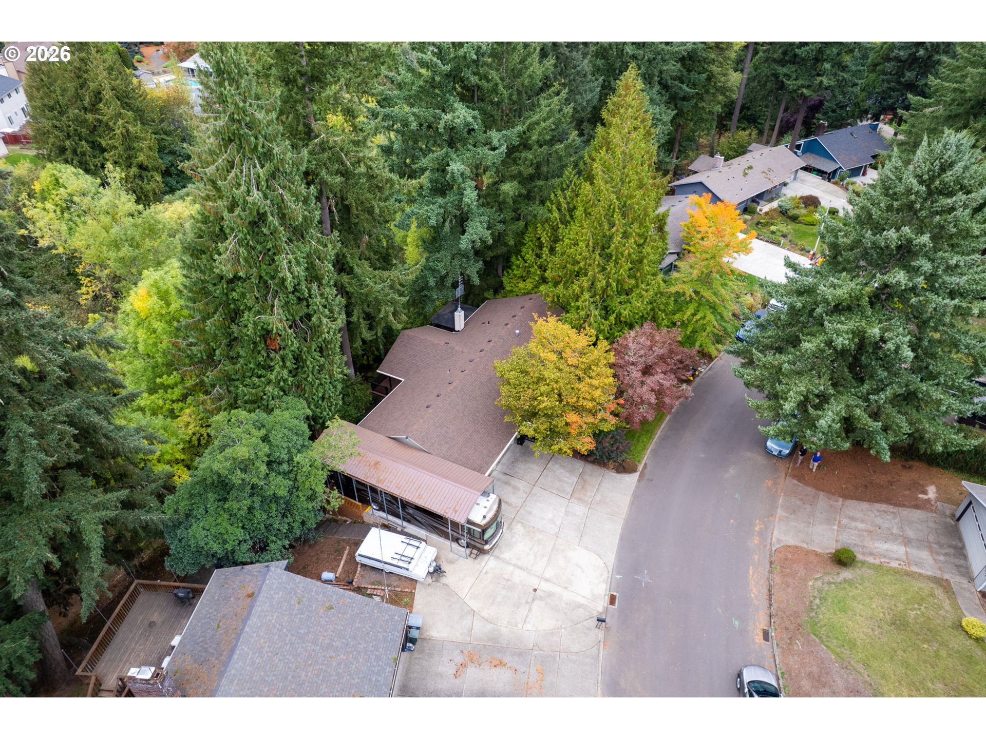 Hillsboro's Most Awesome Home! Road’s-end privacy meets Northwest serenity on a .58-acre retreat beside the Preserve at Turner Creek. This distinctive tri-level is surrounded by vine maple, cedar, fir, and native greenery—creating a “home-in-the-trees” feel that’s hard to find anywhere! Enjoy two covered composite decks totaling 1,500+ sq ft of outdoor living, including a gazebo with removable screens, deck lighting, Fans, and built-in outdoor speakers. Inside, you’ll find extensive remodeling: a main-level dining room with hardwoods and a custom built-in; a vaulted great room with sliders to the upper deck; and a fully remodeled kitchen with soft-close cabinetry, recessed/under-cabinet lighting, and newer appliances. Cozy up in the family room with a new gas log stove, and appreciate remodeled baths throughout (including a curbless shower). Major upgrades include a new roof (2024), professional paint and landscaping, central heat/AC, PEX plumbing, central vacuum, generator-ready wiring, and an impressive ~750 sq ft garage with shop features. Best of all: a 40 ' long covered RV shelter designed for a Class A motorhome, plus no HOA and quick access to Intel, US-26, parks, and shopping. Come to roads end in Bentley Orchards- the best setting in Hillsboro!