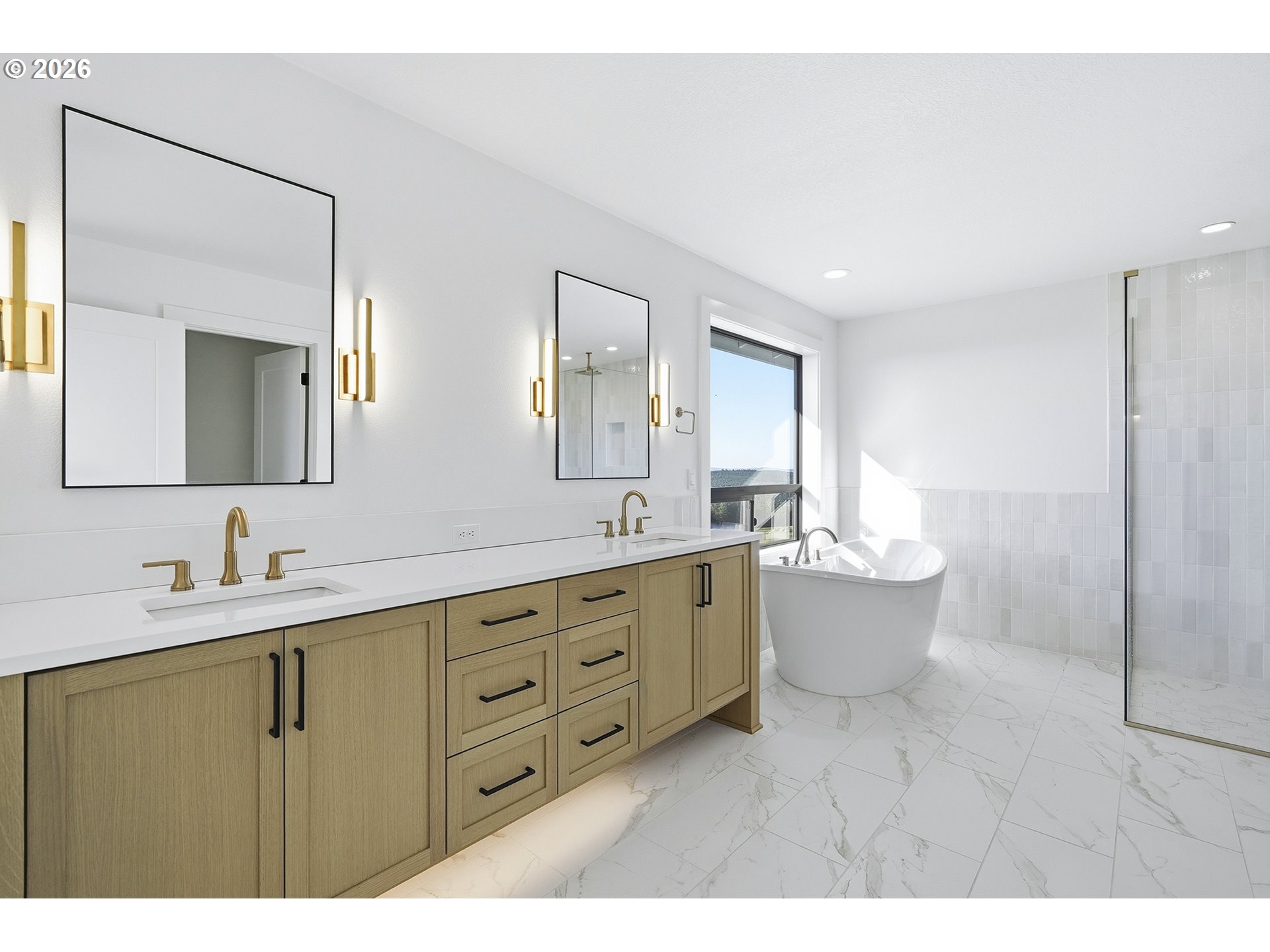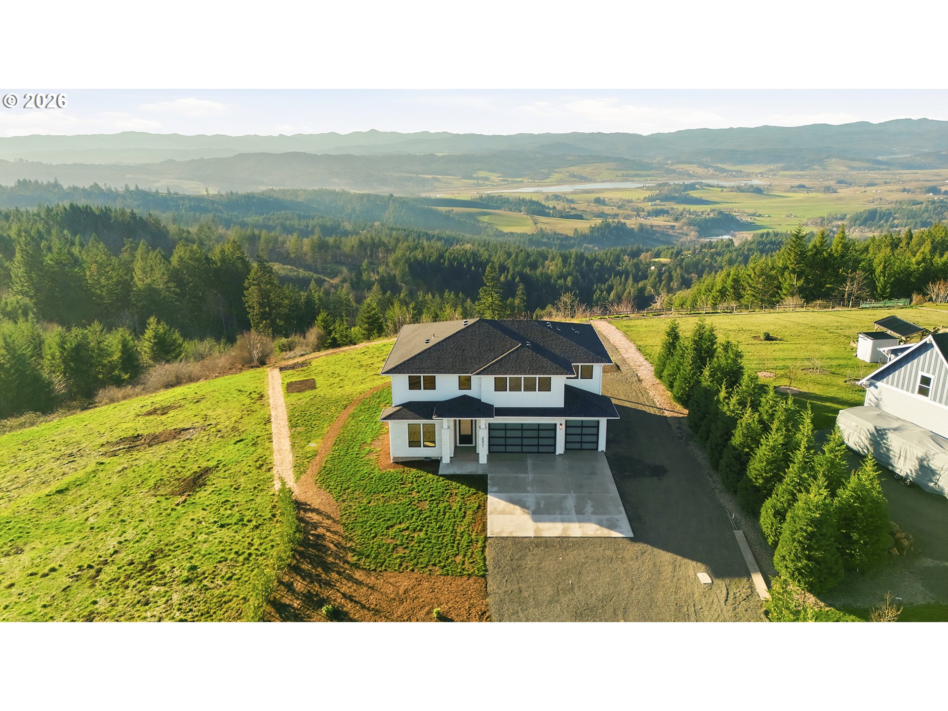 (503) 893-8874Open Sat/Sun from 12pm to 4pm. This beautiful custom home built by Renaissance Homes sits on 5 acres with AMAZING views! This absolute STUNNER was built less than a year ago! The oversized windows allow for the natural light to flood the home keeping it light and bright even on the grey winter days! This home is extremely private and sits at the end of a private road. There is a new path that allows you to walk around the property to further enjoy the views. The home boasts 10’ ceilings throughout the main, with a stacking glass sliding door that opens to your outdoor covered living complete with a cypress lid, ceiling fan as well as overhead heaters. The kitchen is designed for entertaining with polished quartz counters, an oversized island with eating bar and waterfall edges, built in beverage/wine refrigerator, induction cooktop, double ovens as well as a generous walk-in pantry. The dining room leads to a separate BBQ patio complete with another overhead heater. No detail was overlooked including the upgraded brushed oak floors and plush carpet. The home is prepped for a future generator. This energy efficient home also offers a tankless hot water heater with a recirculating loop and a 95% efficient furnace. The primary suite includes an expansive walk-in closet with built-ins, a spa-like bathroom including double vanity, a freestanding soaking tub with a territorial coastal view as well as a full tile zero threshold shower including a separate rain shower. The primary bedroom and the bonus room upstairs are both prepped for future wet bars. This home has ample storage between the 3-car garage, under the stairwell closet as well as multiple coat and linen closets throughout! This is a rare opportunity to live in a recently built custom Renaissance Home on acreage!