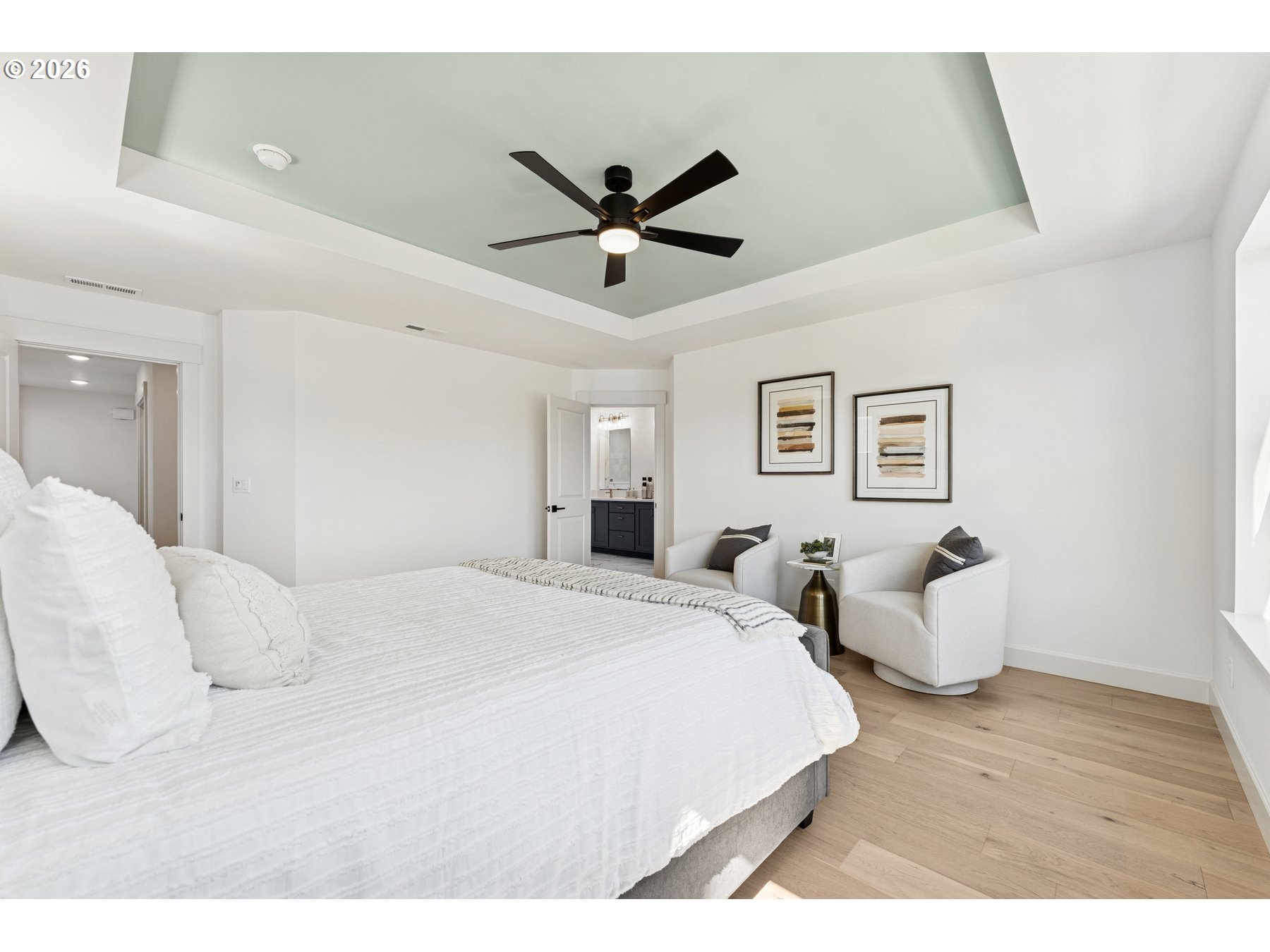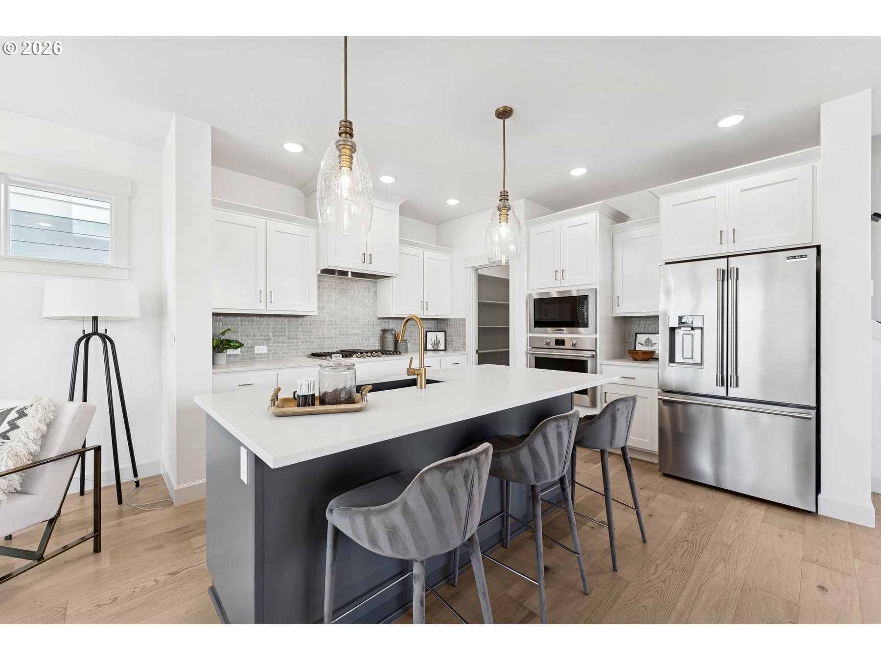 lovely and very popular Sidney Floorplan- on corner site with some privacy and a former model home! Walk in with no stair at front door, to expansive windows, open area that feels ginormous! Modern finishes throughout, with black metal open railing first and second floor. Loft area and two secondaries separate from the Primary Retreat. Bath is oasis like- Super Shower and closet to store all your clothes! Stop by and have a look today!