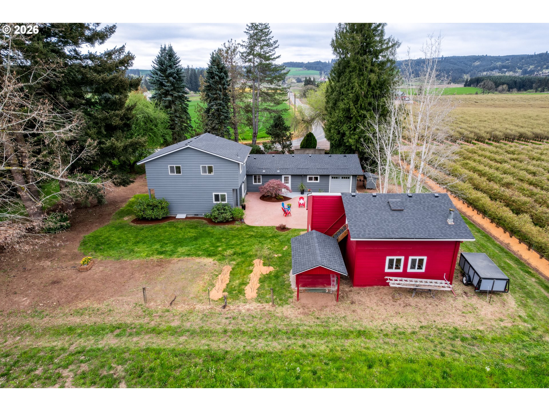 (503) 893-8874Open House: SAT. April 18th: 12-4PM, SUN. Apr. 19th: 12-2PM Set on a scenic 0.43-acre lot and located less than 6 miles from Forest Grove, Cornelius, and Hillsboro, this 4 bedroom, 3 bath, 2562 sq.ft home offers space and flexibility situated in a truly, spectacular setting. Enter the spacious great room with a brand-new woodburning certified LOPI woodstove designed with a cooktop surface.This room is perfect for hosting gatherings, creating cozy conversation areas, or placement of a grand piano. Nearby, the long galley kitchen is both functional and welcoming, featuring double ovens, ample counter space, pull-out drawers, and a coffee bar. It connects easily to the stamped patio outside, making it simple to entertain, barbecue, or just step out for a quick coffee break to relax in nature. The floor plan allows for versatility with separate areas that can be used for bedrooms, home offices, or guest space. A bedroom and office near a beautifully, updated bathroom on the main level make a perfect setup for guests or multi-generational living. The primary suite is tucked away for privacy and includes unique custom cabinetry and convenient access to the laundry area. Upstairs a permitted addition supplies even more living space, including two extra bedrooms, a full bathroom, and a bonus room that could be used for hobbies, sewing, library or gaming space. Outside, the detached garage/SHOP has its own electrical panel and is plumbed for another bathroom. Stairs give access to a huge storage area over the shop with an extra shed at the base of the stairs. The garage has drive-through ability to the shop out back and another exterior storage area to gain access over the garage bay. You will love the open territorial views of the rolling hills. Country Living at its Best! Situated kitty-corner from the Forest Hills Golf Course and next to a blueberry farm, this home provides the luxury of country living without the maintenance of excessive land.