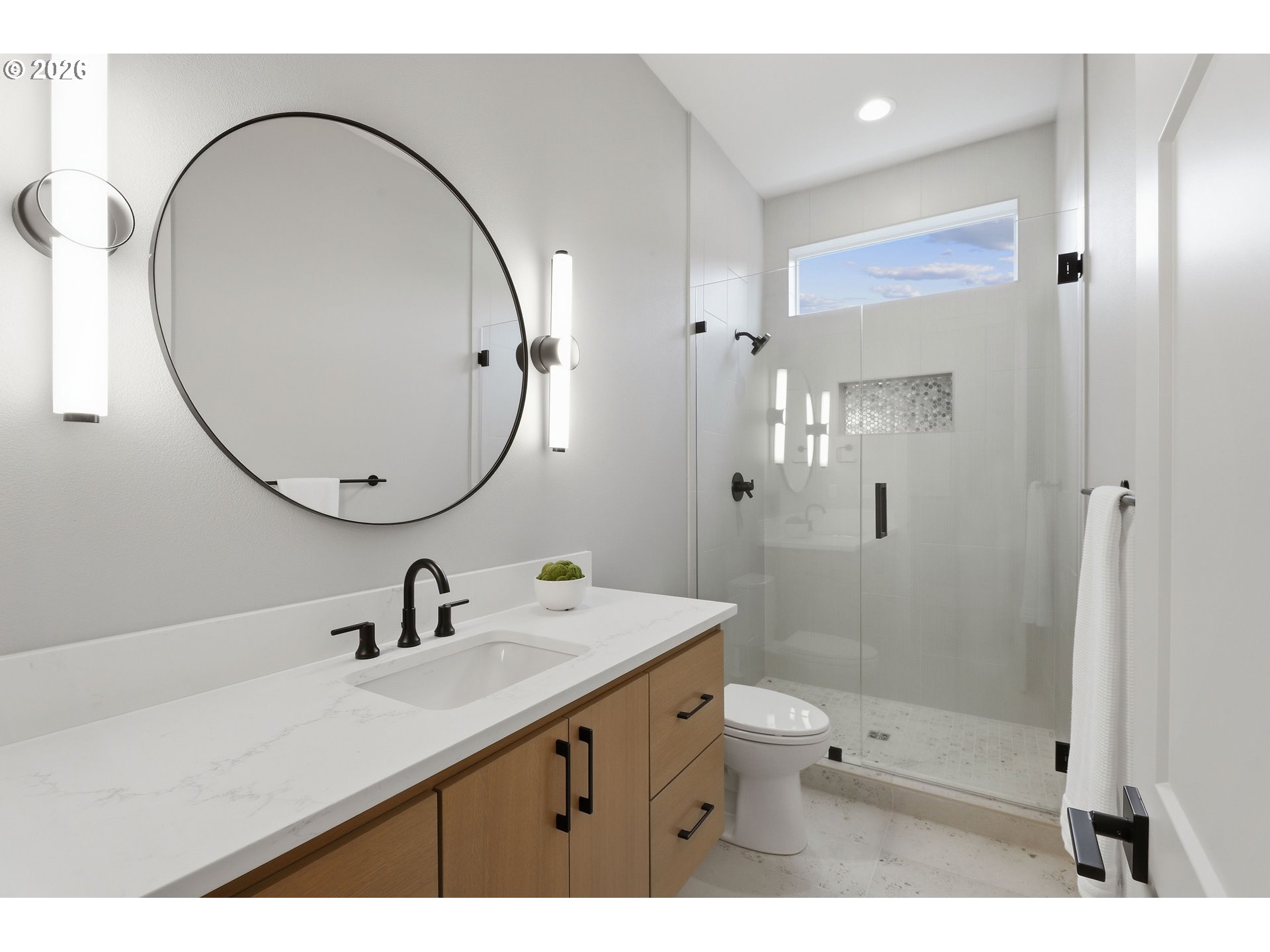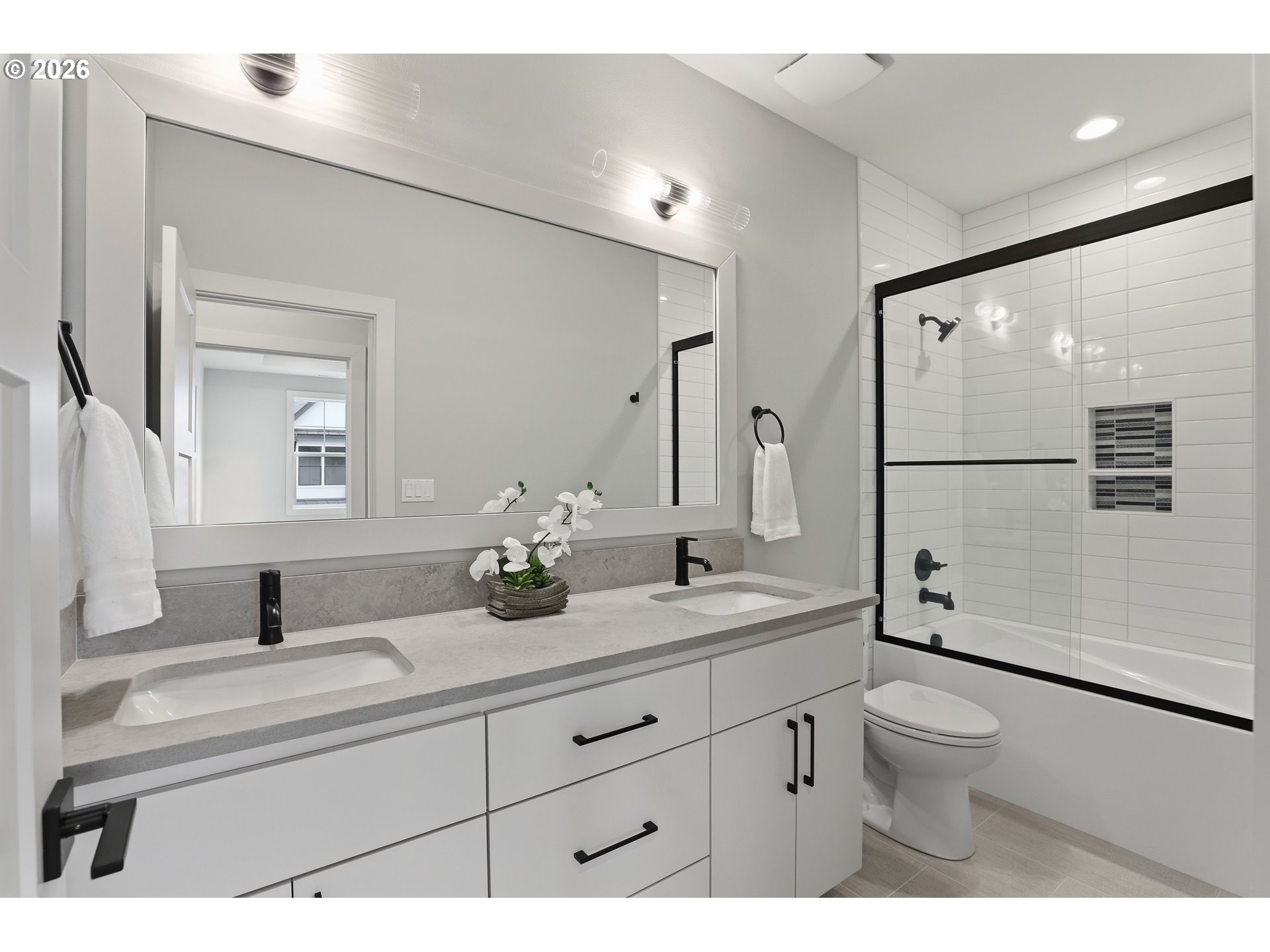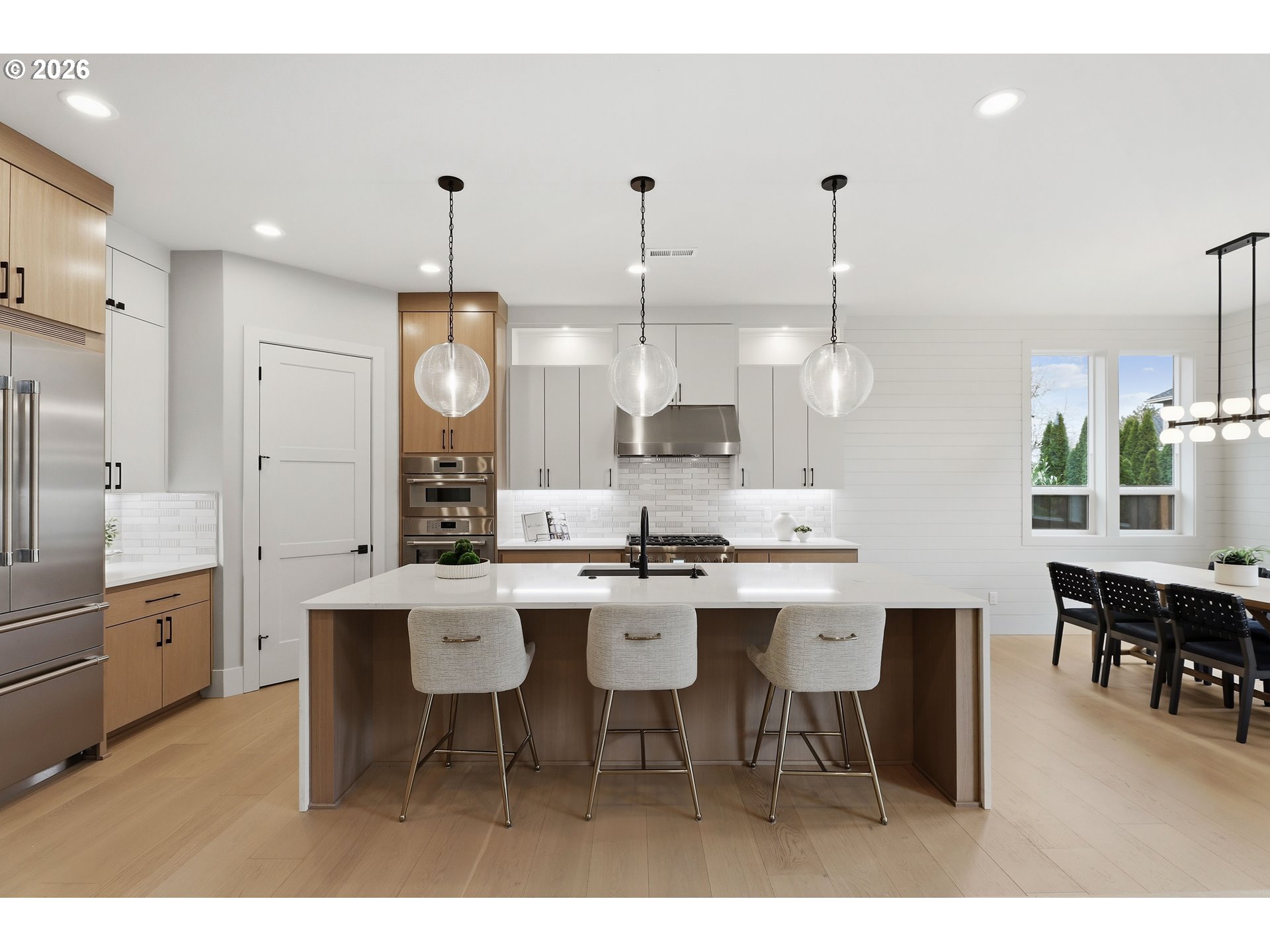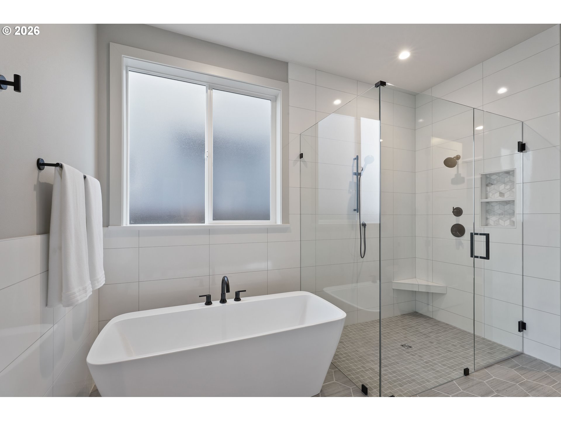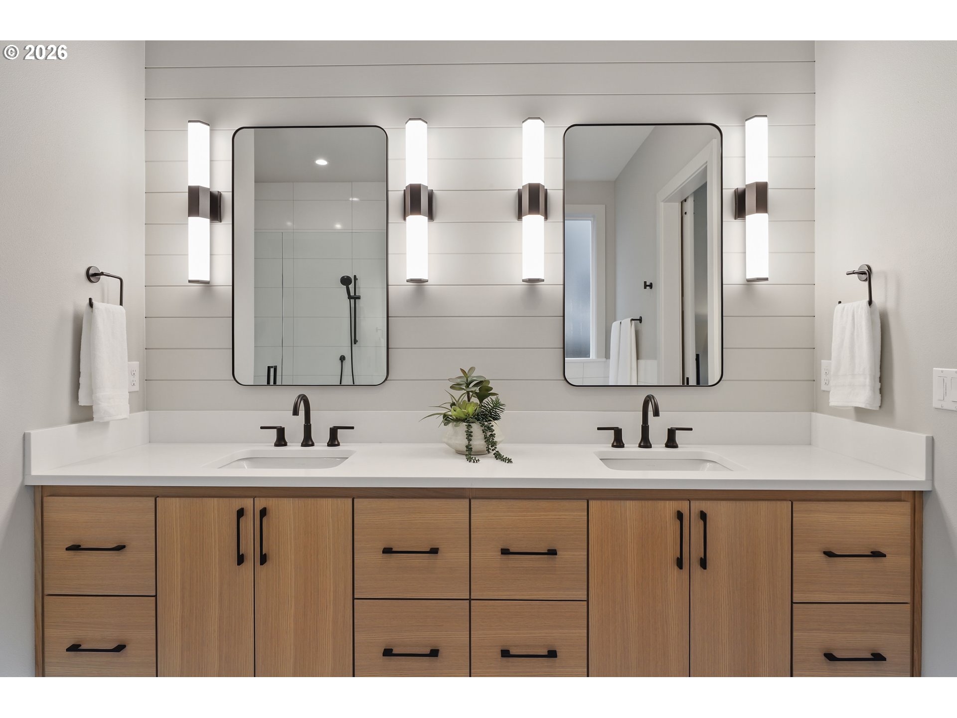 Stunning custom new build in NW Portland/Bethany! 3,610 Sq Ft 5 bedroom + den + bonus & 4 full bathrooms. Luxurious primary suite on main with heated tile floors, soaking tub, walk-in shower and spacious walk-in closet with access to laundry room. True Great room floor plan with gas fireplace, high ceilings, floating shelves and full wall slider to private backyard. Gourmet kitchen featuring Thermador appliances, custom tile, waterfall island & walk-in pantry. Sunny dining room with shiplap accent wall. The upper level features a second bedroom suite plus 3 spacious bedrooms, bonus room and second laundry room! Soaring ceilings, custom cabinetry & premium finishes throughout. Fully fenced level yard, tongue and groove covered back patio, 3-car epoxy-coated garage, tankless water heater, high-efficiency two-zone HVAC, central A/C. WA County