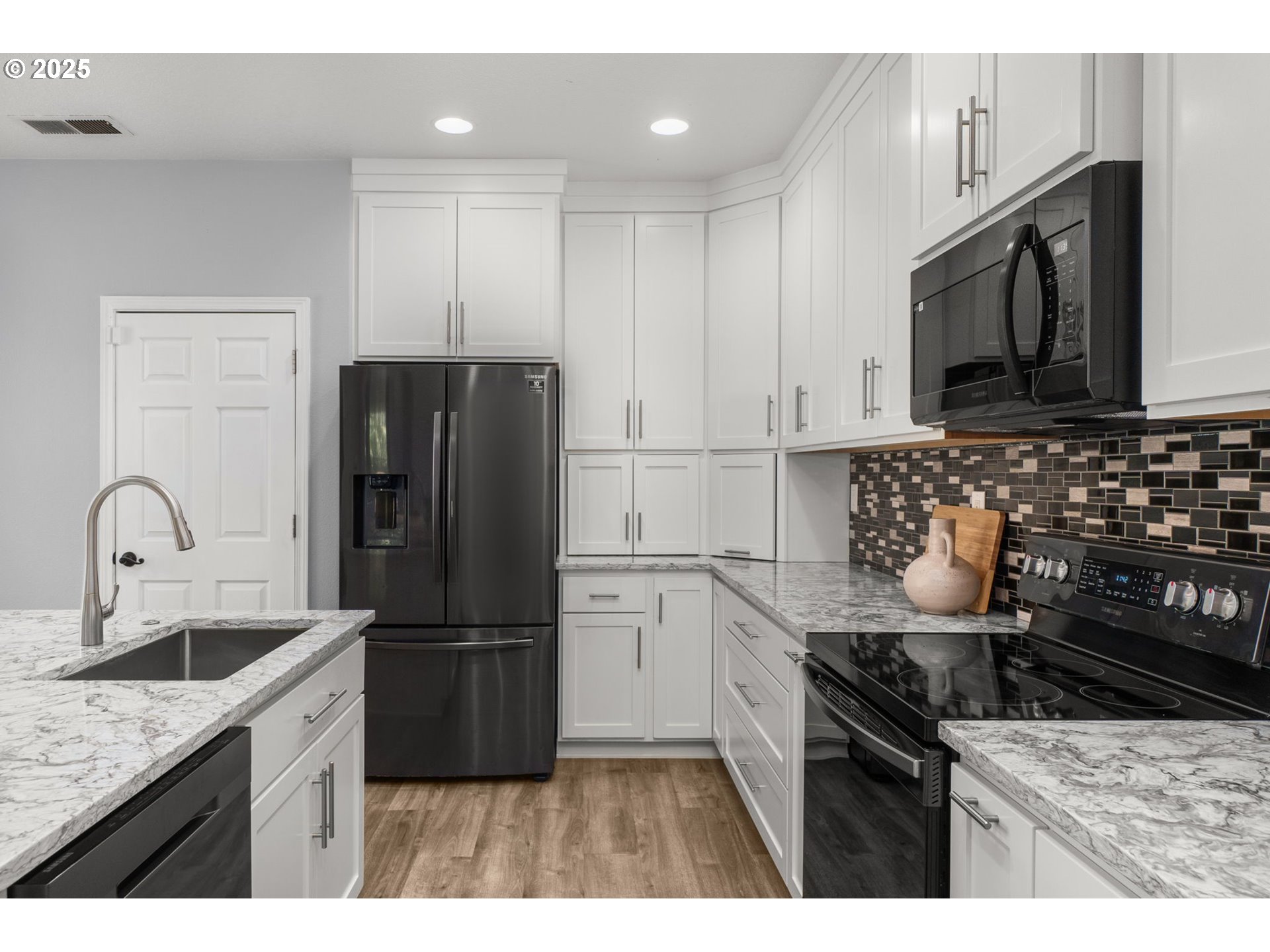 Welcome to 3750 SE Twelve Oaks St — a beautifully updated 3-bedroom, 2.5-bath in the sought-after Oakhurst neighborhood. Directly across from the community park and playground, this 1,953 sq ft home blends comfort, updates, and convenience. Step inside to high ceilings and an open-concept main level featuring newer luxury vinyl plank flooring and a gas fireplace for cozy evenings. The fully remodeled kitchen (2020) is a showstopper with quartz countertops, an oversized island with storage on both sides, custom cabinetry, tile backsplash, a pantry cabinet, appliance garage, wine fridge and updated stainless steel appliances. The spacious primary suite offers a soaking tub, separate shower, double sinks, and a massive walk-in closet. Both upper hallway bath and primary bath were refreshed in 2020 with luxury vinyl plank floors, quartz counters, new sinks and faucets, repainted vanities, updated hardware, and new mirrors. Updated half bath on main with luxury vinyl plank floors, vanity, mirror, and light fixture. The backyard is designed for low maintenance and enjoyment, with artificial turf and a deck—perfect for entertaining. A two-car garage adds additional parking and storage. Enjoy a prime location with easy access to shops, parks, schools, and more. A rare opportunity in this community — tastefully remodeled and move-in ready! [Home Energy Score = 5. HES Report at https://rpt.greenbuildingregistry.com/hes/OR10241209]