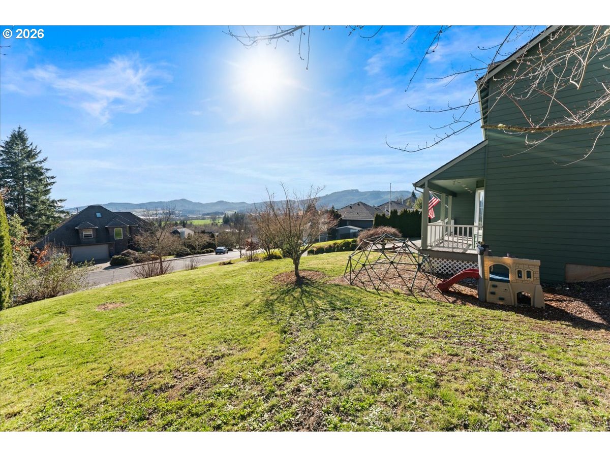 Perched in one of the area’s most sought-after neighborhoods in Forest Grove, this exceptional 4-bedroom, 2.5-bath home captures incredible sweeping views of the valley. Set on a generous lot, the property offers room to breathe, garden, and spread out with ease. Inside, hardwood floors and granite counters tops add warmth and durability, while a new roof and fresh exterior paint, updated downstairs bath and more! provide peace of mind for years to come. Thoughtful features like plumbing for central vacuum and wiring ready for a future hot tub make the home as functional as it is inviting.The spacious primary suite serves as a private retreat, complete with a soaking tub, walk-in shower, and the perfect place to unwind at the end of the day. The expansive backyard is a gardeners dream - raised beds, greenhouse, chicken coop, and plenty of space to create your own oasis. Views, space, and a neighborhood buyers are always hoping to get into! Come see for yourself!