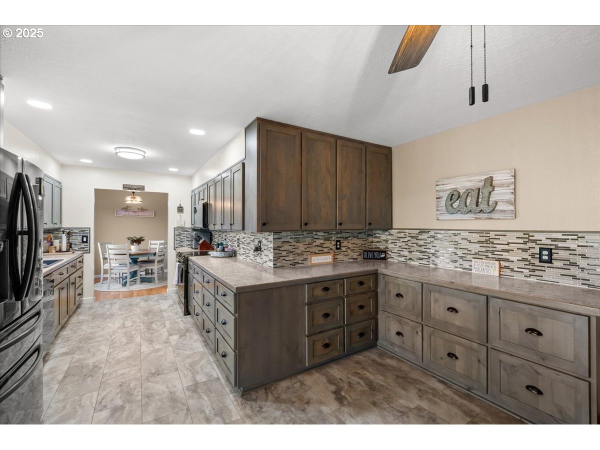 (503) 893-8874Prime Banks location with country surroundings. Updated one-level ranch on 0.6 acres backing to farmland, offering 4 bedrooms, 2 baths, 1,644 sq ft, refinished oak floors, a painted brick fireplace, and great natural light. The 2021 kitchen remodel includes custom cabinetry, deep drawers, tile backsplash, Formica counters, and black stainless appliances. Dining area overlooks the private backyard. Bedrooms feature hardwood floors, and the 2021 hall bath includes a new shower tile surround, and double vanity. LVT flooring added in 2021. Property features a private yard, 20x23 covered patio with epoxy finish and 2022 hot-tub-ready wiring, detached garage/shop, and RV parking. Major updates include new septic tank (2020), kitchen/bath remodel and flooring (2021), electrical panel (2022), heat pump (2023), vapor barrier (2024), and well pump, motor, and lines (2025). Easy access to Hwy 26.