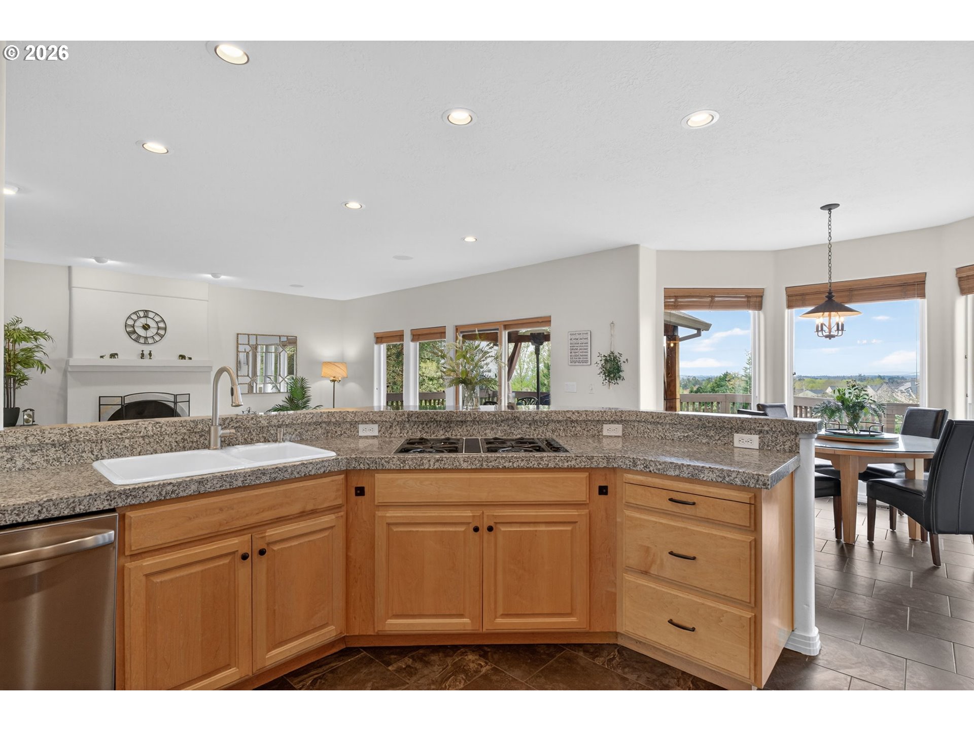 JUST LISTED! OPEN SAT 4/11 1-3pm. Stunning and spacious Thompson Highlands custom home on a quiet cul-de-sac with top-rated schools and breathtaking sunset views, on an expansive lot. This home has it all! Exceptional privacy on a 0.38 acre lot backing to a private, unobstructed backdrop with no homes behind. Open floorplan with den on the main, 3 bedrooms and 2 full baths upstairs, and two more bedrooms and one full bath on the lower level. High ceilings throughout, with windows and skylights to bring in the natural light. You will love the multiple living spaces with large, open, and very livable rooms. Other features include hardwood floors, central A/C, ceiling fans, built-ins, and 2 fireplaces (one gas, one wood-burning). The kitchen is open to the family room and set up well for everyday living and entertaining – it features granite counters, stainless appliances, and two pantries. Oversized primary suite is enormous with a well-finished bath and a truly impressive walk-in closet with exceptional space and storage. The lower level is light, open, and flexible with a large bonus/great room plus a wine cellar and ample storage options. It is perfect for guests, multi-generational living, or work-from-home and does not feel like a basement in any way. There is a kitchenette and it's plumbed for laundry - this space functions wonderfully as a full apartment or separate living quarters with convenient exterior entry. The outdoor setup is just as strong. The large slate deck and deluxe hot tub overlook a serene, private setting that makes the lot feel even bigger. Attached 3-car garage. Easy location, close to tech, shopping, amenities, and excellent area schools. This property is a MUST SEE! Come home to Thompson Highlands!