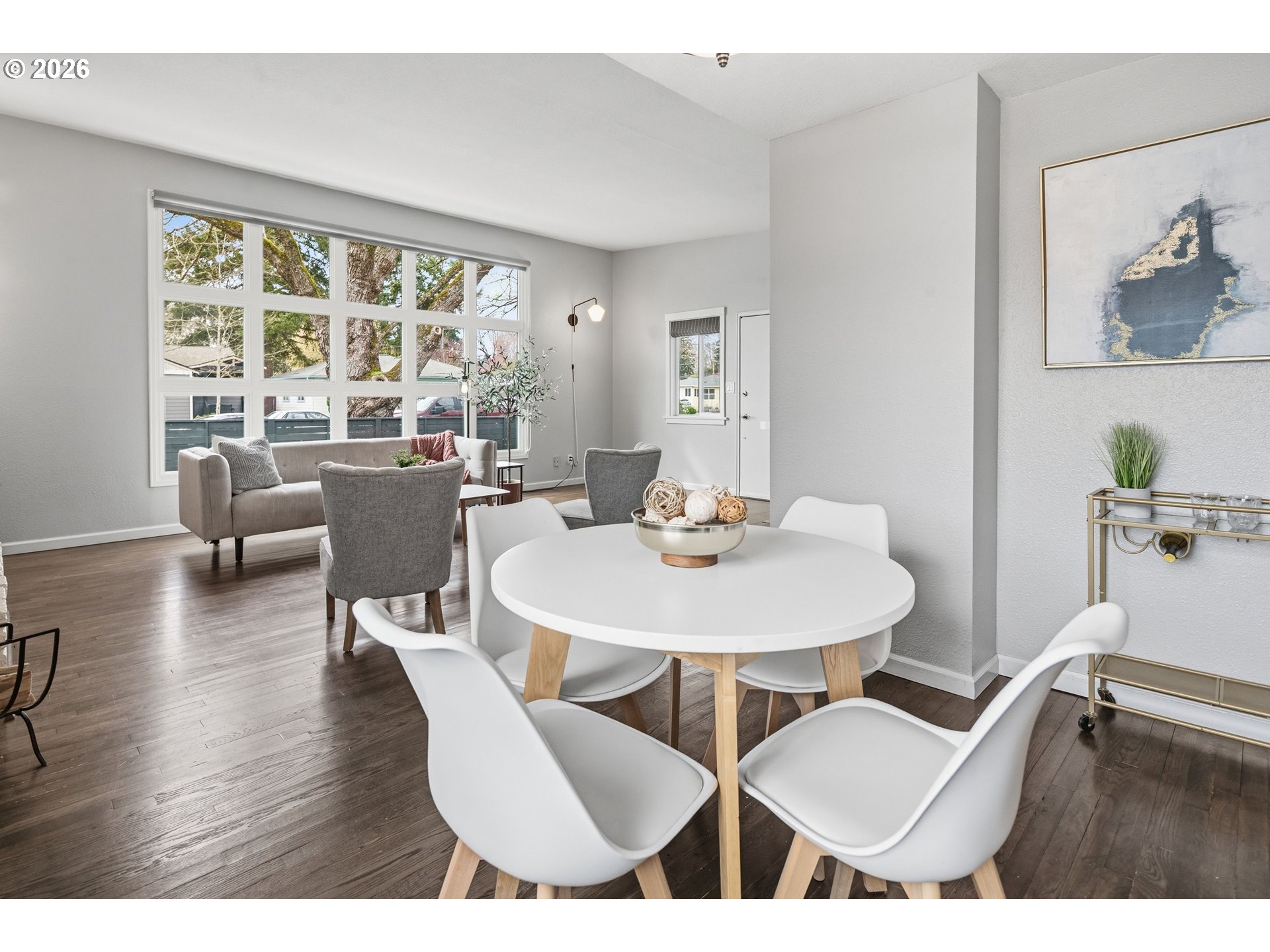 Open Saturday 12-2. Beautifully updated and energy efficient Mid-Century oozing character and charm. Vaulted great room with wall of new windows and wood burning fireplace. Hardwoods throughout. Updates galore in 2024: full bathroom, new front windows w/ custom blinds, tankless water heater, electric heat pump and furnace, exterior and interior paint, new kitchen flooring, bedroom top-down bottom-up blinds. Energy efficient upgrades include heat pump, on-demand water, and acrylic elastomeric roof coating that reflects sun heat, reduces cooling costs and protects the roof. Kitchen has pantry and drawer pullouts. Newer plumbing (previous owner). Spacious backyard with covered deck (2019) and garden beds, newer shed, and fenced yard. Great location! Close to: Cedar Hills restaurants, parks, Nike, hwy 26 and more!