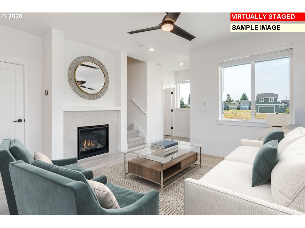 Move-In Ready 3/17/26! Corner lot luxury townhome with A/C, washer, dryer, refrigerator, blinds, and incentive available! Discover Rosedale Parks—where community, convenience, and comfort come together. Located in the heart of Hillsboro’s “Silicon Forest,” just 20 miles west of Portland, this vibrant neighborhood offers the perfect balance of modern living and natural beauty with easy access to urban amenities and outdoor recreation. Enjoy resort-style amenities including a pool with spa, clubhouse, fitness center, splash pad, fire pits, and community room—ideal for relaxing or gathering with neighbors. Nearby, explore over 30 parks and 25 miles of trails, including the scenic Tualatin Valley Scenic Bikeway and Jackson Bottom Wetlands Preserve. The Drake floor plan blends Pacific Northwest Craftsman style with a smart, contemporary layout. The open main level features a well-appointed kitchen with bar seating that flows seamlessly into the great room—perfect for entertaining or everyday living. From the dining area, step out to a spacious private, fenced side yard. Upstairs, a bright loft with a skylight separates the secondary bedrooms and full bath from the private primary suite, offering flexibility and privacy. A convenient half bath is located on the main level. Thoughtful finishes include quartz countertops, luxury vinyl plank flooring, gas range, fireplace, tiled shower walls, and air conditioning for year-round comfort. Ideally located with easy access to Portland and Beaverton, Rosedale Parks offers exceptional connectivity in a thriving community setting. HES Score=10. HES Report available at: https://rpt.greenbuildingregistry.com/hes/OR10232267.pdf [Home Energy Score = 10. HES Report at https://rpt.greenbuildingregistry.com/hes/OR10232267]