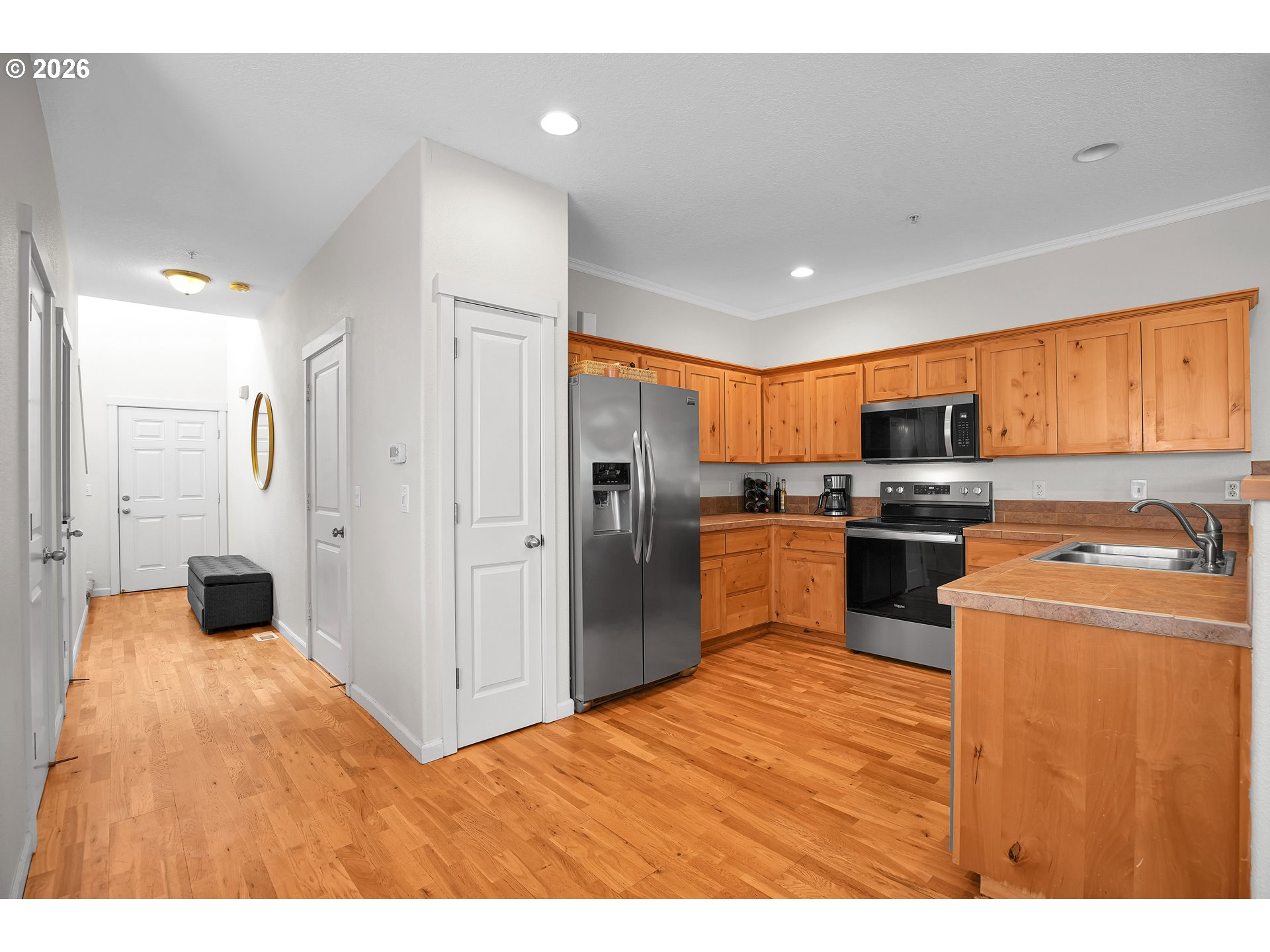 Beautiful end-unit townhome tucked away at the end of a quiet alley in desirable Beaverton location. Built in 2002, this well-maintained home offers 1,500 sq ft with 3 bedrooms, 2.5 baths, and a 1-car garage. Enjoy a rare oversized lot with spacious front, side, and backyard areas—larger than most in the community—plus a fully fenced yard and dedicated dog run.The inviting interior features a gas fireplace, hardwood and carpet flooring, and a light-filled layout. Recent updates include fresh interior paint (2024), upgraded chandeliers in the entry and dining area, and brand-new stainless steel appliances including dishwasher, microwave, and oven (2025). Step outside to a leveled backyard with a newer tile patio—perfect for entertaining. Additional improvements include removal of side yard trees for added usability and space. HOA has completed major updates, including roof replacement (2019) and repainting of buildings and railings (2025), with no special assessments during current ownership. This move-in ready home combines comfort, thoughtful updates, and exceptional outdoor space less than 1/2 mile to Nike.