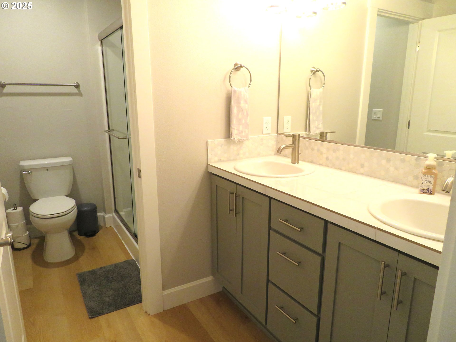 Beautiful and better than new. Three spacious bedrooms, 2.5 bath. Great room open floor plan. Bright kitchen, quartz counters, breakfast bar, stainless appliances, refrigerator included. Large dining room, laminate flooring on main level, gas fireplace. RV Parking, A/C, covered porch perfect for entertaining. No HOA! Must see to appreciate! Minutes to high tech, restaurants and shopping. [Home Energy Score = 8. HES Report at https://rpt.greenbuildingregistry.com/hes/OR10196067]