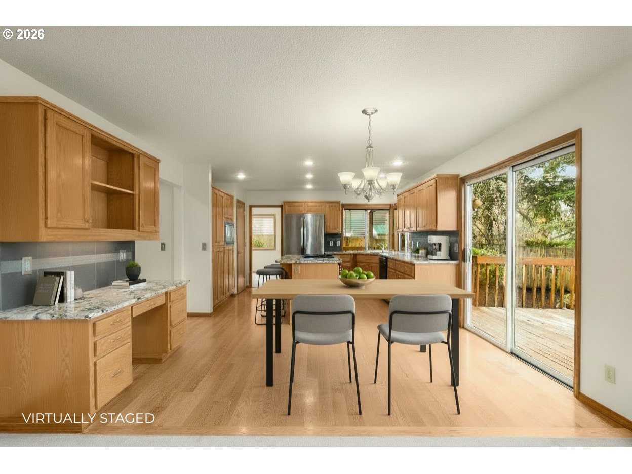 (503) 893-8874Coveted Allenbach Acres location! This beautifully laid-out home offers an open floor plan designed for both everyday living and entertaining. The island kitchen features slab granite countertops, tile backsplash, pantry, eating bar, gas range, stainless steel refrigerator, built-in microwave, and a spacious eating area. Adjacent family room includes a classic brick fireplace with custom built-ins.A two-story entry welcomes you into the home, opening to a vaulted living room with a bay window that fills the space with natural light. Formal dining room provides direct access to the covered deck—perfect for indoor-outdoor entertaining. The kitchen eating area also features a slider to the deck, overlooking a large, flat, fully fenced backyard with hardscaping, garden boxes, and plenty of grassy space.The spacious primary suite features dual vanities with granite countertops, tile walk-in shower, and a walk-in closet. Oversized bedrooms throughout. Additional highlights include a huge bonus room with skylights, a versatile loft, and a main-level bedroom.Recent updates include new carpet and fresh interior paint, complementing the hardwood floors that extend from the entry through the kitchen. A utility room with sink adds everyday convenience, and the three-car garage offers ample storage.Fantastic location close to schools, parks, restaurants, and shopping complete this must-see home.