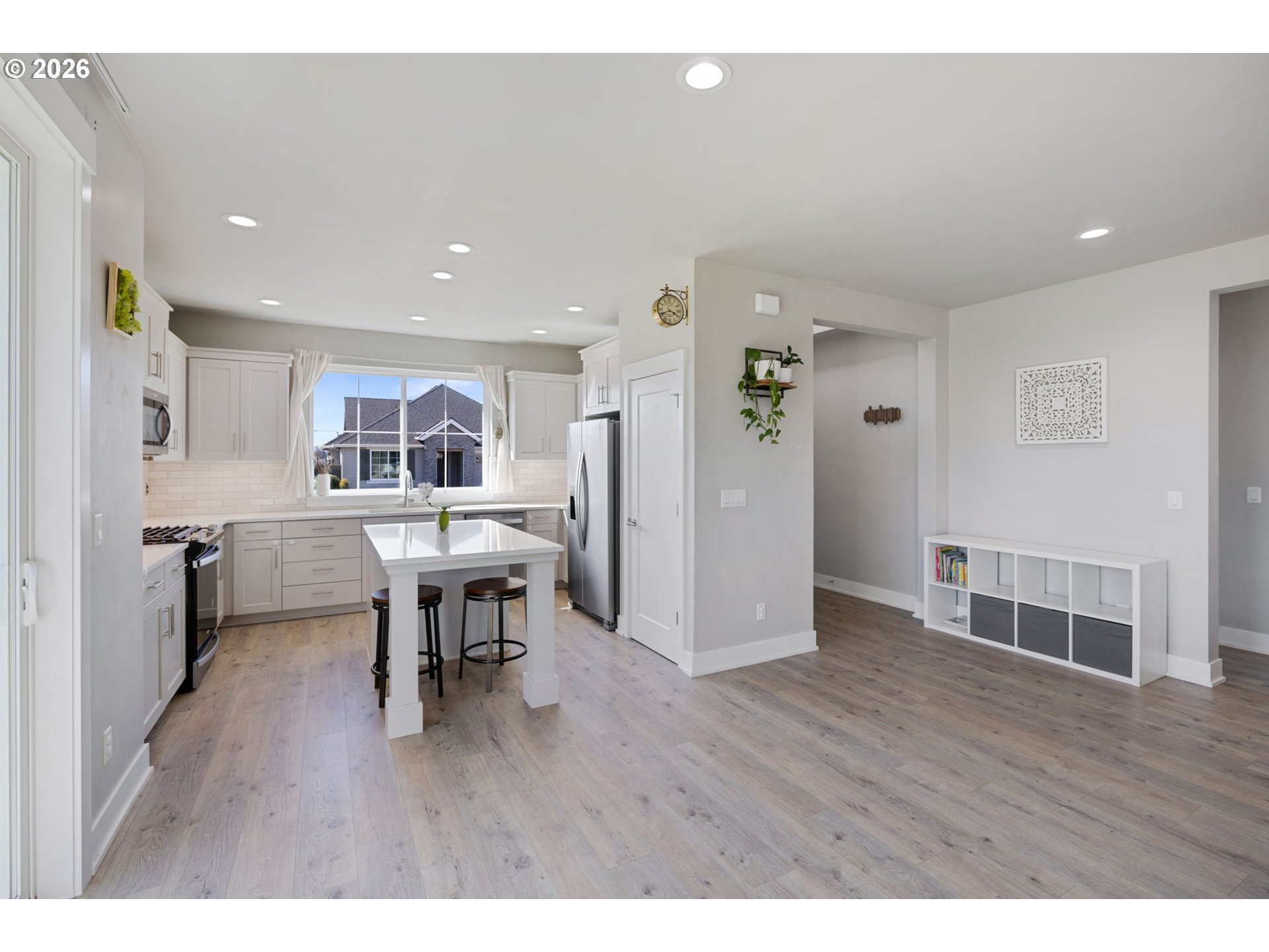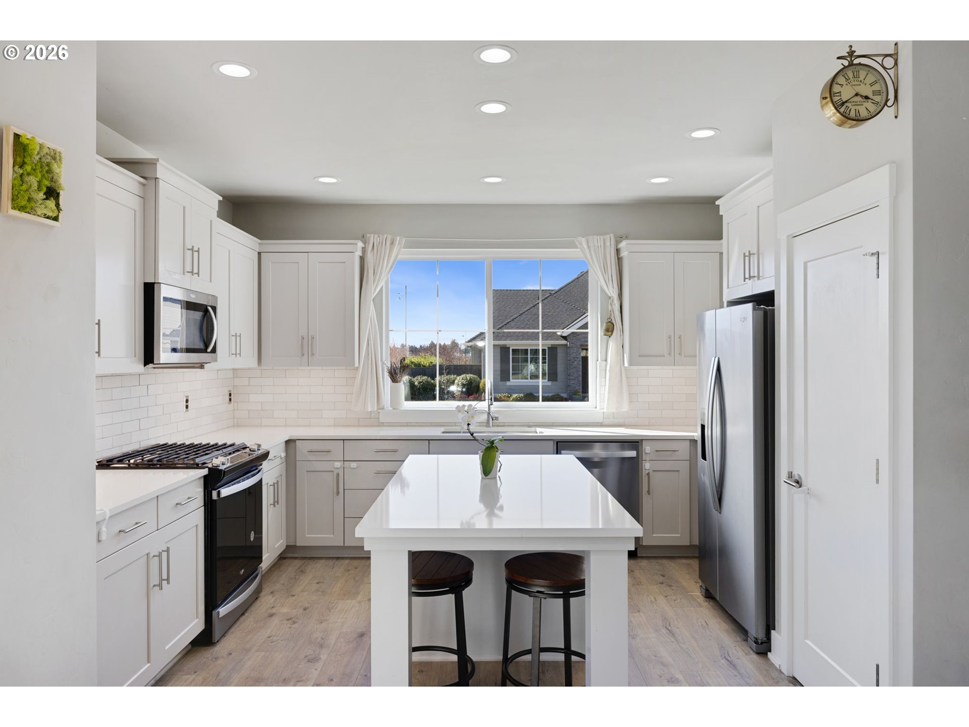 Welcome to this beautifully maintained single-level ranch-style home ideally situated on a desirable corner lot in Hillsboro. Filled with abundant natural light, this home offers a bright and inviting atmosphere throughout.The thoughtfully designed floor plan features three generously sized bedrooms and an open living space highlighted by vaulted ceilings that enhance the sense of openness and comfort. The upgraded kitchen showcases elegant quartz countertops, modern finishes, and seamless flow into the living and dining areas — perfect for everyday living and entertaining.Enjoy stylish engineered hardwood flooring in the living room and kitchen, complemented by quartz surfaces in both the kitchen and bathrooms for a cohesive, upscale feel.Step outside to a beautifully finished low-maintenance side yard with turf grass, ideal for relaxing, entertaining, or year-round enjoyment without the upkeep.Conveniently located near parks, shopping, dining, and major commuter routes, this move-in-ready home combines comfort, style, and functionality in one exceptional package.