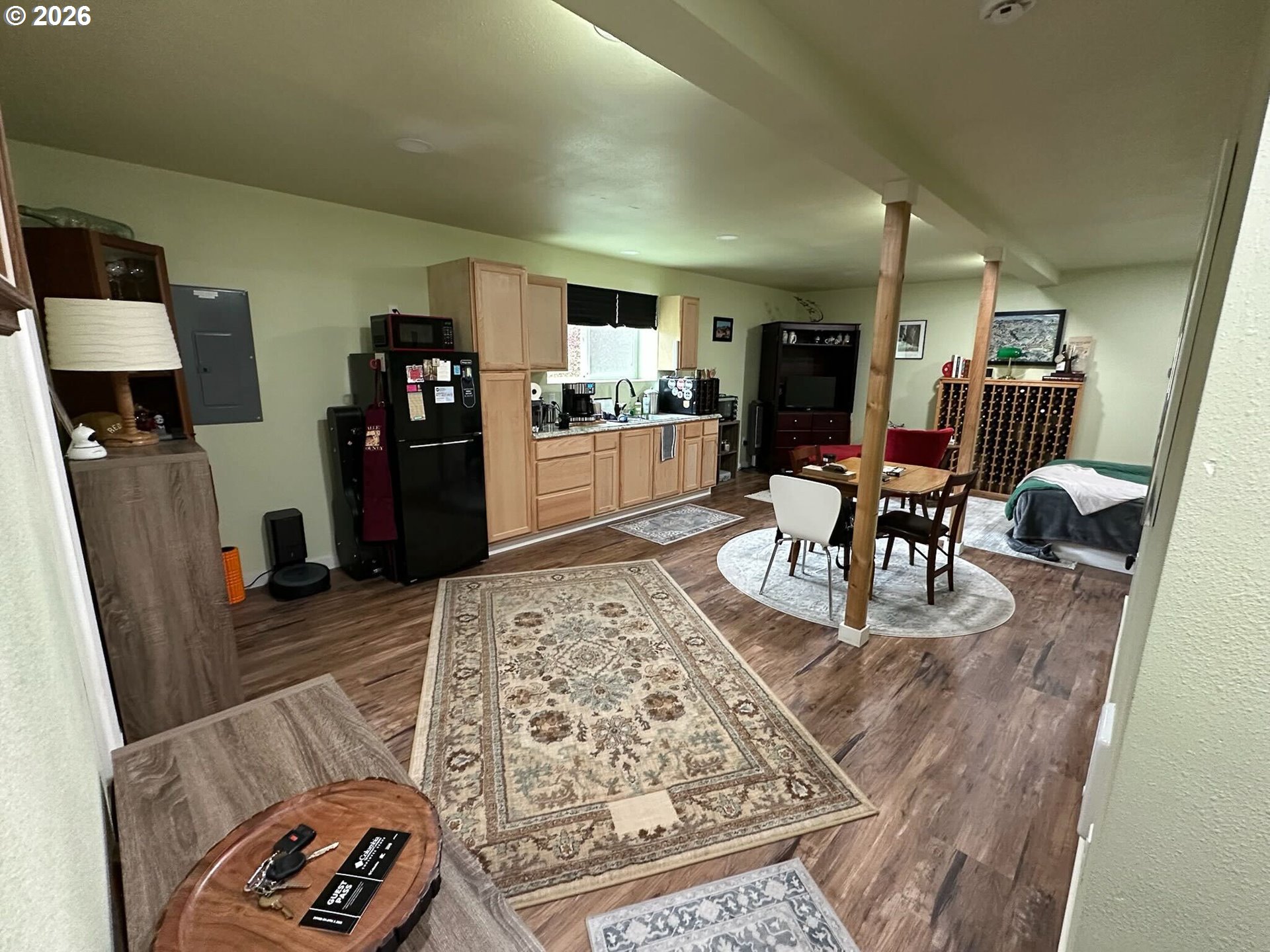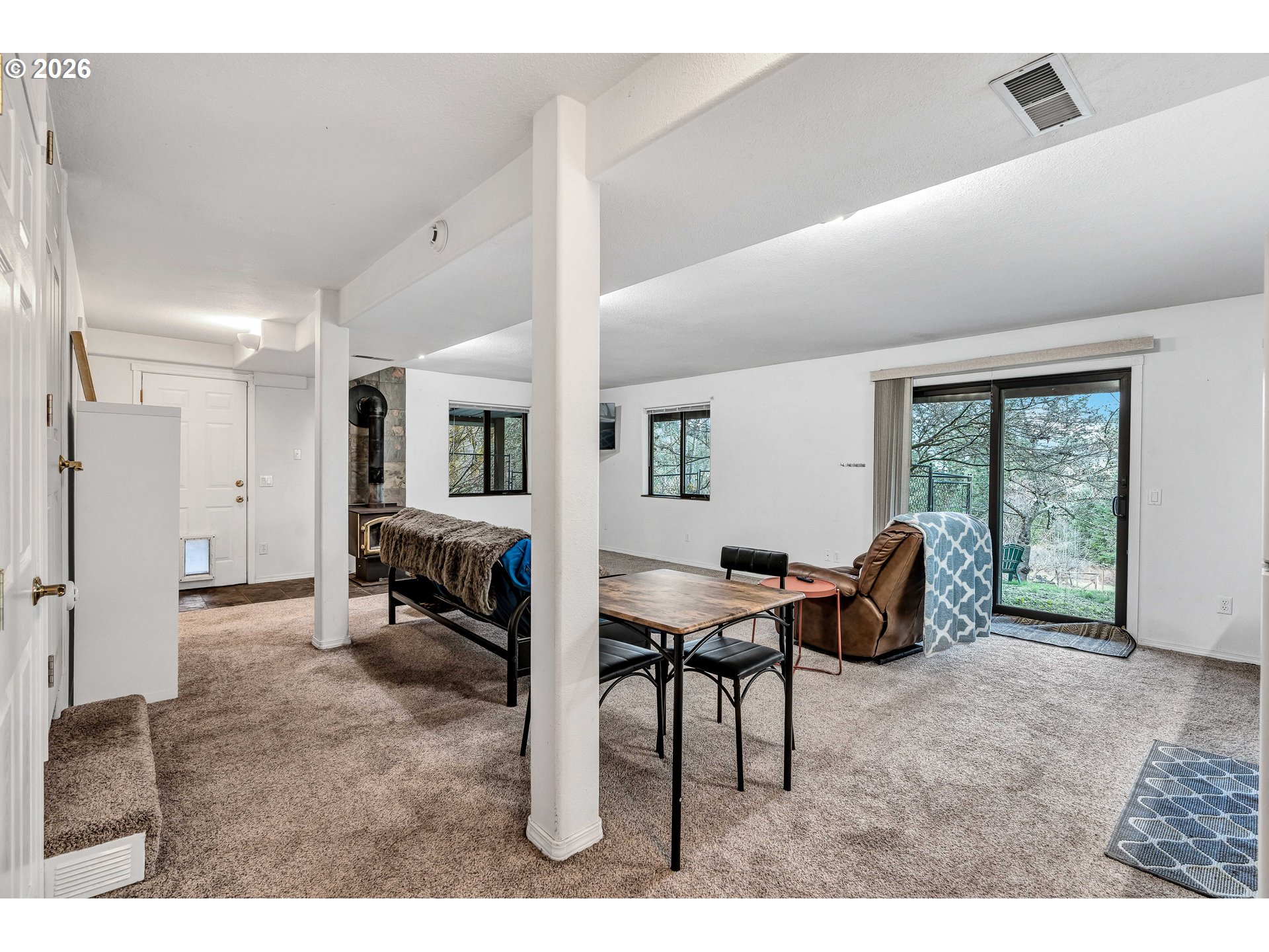 (503) 893-8874Country living at its best! This beautiful home sits on 9 private acres surrounded by forest, wildlife, and serene natural beauty, complete with a pond, garden area, mature fruit trees, chicken coop, and in-ground sprinkler system. A gravel driveway welcomes you into this peaceful retreat.The main level features an expansive open floor plan with hardwood floors, vaulted ceilings, and abundant natural light. The spacious living, kitchen, and dining areas flow seamlessly together, each with updated Andersen sliding doors leading to the wraparound deck. Enjoy tranquil views of the grounds and unwind in the hot tub, creating the perfect indoor-outdoor lifestyle. The generously sized kitchen offers stainless steel appliances, a gas stove, island with eat bar, and ample space for gatherings and everyday living.Three bedrooms are located on the main level, all with wall-to-wall carpet, including the primary suite with a walk-in closet, ensuite bath, ceiling fan, and private deck access. The home offers a total of 2.5 baths, with 1.5 baths on the main level and a full bath on the lower level.Downstairs provides incredible flexibility with a large family room featuring a cozy wood stove and kitchenette, a fourth bedroom, and an additional bonus room ideal for a bedroom, office, gym, or hobby space. Sliding doors open to the enormous backyard, making this level perfect for multigenerational living or extended guest stays.Major updates include new windows (approximately 4 years old), a roof (4 years old), leaf guard gutters, and an efficient heat pump with A/C for year-round comfort.The property also features a detached 40' x 50' shop with power, water, heat, and two 12-foot doors, plus RV and boat storage. The ADU is located within the shop while preserving full shop functionality for everyday use.With expansive grounds, peaceful surroundings, and endless possibilities, this one-of-a-kind property offers privacy, versatility, and the true charm of country living.