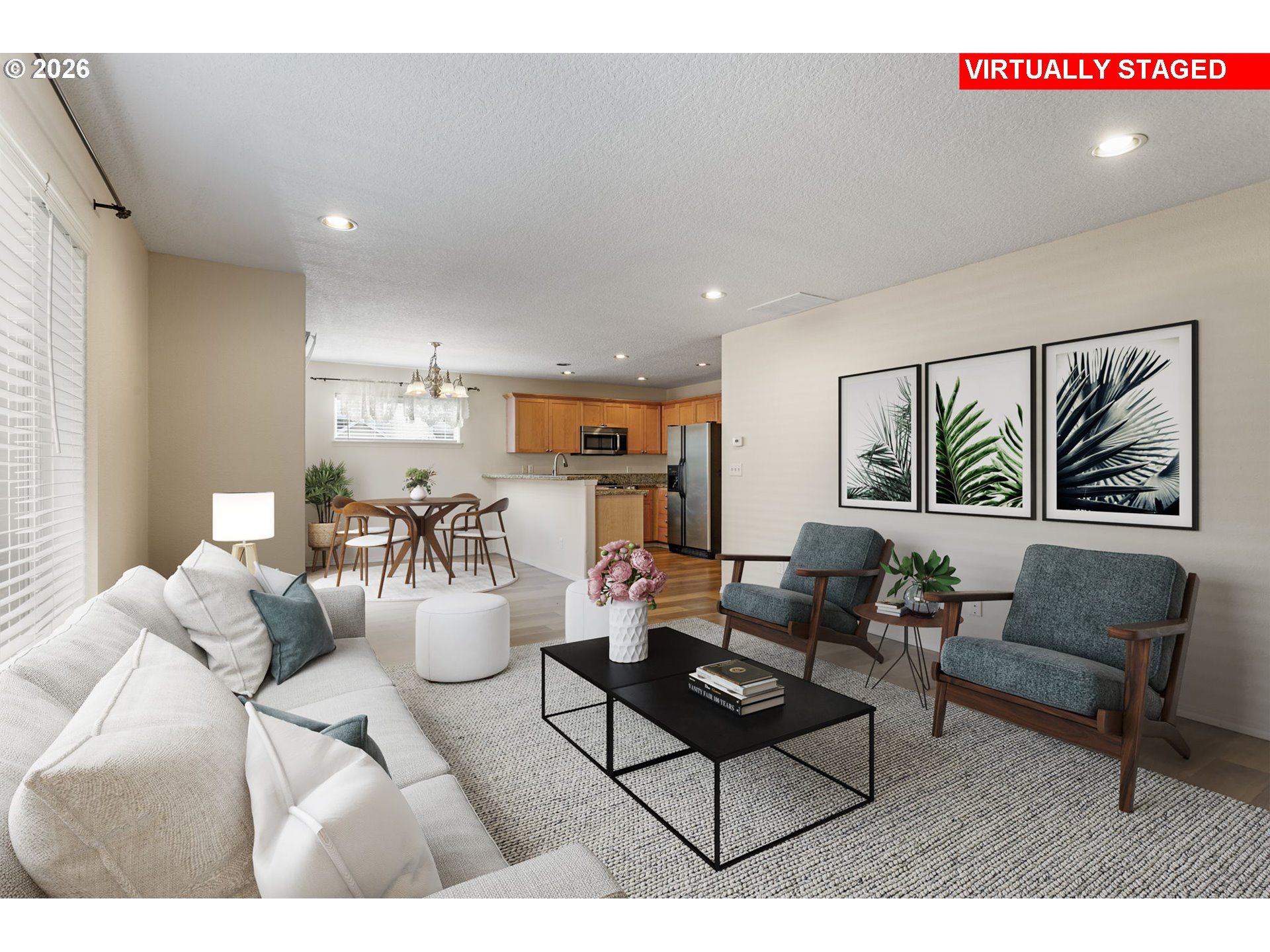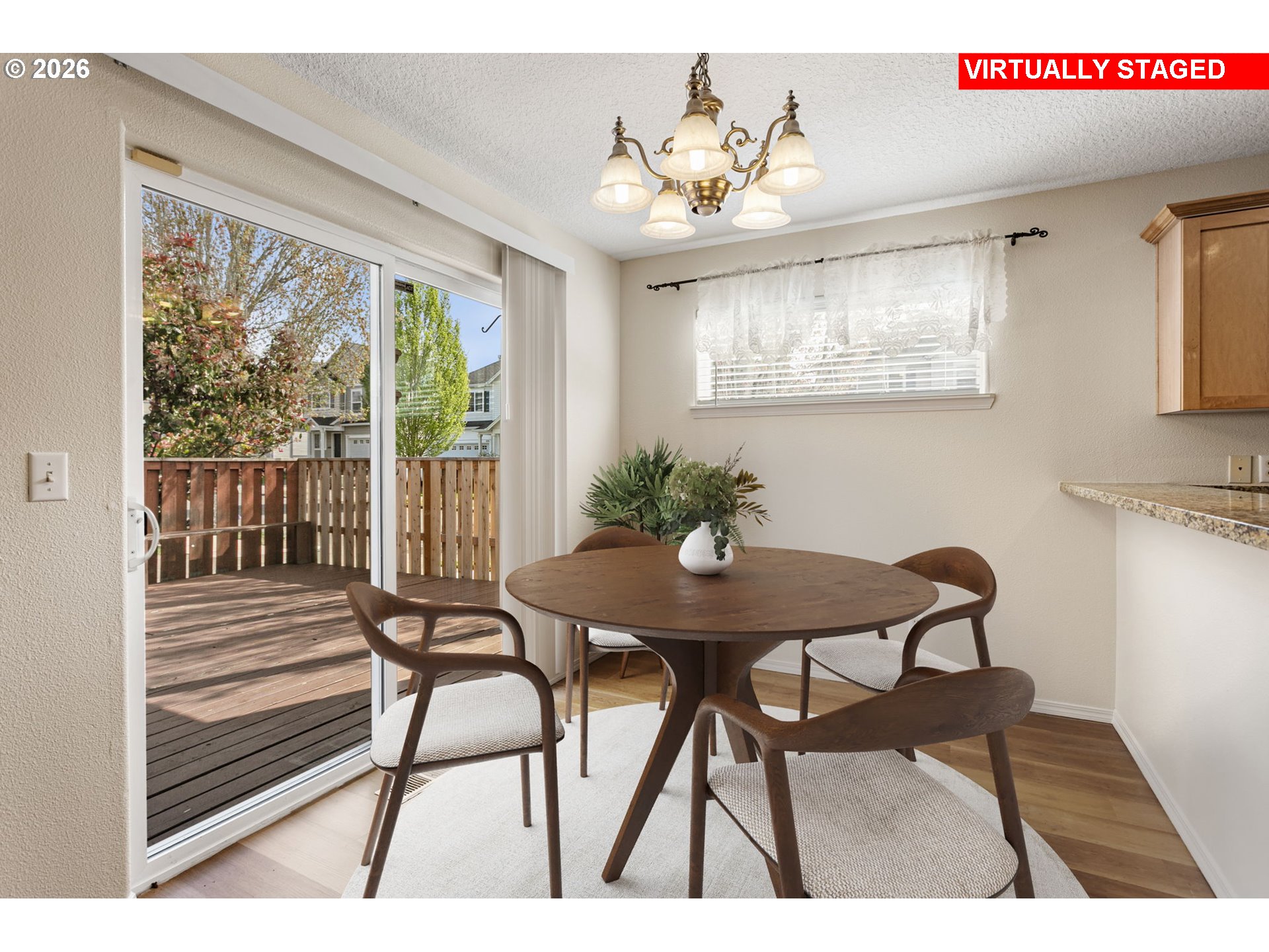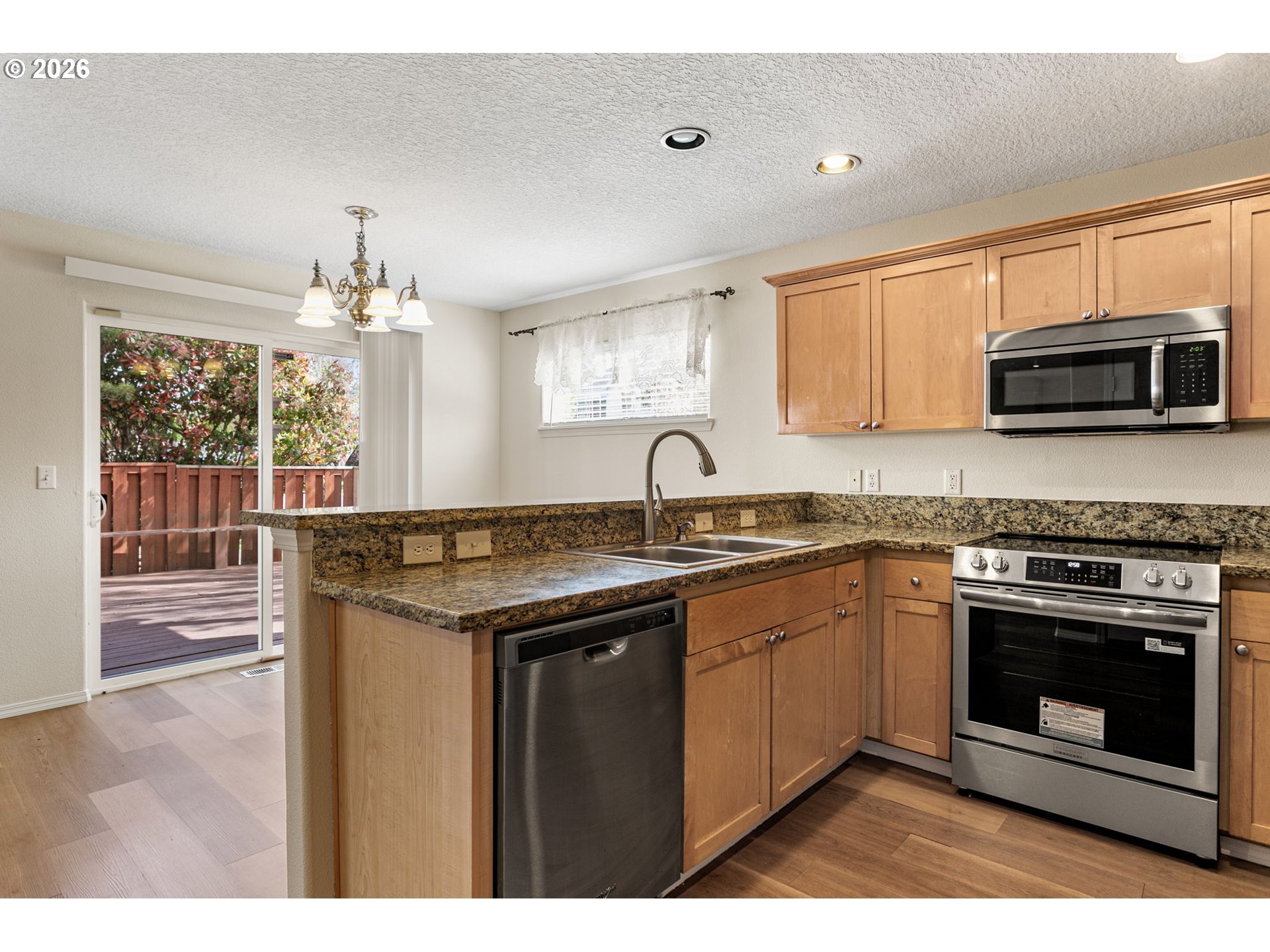 Beautifully updated 4-bedroom, 2.5-bath home on a desirable corner lot in the sought-after Bethany School District! The flexible floor plan features a main-level bedroom or office, ideal for guests, multigenerational living, or working from home. This spacious and inviting home offers a bright great room with a cozy gas fireplace and elegant mantle, perfect for everyday living and entertaining, along with a dining room featuring a slider to the backyard.The kitchen showcases stylish cabinetry, updated countertops, tile accents, and newer stainless steel appliances, including a brand-new flat-top stove. Upstairs, the spacious primary suite features coved ceilings, a large walk-in closet, and a private bath with dual sinks and a walk-in shower. Two additional bedrooms, a guest bathroom, and a laundry room with front-load washer and dryer complete the upper level.Central air conditioning, recent HVAC maintenance, and a security system provide added comfort and peace of mind. Enjoy outdoor living on the expansive 17x20 deck with a built-in bench, overlooking the low-maintenance backyard. HOA covers front yard landscaping and sprinkler maintenance for easy living.Extensive recent updates include a new roof, flooring, interior and exterior paint, countertops, and roadside fencing. Conveniently located near Bethany shopping, Streets of Tanasbourne, Kaiser and Providence Hospitals, Intel, Nike, and with easy freeway access, this move-in-ready home offers comfort, style, and an unbeatable location!