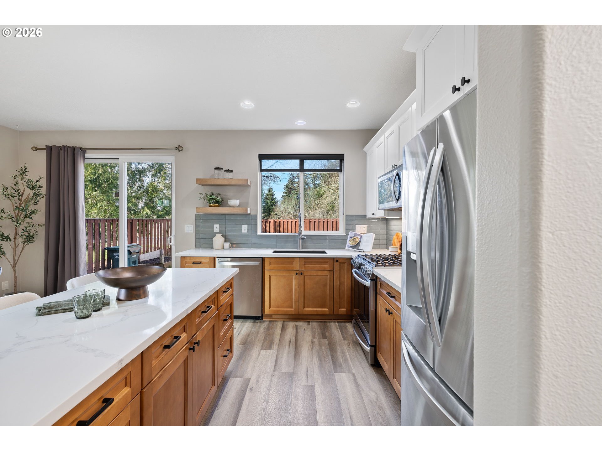 Charming Corner-Lot Home – Freshly Remodeled & Move-In Ready! Welcome to this light-filled, perfectly positioned on a desirable corner lot with extra privacy, yard space, and curb appeal. Located in a friendly Hillsboro-area community, this home offers the ideal blend of modern updates and low-maintenance living.Key Features:3 spacious bedrooms upstairs, including a generous primary suite with walk-in closet, 2.5 bathrooms – powder room on main level for guests. Recently remodeled throughout: fresh interior paint, sleek modern fixtures, and brand-new plush carpeting in all bedrooms and stairs for ultimate comfort. Open-concept main level with bright living room flowing into dining area and kitchen. Updated kitchen with contemporary cabinetry, stainless appliances, and ample counter space and island. Attached garage. Corner lot perks: extra windows for natural light, more outdoor space for gardening or entertaining, and no neighbors on one side. Low-maintenance landscaping. Convenient location near parks, shopping and schools. This home has been lovingly refreshed and is sparkling clean—ready for you to move right in and start making memories. Whether you're a first-time buyer, downsizing, or seeking an easy-care property with room to grow, this gem checks all the boxes. Don't miss all the parking behind the home! [Home Energy Score = 5. HES Report at https://rpt.greenbuildingregistry.com/hes/OR10172519]
