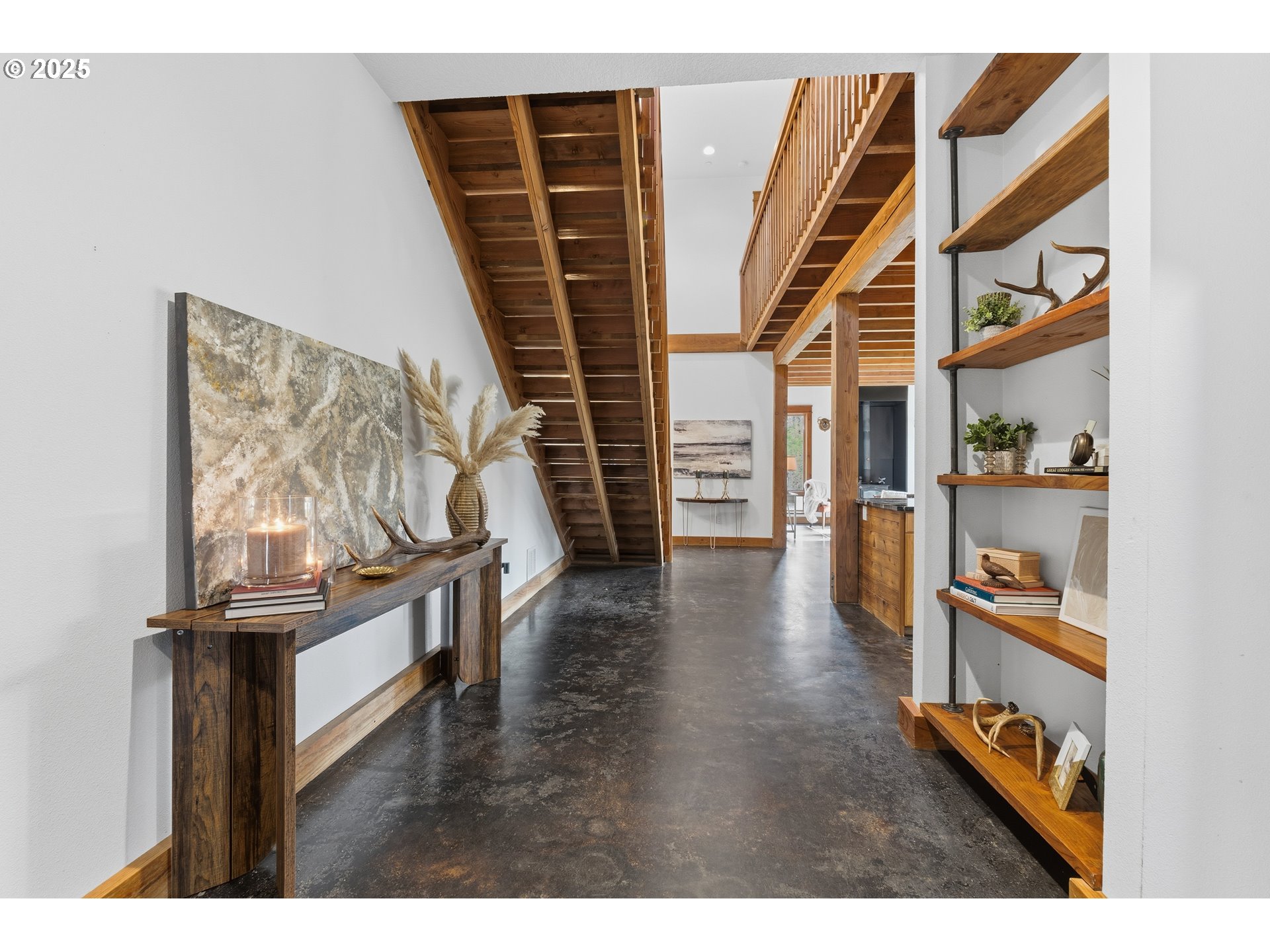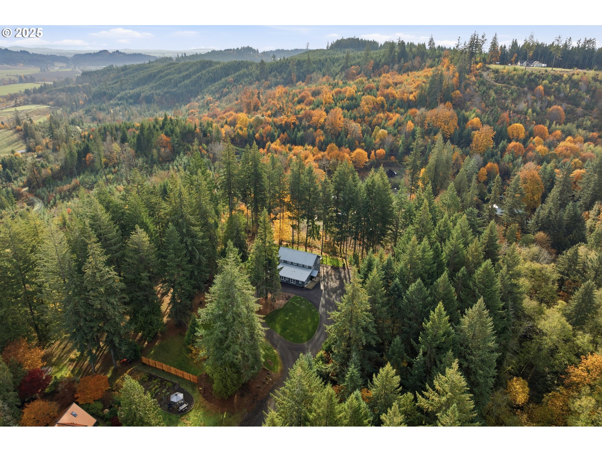 Sustainable Forest Retreat on 10.54 Acres – Banks, OregonDiscover a rare blend of craftsmanship, privacy, and convenience in this custom-built retreat set on over 10 forested acres just outside Banks. Designed with care and intention, this one-of-a-kind property provides a peaceful sanctuary only 15 minutes from Intel and 30 minutes from downtown Portland.Approximately 85% of the wood used in construction was harvested directly from the land (per previous owner), creating a seamless connection between home and nature. Geothermal heating, rainwater irrigation, and heated concrete floors promote comfort and energy efficiency year-round.The gourmet kitchen features a large granite island, propane cooktop, extensive cabinetry, and a walk-in pantry—flowing effortlessly into the great room, where expansive wood-framed casement windows showcase the surrounding greenery. Step through to a covered patio ideal for morning coffee or evening gatherings in the quiet of the forest.The main-level primary suite offers a private escape with a custom walk-in shower, jetted soaking tub, built-in closet system, and direct patio access. A second bedroom and office on the main level provide versatility for guests or remote work.An oversized laundry/mudroom includes built-ins, dual washer/dryer hookups, and plumbing for a sink or pet wash station. Upstairs, three bedrooms, a full bath, and a spacious family room open to a private deck—perfect for soaking in tranquil woodland views.Just minutes from Highway 26, this home delivers the best of both worlds: serene forest living with easy access to the city, coast, and major employers.OPEN HOUSE: November 23rd,from 11 AM–2 PM