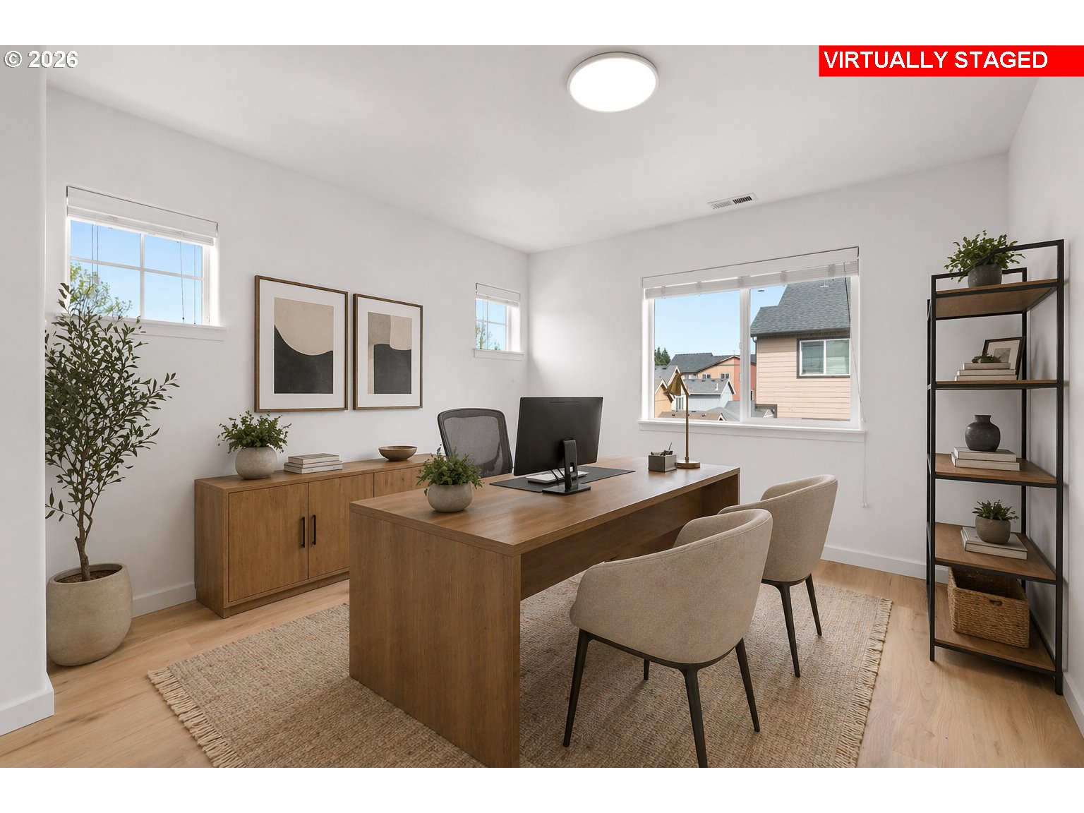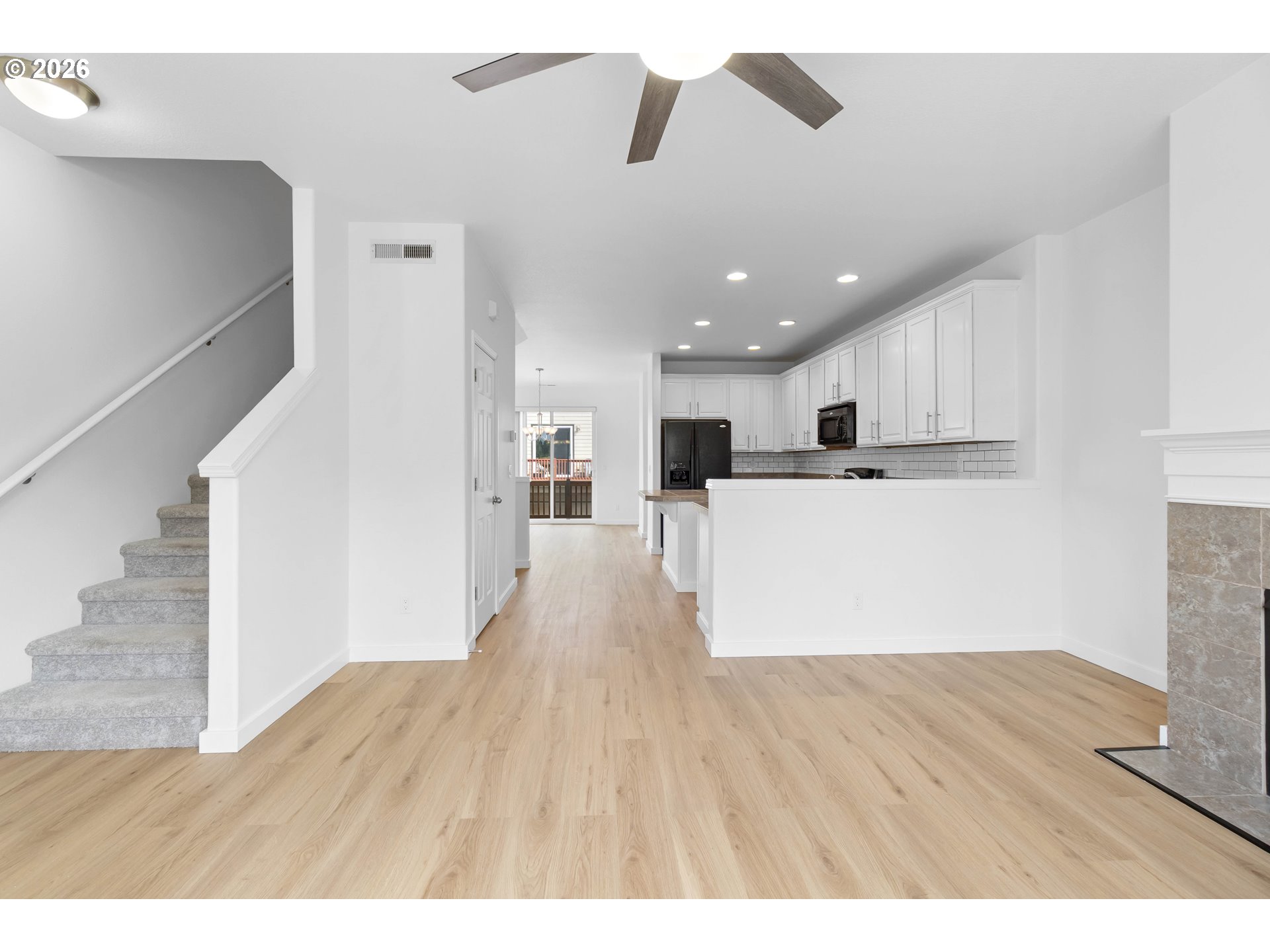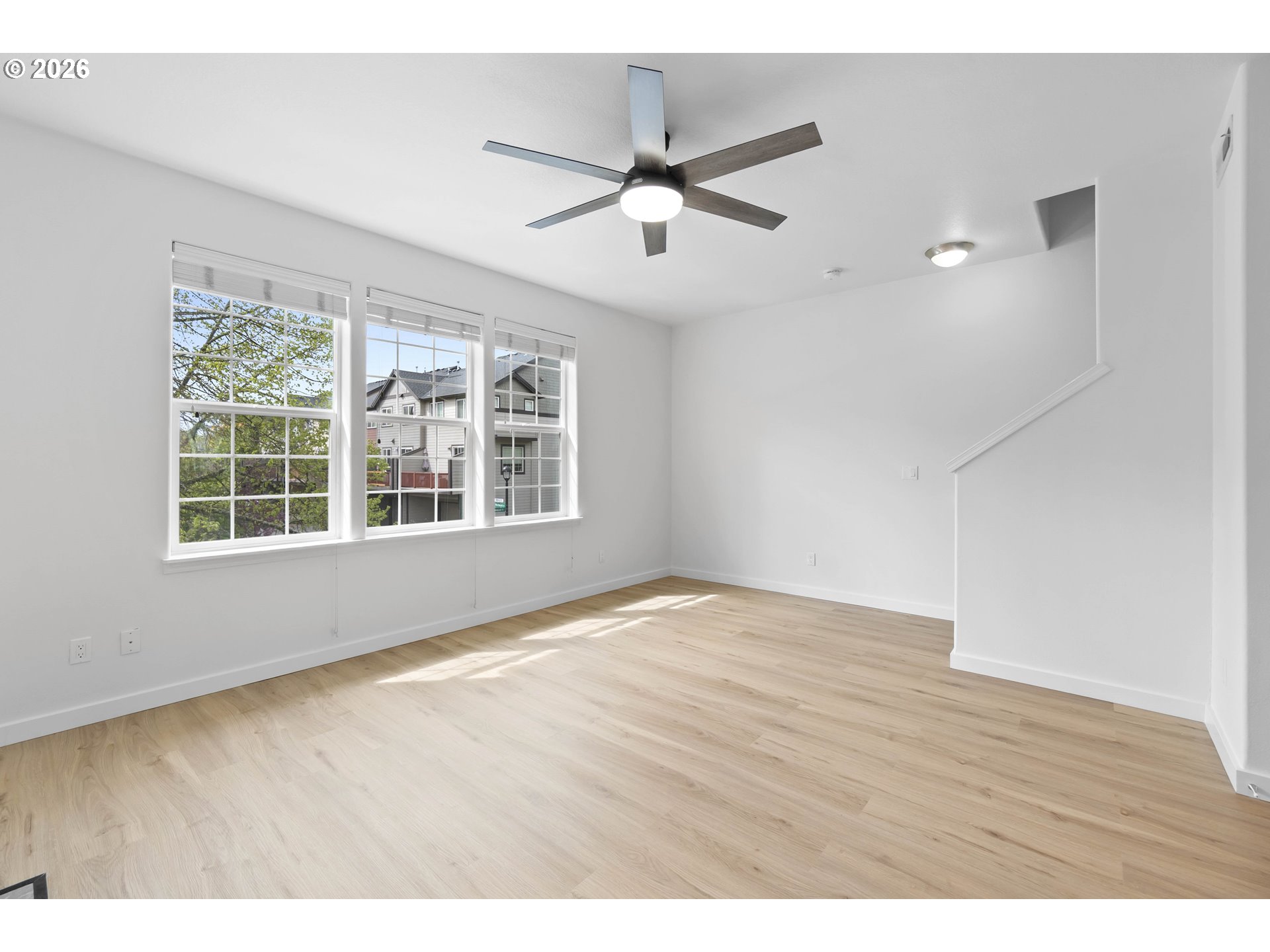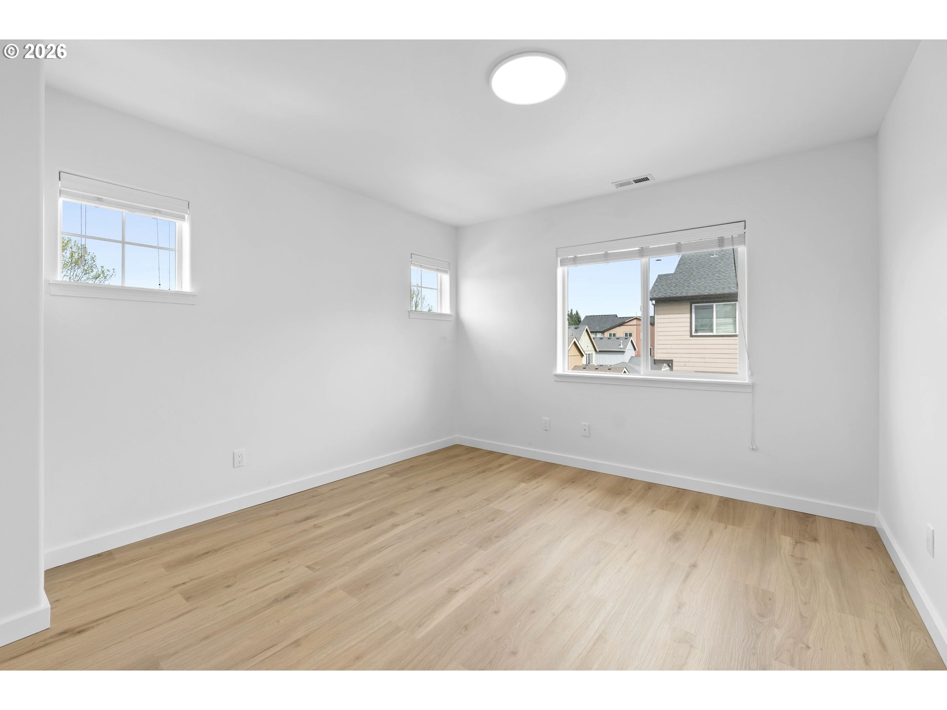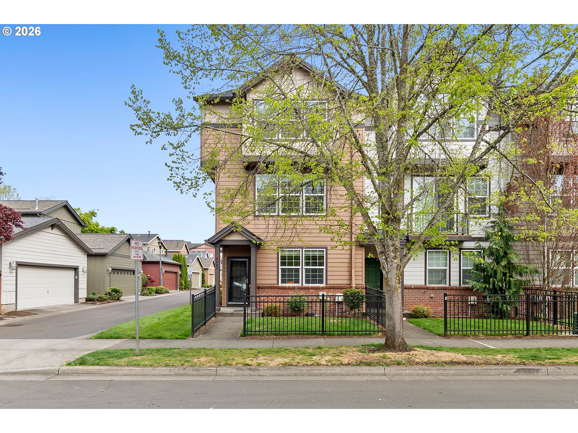 Set within Hillsboro’s Brookwood Crossing community, this refreshed corner-unit townhome brings together space, flexibility, and everyday convenience—just a block from Witch Hazel Elementary.Offering 4 bedrooms and 3.5 bathrooms, the layout is designed to evolve with you. The main level features a private bedroom and full bath with a walk-in shower—ideal for guests, a quiet workspace, or a separate retreat when you need it most.Upstairs, natural light fills the open-concept living space, where the kitchen becomes the heart of the home. Thoughtfully designed with a large island, eat bar, and generous prep space, it flows effortlessly into the dining and living areas—creating an inviting setting for both daily routines and time spent together. Step outside to the balcony patio, a perfect spot to enjoy a morning coffee or unwind at the end of the day.Recent updates bring a clean, modern feel throughout, including new interior paint, updated flooring, stylish bathroom vanities, new baseboards, and updated outlets and switches. Cat6 cabling adds an extra layer of convenience for today’s connected lifestyle.The corner-unit position allows for added privacy and natural light, while the fenced front yard offers a rare outdoor space for relaxing or play. A 2-car garage with additional storage ensures there’s room for everything.Blending thoughtful updates, a versatile layout, and a location that makes daily life feel easy, this home offers a seamless place to step into your next chapter.