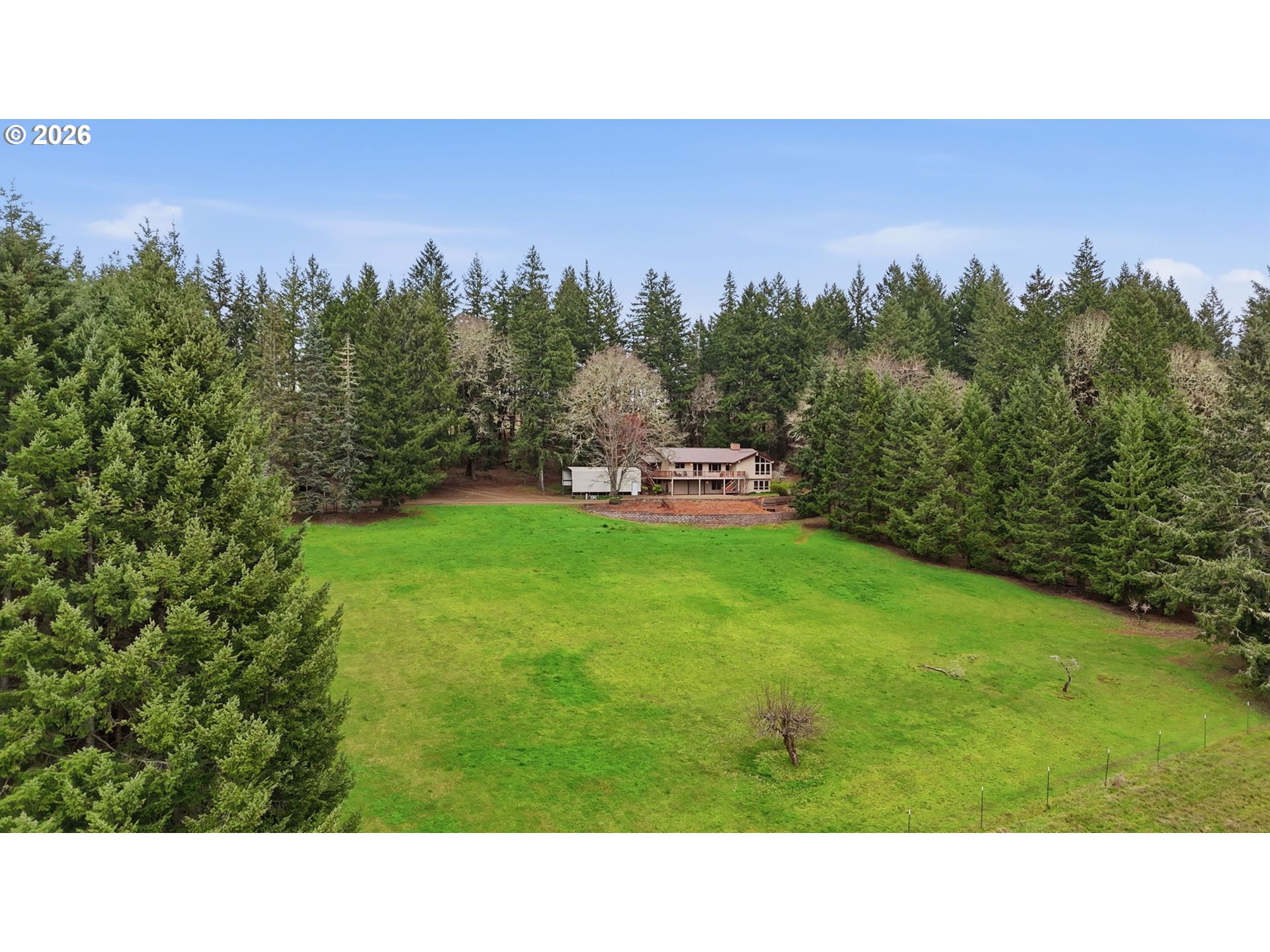 A timeless Forest Grove retreat set on 10 private acres, this custom two-story residence captures the essence of refined Northwest living. Thoughtfully designed to frame sweeping views, the home blends natural materials, warm craftsmanship, and an effortless indoor–outdoor connection. The main floor family room keeps everyone happily spread out, and the main floor bedroom and full bath are perfect for guests, in laws, or anyone who believes stairs are optional before noon. Upstairs, original hardwood floors lead into a vaulted living room with a floor to ceiling fireplace and custom-built ins—the kind of space that begs you to light a fire and curl up with a good book. The kitchen includes an adorable eat-in space, large pantry and views for days. Step onto the wrap around deck and the world opens up to views so pretty you’ll start scheduling excuses to “check the weather.” With the primary suite and two additional bedrooms, the layout offers room to gather, room to retreat, and room to grow. Outside, the property opens into true country living: a large shop for projects and storage, RV parking for adventure-ready weekends, and acres of privacy to roam, garden, or simply breathe. Quiet, peaceful, and wrapped in sky—yet just 10 minutes to Forest Grove for everyday convenience. A rare blend of space, soul, and practicality, ready for its next chapter!