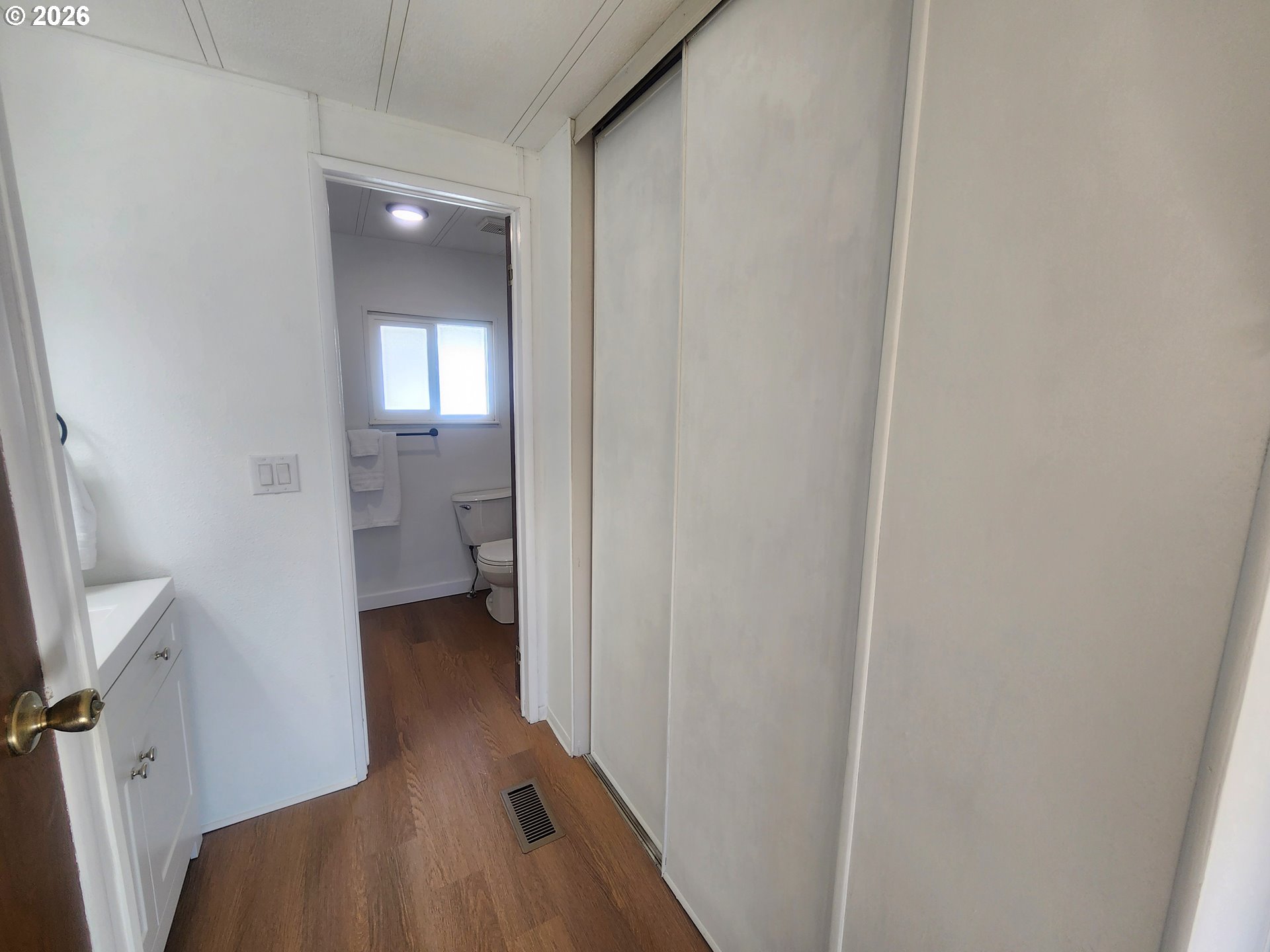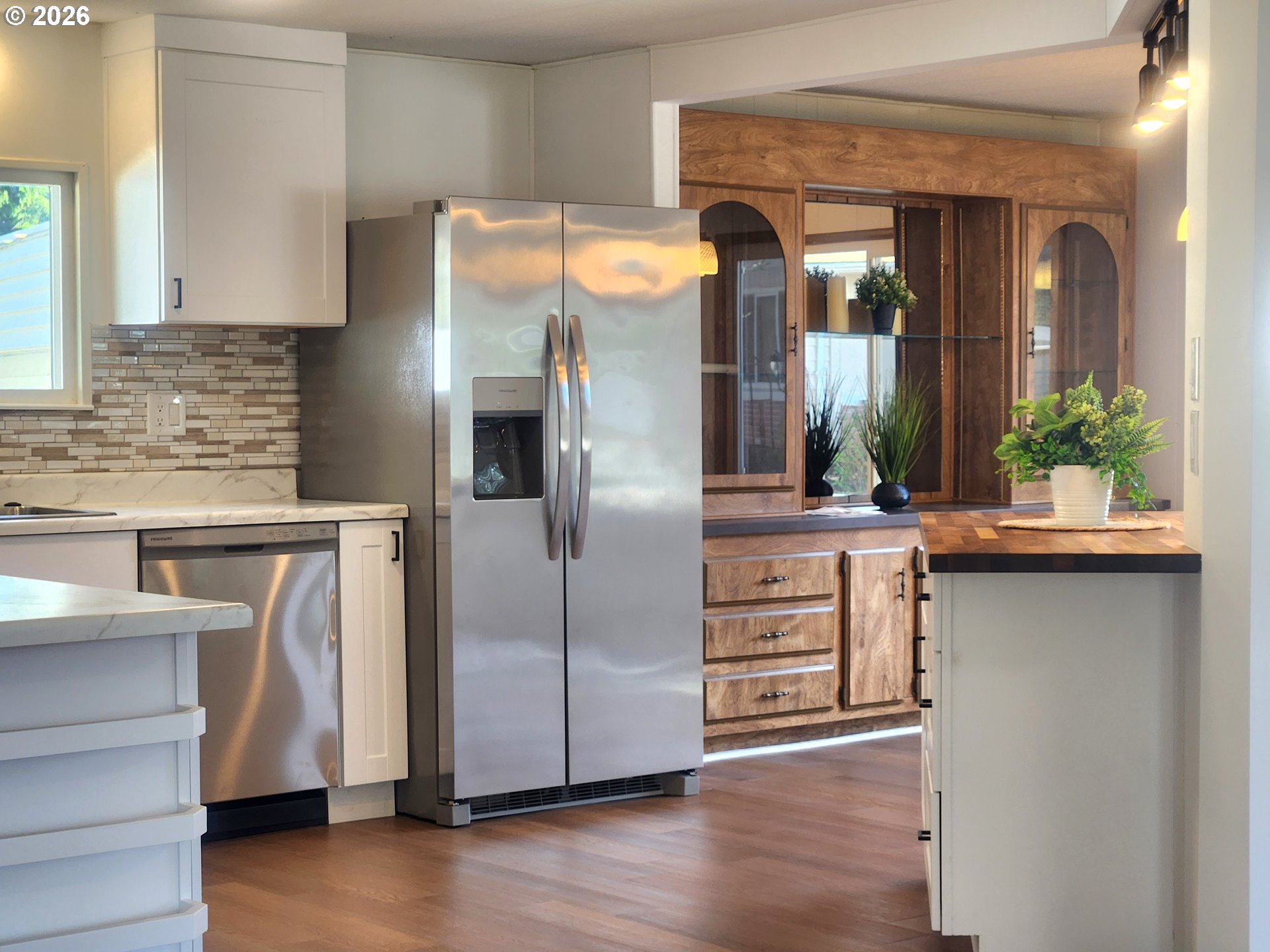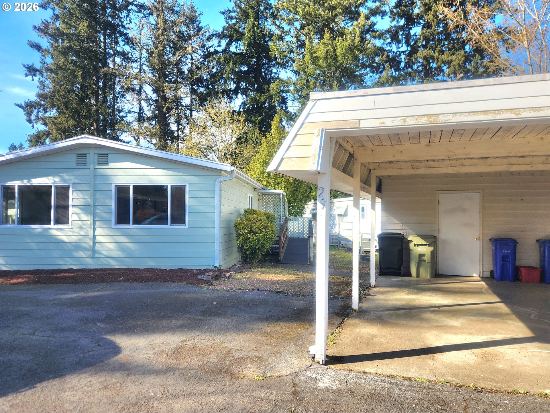 Check out this lovely home in Smoketree Mobile Home Court. Unit 29. This 2bd, 2ba home has had many updates including: new roof, new plumbing, newer heat pump, new kitchen appliances & cupboards. New fixtures in hall bath, and master bath. Vinyl flooring throughout home. Enjoy the large yard, and covered front porch. ADA access at back door. Walk in Shower in primary bathroom. Carport in process of being painted. This is a 55+ community with social opportunities at the clubhouse! Nearby shopping and walking paths. Park fee includes water and garbage, discount for account in good standing. Seller is licensed real estate agent in Oregon. Don't miss this one! Welcome home!