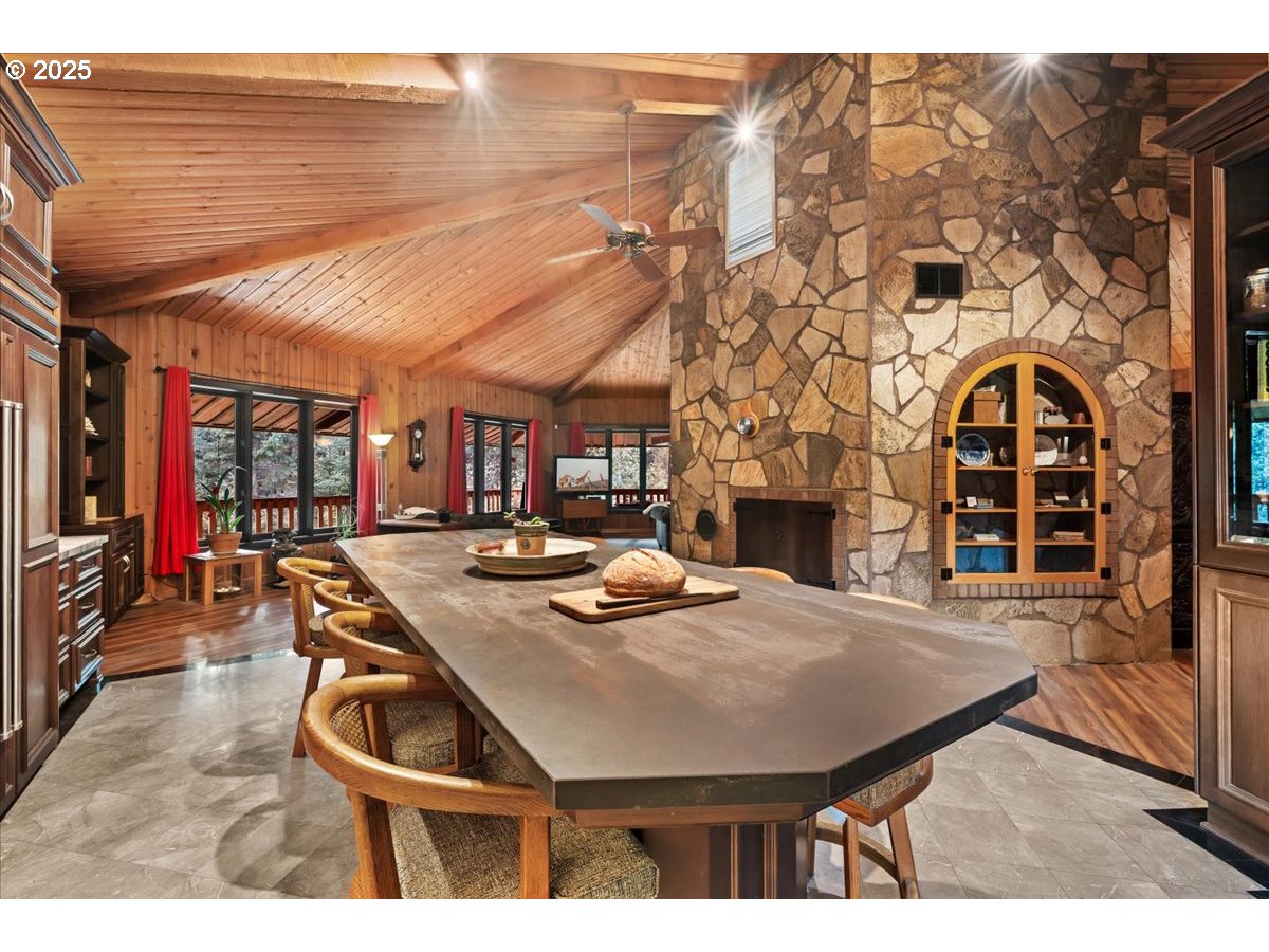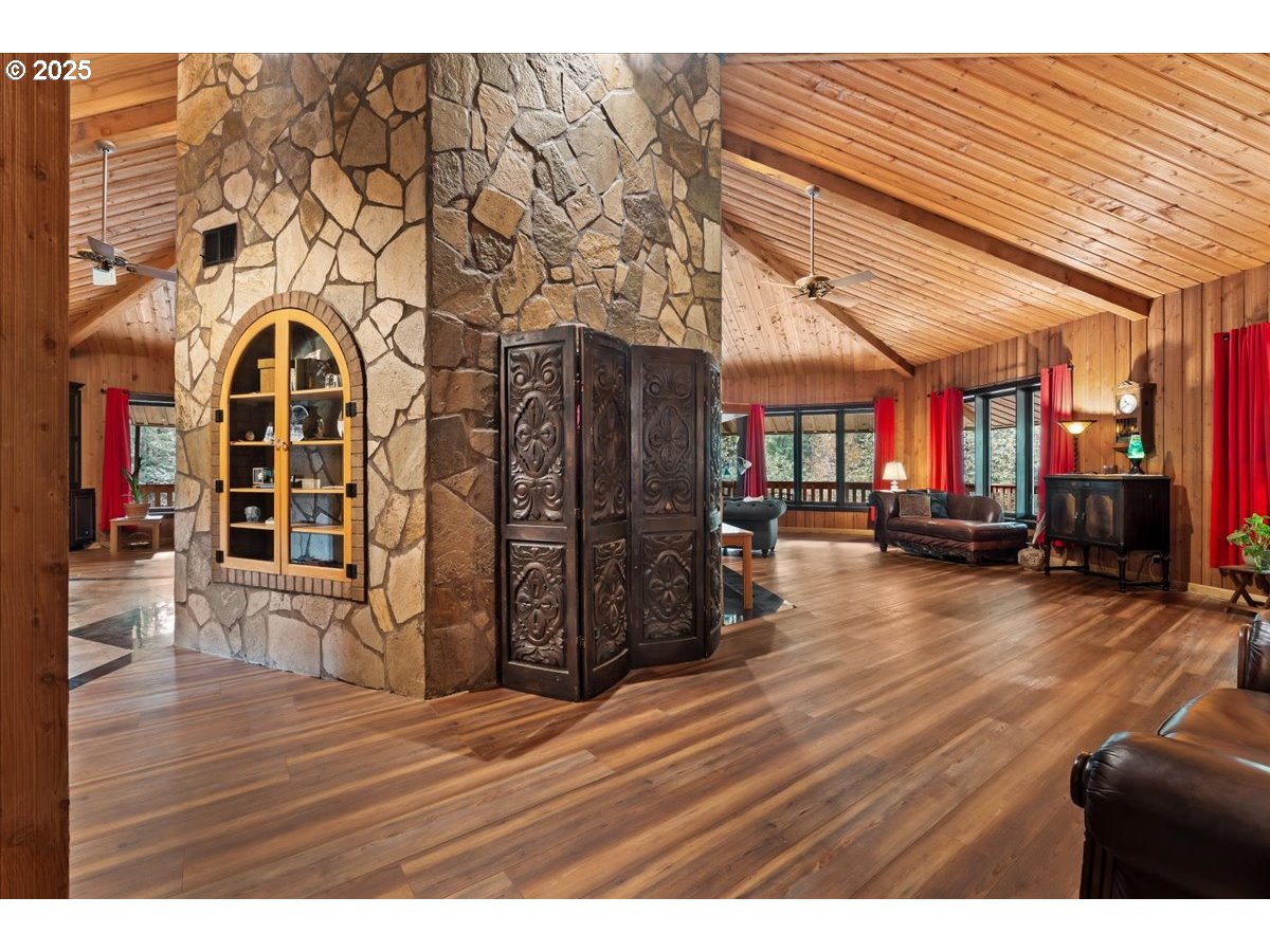 (503) 893-8874Welcome to a truly one-of-a-kind retreat offering peace, privacy, and a sense of tranquility from the moment you arrive. Tucked away on 40+ pristine acres, this custom-built lodge-style residence offers a completely private estate surrounded by old-growth forest and untouched natural beauty. Every inch showcases impeccable craftsmanship, from cedar tongue and groove interior and vaulted ceilings with exposed beams to the impressive floating staircase, creating a warm, natural ambiance throughout. Gather around the stunning two-story stone fireplace, the heart of the home and captivating focal point that continues into the downstairs living area. The chef's kitchen features a generous island with abundant seating, heated tile floors, and a hidden walk-in pantry with rolling ladder. Step through french doors onto the wraparound deck, where morning coffee and evening sunsets are framed by old-growth cedars and serene woodland views. Downstairs, the second full-size kitchen includes a custom boat-shaped bar, while the nearby wine tasting room and wine cellar enhance exceptional entertaining potential. Step outside and discover multiple outbuildings including a gazebo, pavilion, yurt, and three large insulated and heated workshops, offering endless possibilities for hobbies, storage, or guest accommodations. Beyond the residence, the property unfolds like a private nature preserve; wander miles of established trails past two tranquil ponds, a natural beaver dam, and Sadd Creek. Foragers will delight in over 25 varieties of wild mushrooms and herbs, while wildlife enthusiasts can observe nature undisturbed. At night, the absence of light pollution reveals incredible stargazing opportunities. Nestled within a welcoming community, you'll enjoy complete privacy with convenient access to trail systems, local nurseries, and dining. This isn't just a home, it's a legacy property for those who value tranquility, craftsmanship, and connection to the land.