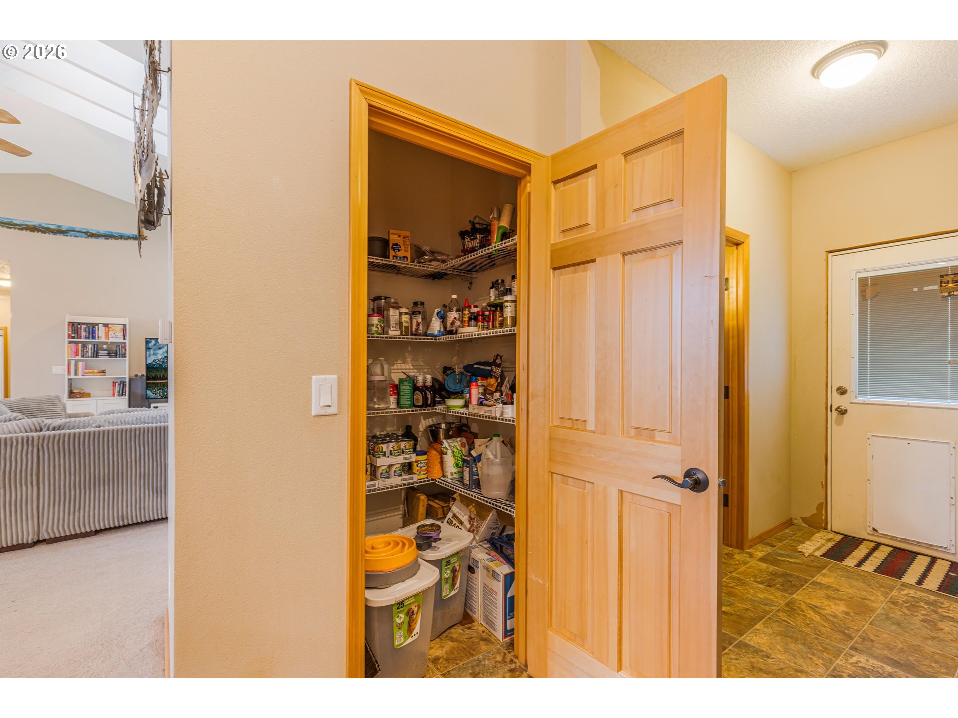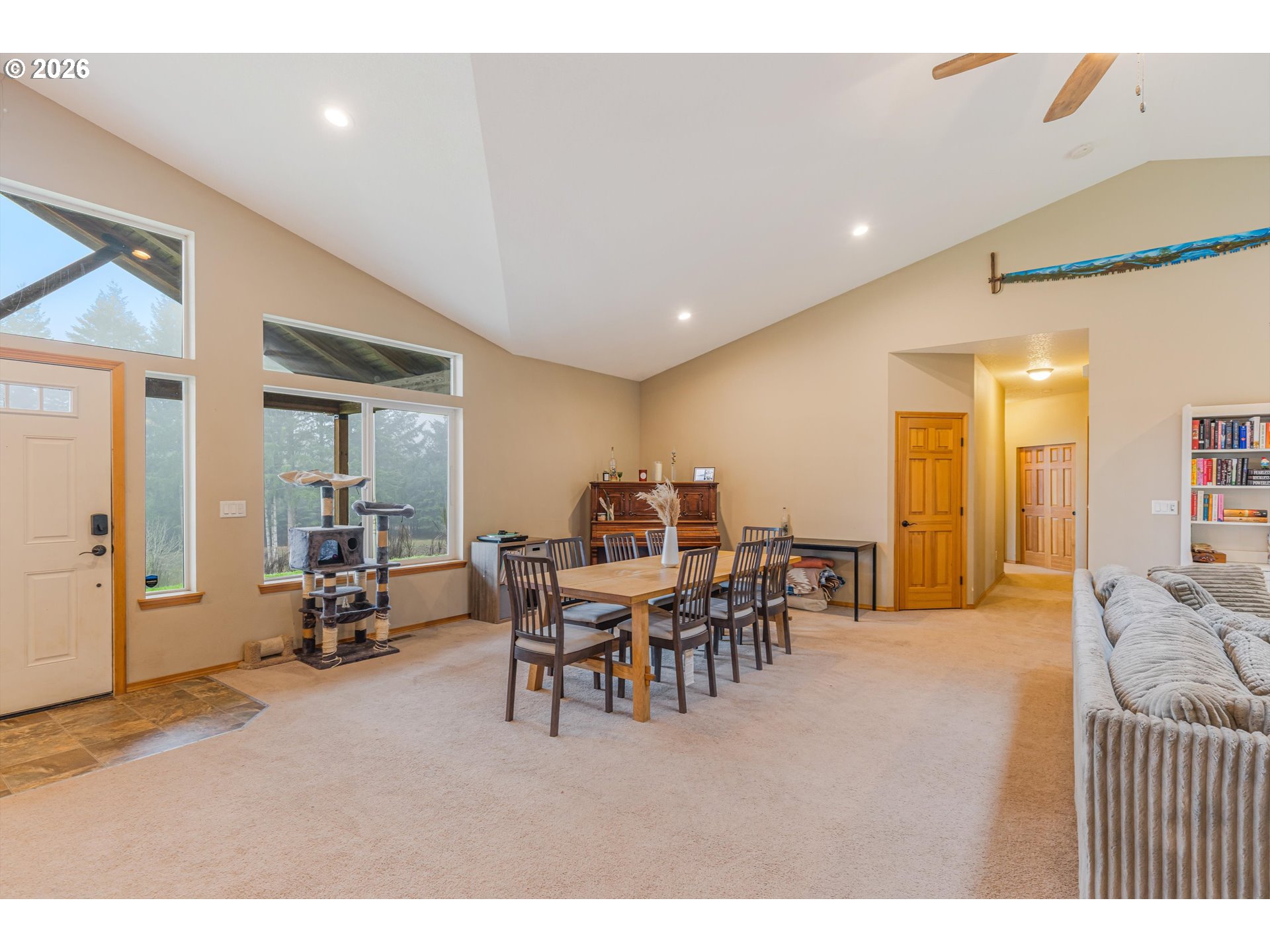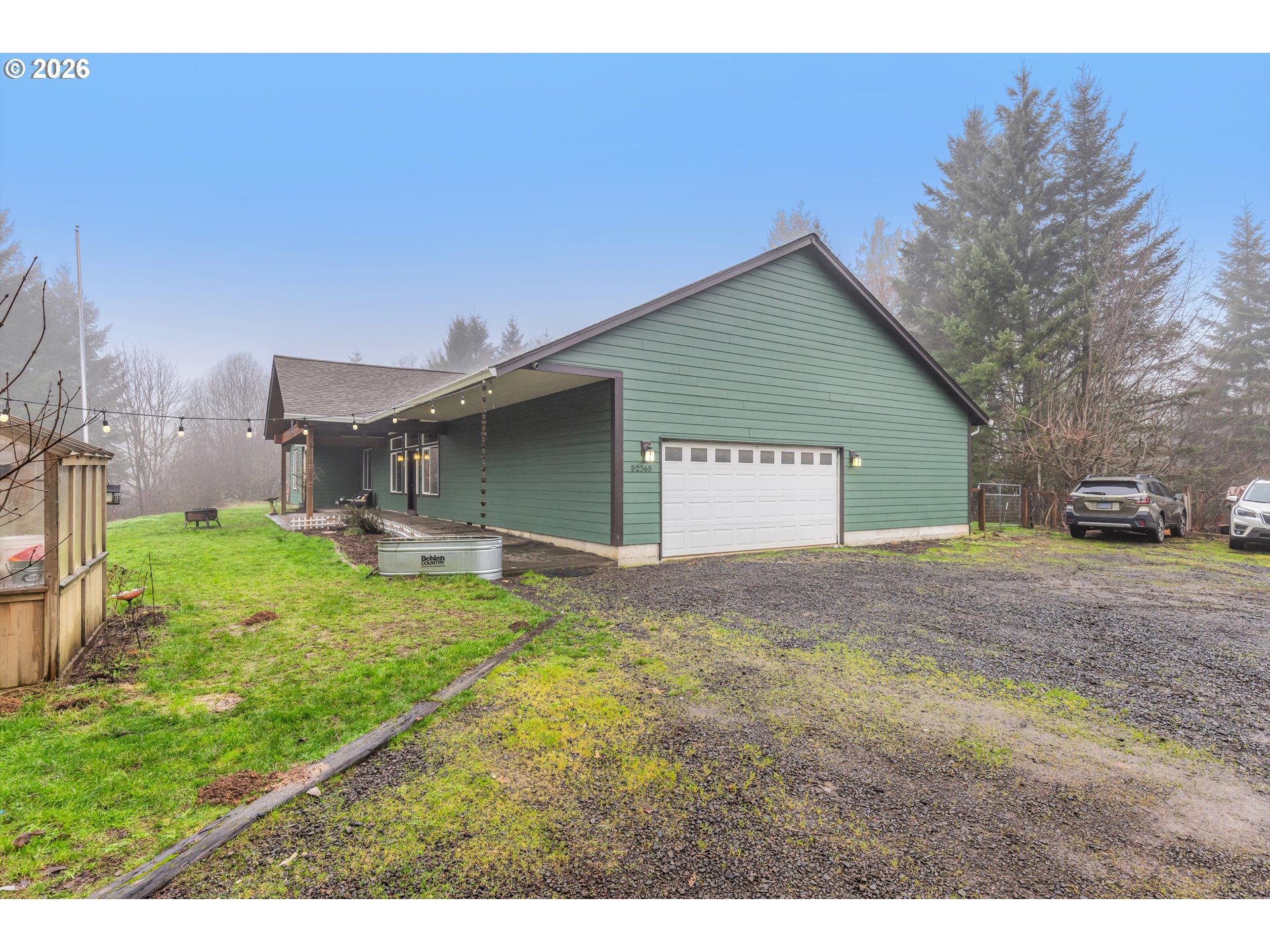 2014 custom built 2650 sq ft 3 bed 2-1/2 single level home with oversized 2 car attached garage on 17.2 acres. Warm yourself by the wood stove in the vaulted living room and watch the wildlife pass through the area out the large windows. Huge kitchen with sink in island to improve workflow and allow socializing, two large pantries, stainless steel appliances and vaulted ceiling. Primary bedroom with ensuite bathroom plumbed and ready for new custom tub/shower, large walk in closet. second bedroom has walk-in closet. Vaulted oversized covered front porch, apple trees, plum trees, blackberries, wild cherries, chicken coop, man made pond with ducks, large area for camping, cross fencing, pasture, marketable timber (part of property is in deferral), compacted driveway can handle heavy vehicles, well with holding tank that is regularly inspected, 6in fire main, Detached 24x40 shop-insulated with separate 220amp service and concrete floor. RV parking pad with electric hook up next to shop. New exterior paint in 2024