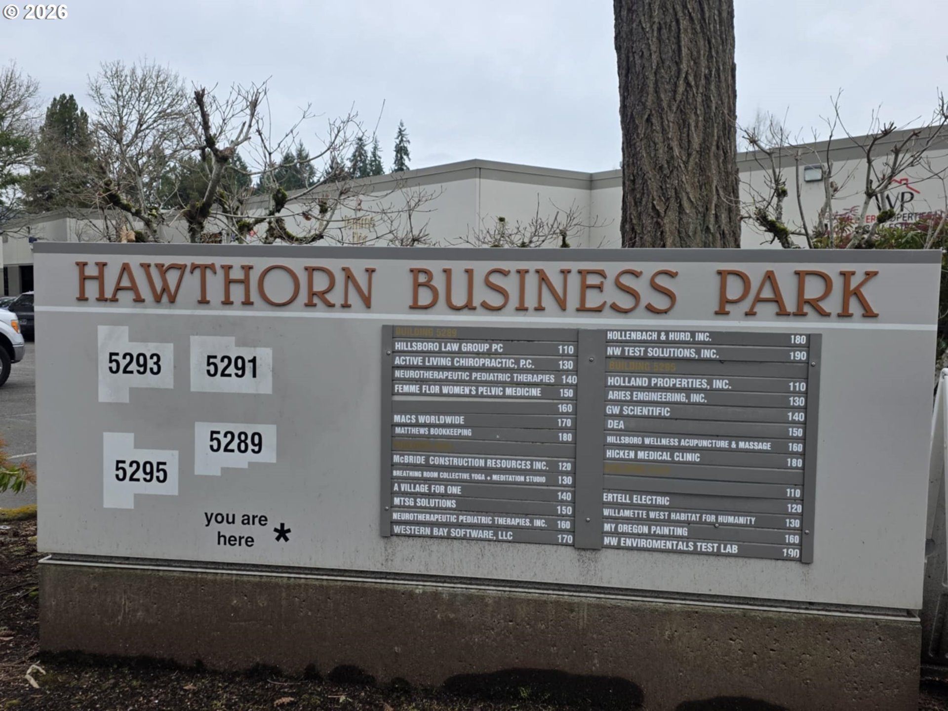 Corner commercial condo office with road frontage in a high-traffic business park. Includes two dedicated parking spaces, three private offices, a reception area, kitchen, and bathroom. The monthly H.O.A. fee of $371 covers all maintenance and landscaping. Conveniently located near Orenco Station, Intel, and Hillsboro Airport, and less than 10 minutes from Hwy 26.Adjoining unit #180 ML#735148189 is also available and can be combined with this unit.