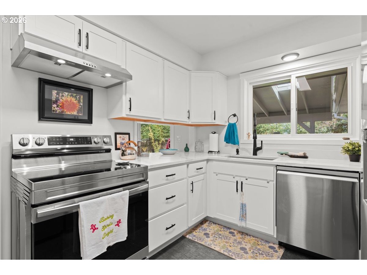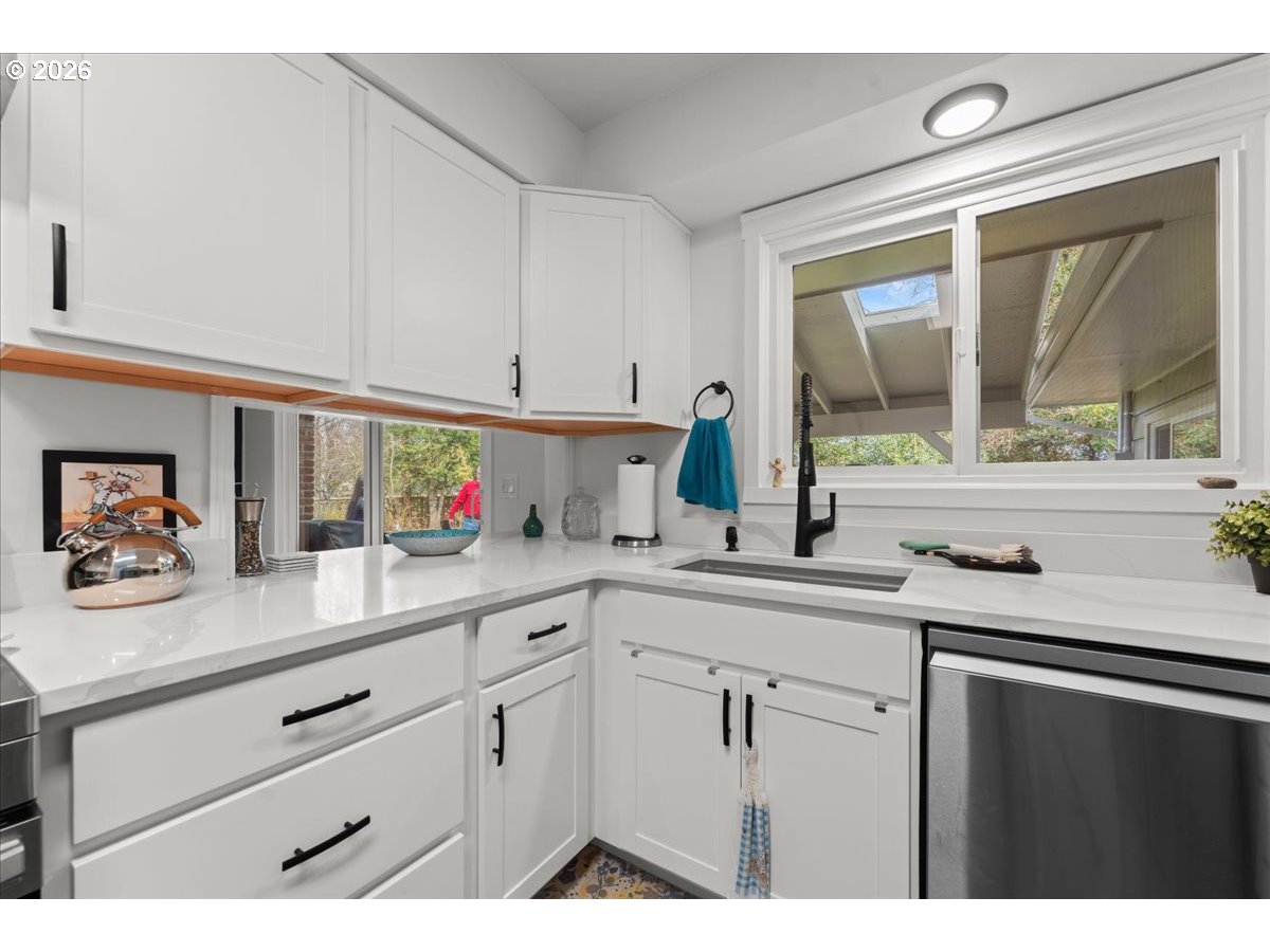 (503) 893-8874Fully remodeled 3-bedroom, 2-bath home offering 1,968 square feet in desirable Raleigh Hills. This home has been tastefully updated throughout with refinished hardwood oak floors, all new dual-pane vinyl windows, fresh interior and exterior paint, and updated lighting and finishes. The living room features a cozy fireplace, while the formal beamed dining room connects seamlessly to the backyard through new sliding doors, creating an easy flow for everyday living and entertaining. A covered outdoor living area with skylights expands the usable space and makes entertaining comfortable year-round. The kitchen is completely new with quartz countertops, soft-close cabinetry, new appliances, and new vinyl tile flooring that extends into the family room. Major system upgrades have already been completed, including a new roof and sewer line (2025), a new hot water heater (2025), a new heat pump (2023), and a new insulated garage door (2025). Ask your realtor for a complete list. This is a rare opportunity to own a truly turnkey home in one of the most sought-after pockets of Raleigh Hills.
