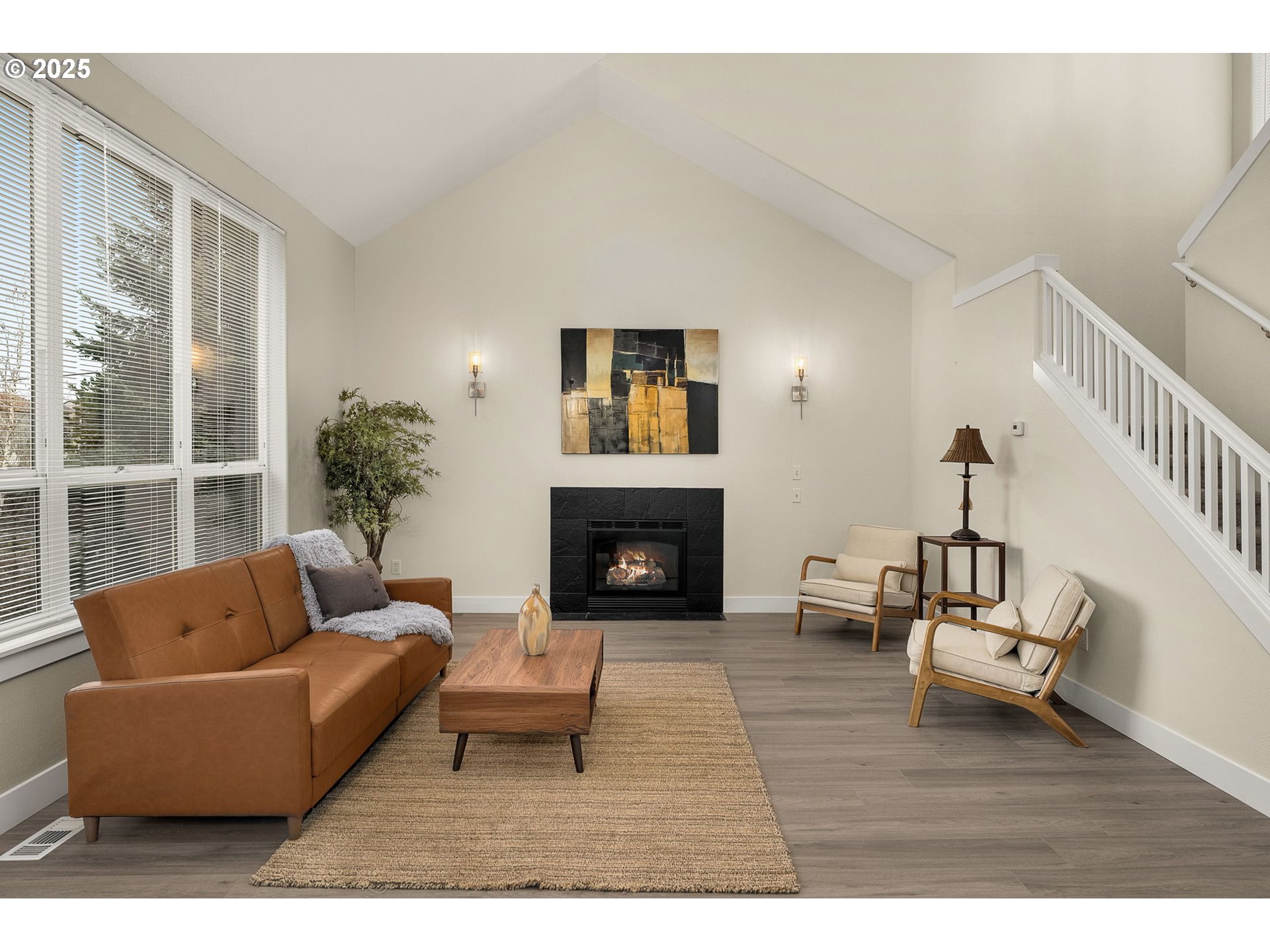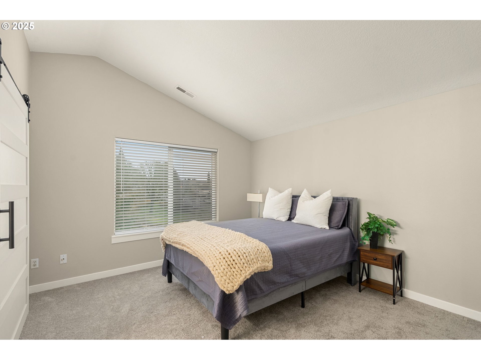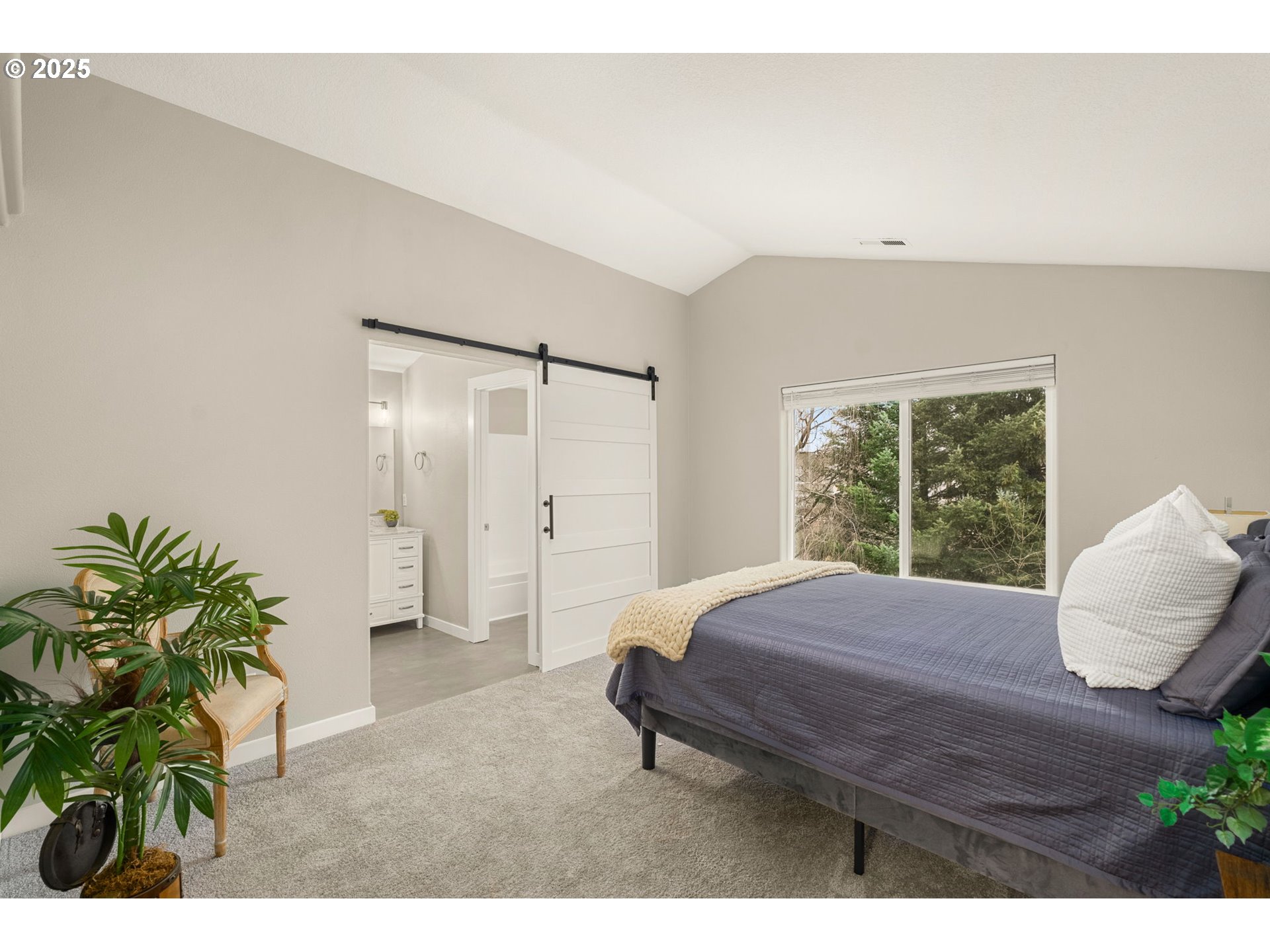 Welcome home to your private oasis on a beautiful dedicated greenspace. You'll appreciate private sunrises and entertaining options from the deck or vaulted main floor with stunning views. Updates throughout including new flooring, interior paint, stainless steel appliances and barn door in the primary bedroom. Central location and yard that is waiting for your vision. A member of the selling entity is a licensed real estate agent.