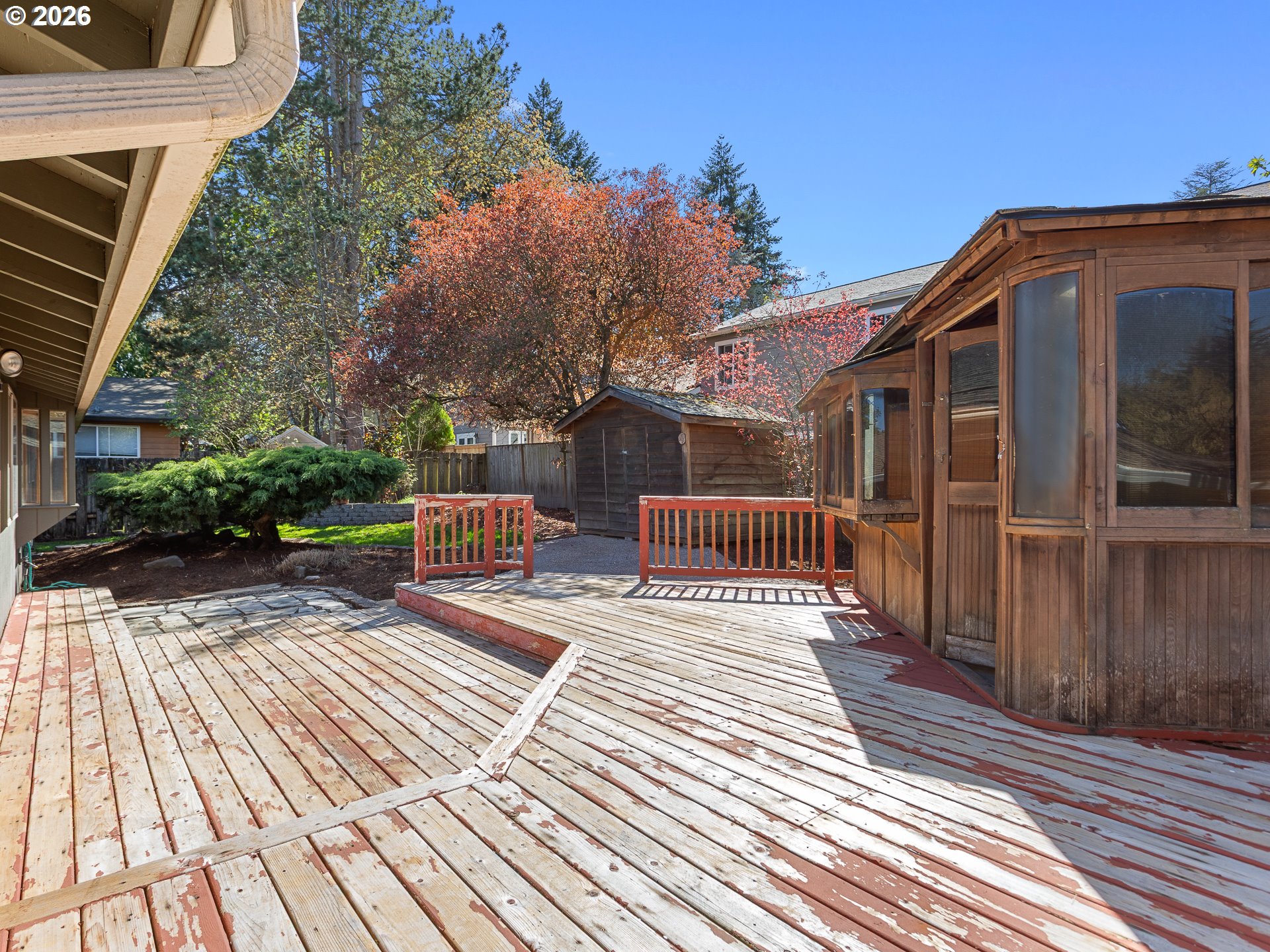 (503) 893-8874SINGLE LEVEL LIVING ON A MAGNIFICENTLY MANICURED 7,000 sqft LOT, A GARDENERS DELIGHT! Spinnaker and Windjammer connect with 141st on the east and 142nd on the west forming a tiny horseshoe of homes; a private, secluded, quiet island of serenity. Glorious natural light streams thru abundant windows warming this comfy gem that boasts new lighting fixtures, new interior paint and all new flooring throughout. This home features a primary bedroom with its own bathroom and both a living room and a family room for formal or funtime activity. Outside the unique lot is a veritable wonderland of existing landscaped beauty and possibilities including a large shed and fully enclosed hut with Hot tub! The massive deck makes for sunny lounging and fun. Sidewalks pave the entire 1 mile to Evelyn M. Schiffler Memorial Park with sports court, skating, play areas and covered picnic area!