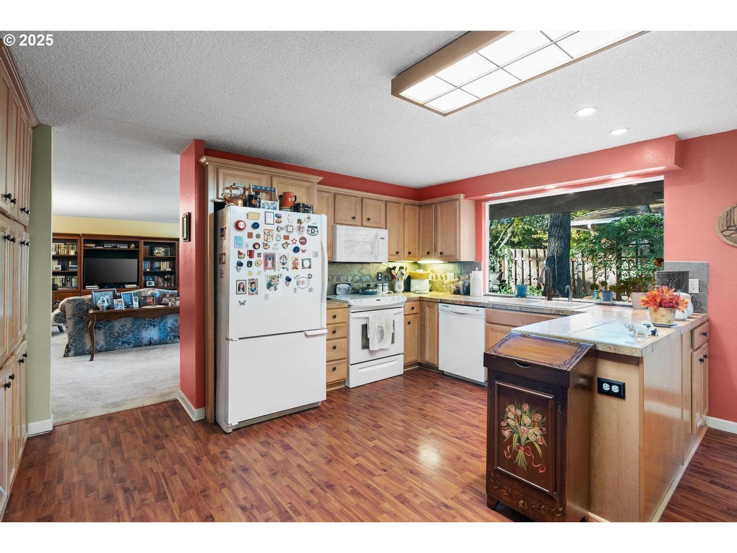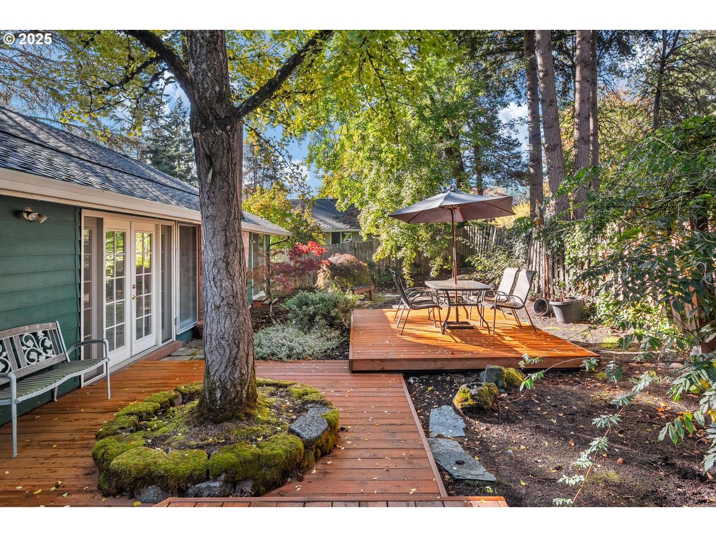 Nice one level home in desirable Four Seasons. Great culdesac location, Mountainside High School. The home offers a brand new driveway, new Certainteed Presidential 50 year roof and new backyard deck. Solid double wall construction with cedar siding. Great floorplan with large kitchen/dining area, kitchen with lots of cabinets, tile counters. Very spacious living room with wood burning fireplace and french doors opening to the deck and backyard. The primary bedroom offers a sliding glass door that opens to the backyard. Both bathrooms feature tiled floors and counters. Washer, dryer and refrigerator are included. Forced air gas heating, central air conditioning, 2 car garage. Enjoy a great neighborhood offering pool, clubhouse, walking trails and ponds at a bargain price!