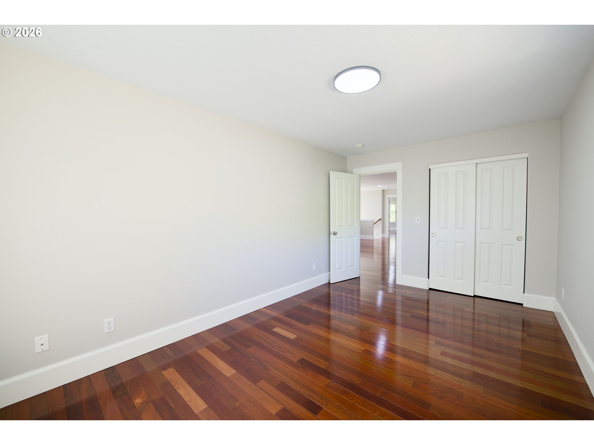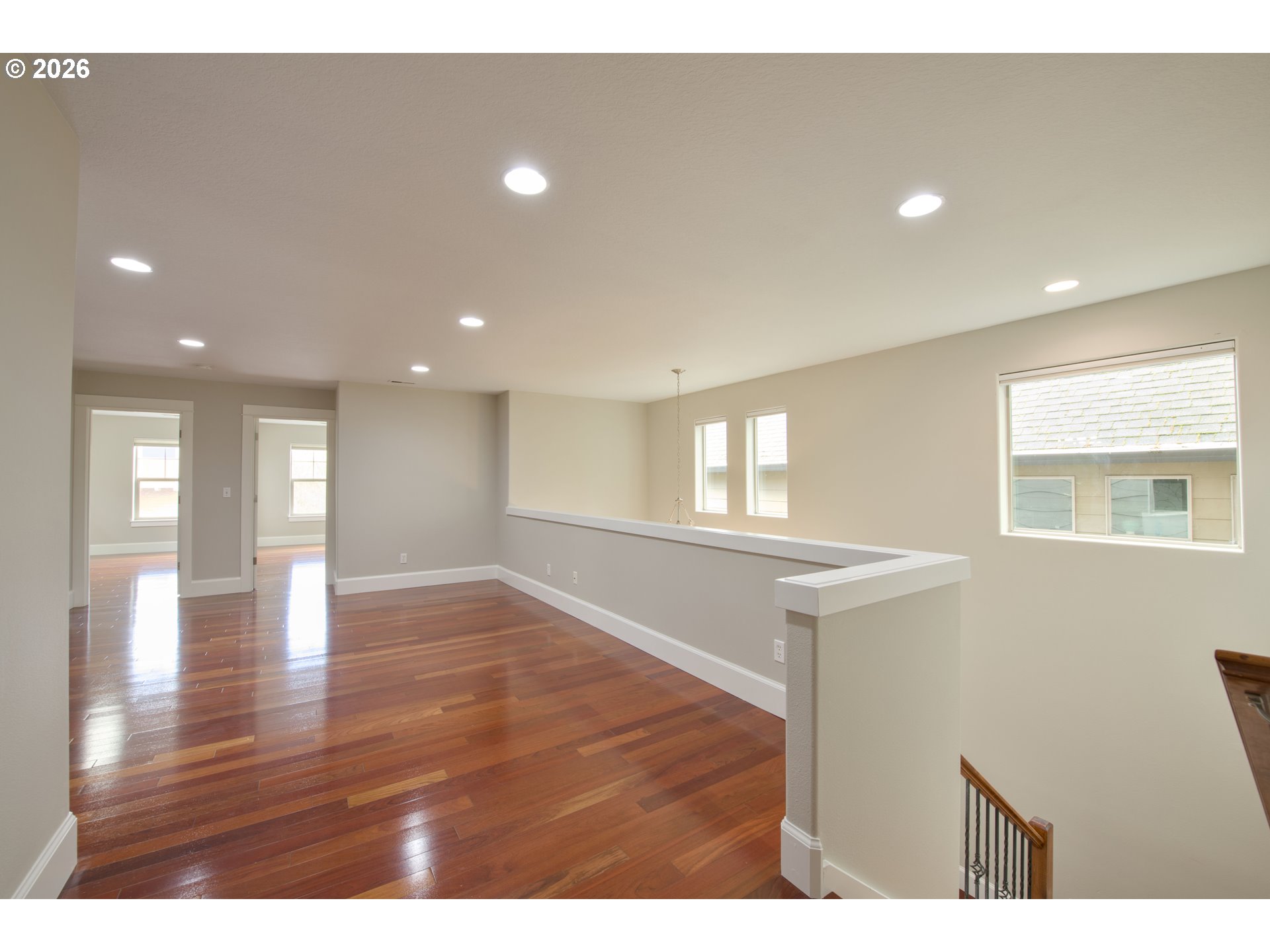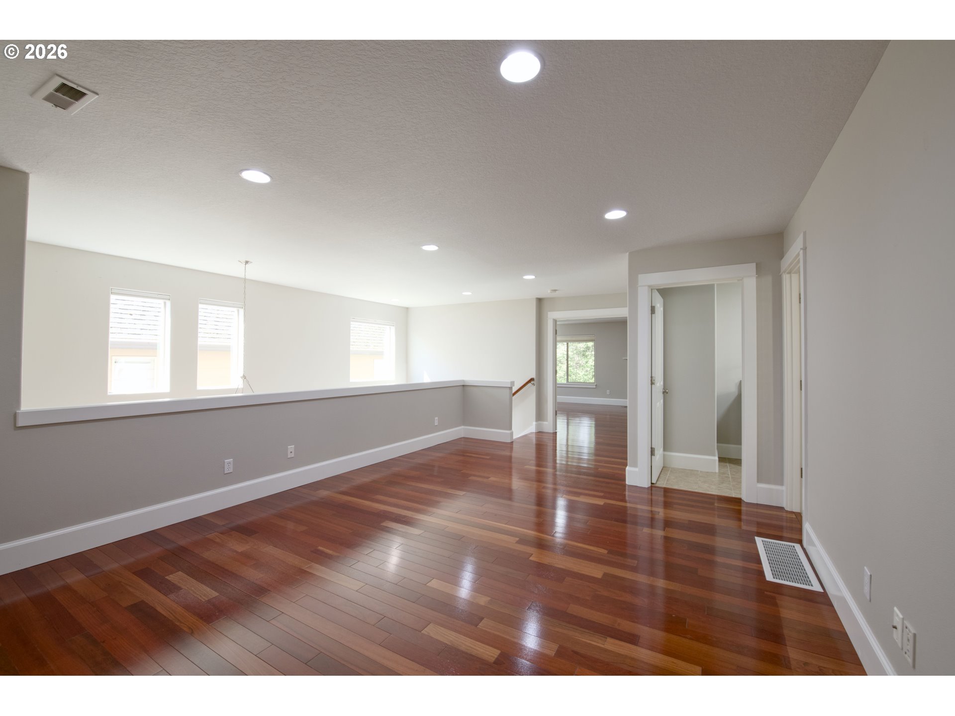This east-facing home features a welcoming front porch with a new deck. You will be pleased to enter the 2-story foyer, which features several windows that bring in natural light. The entire home has gleaming 3/4" cherry hardwood floors and high ceilings. The great room layout is ideal for entertaining. The spacious kitchen offers an eating bar, stainless steel appliances, large walk-in pantry, and a full-height backsplash. The elegant wooden baluster, iron spindles, and stair lights adorn the staircase, leading to the versatile 24x14 loft that works well as an office, play area or fitness space. Huge windows above the staircase with convenient remote-controlled blinds provide abundant light. The primary suite overlooks a peaceful wooded setting. Imagine waking up each day to nature! The room is huge, with a step ceiling and a fireplace that add to its elegance and luxury. The bathroom has a soaking tub, a separate shower and spacious walk-in closet. Two additional bedrooms are generously sized and next to a remodeled bathroom with an attractive tile surround step-in shower. Both bathrooms and the laundry room have tile floors. The home has a new roof, new interior paint and some new light fixtures. The water heater was replaced in 2022. This home has been professionally cleaned and is ready for its new owners.You will enjoy the quiet dead-end street, the wooded greenbelt at the back which provides privacy and cool summer afternoons and a path to the Rock Creek Trail out front. The home has a convenient location near PCC Rock Creek and is just minutes from Nike, Intel, shops, and the freeway.