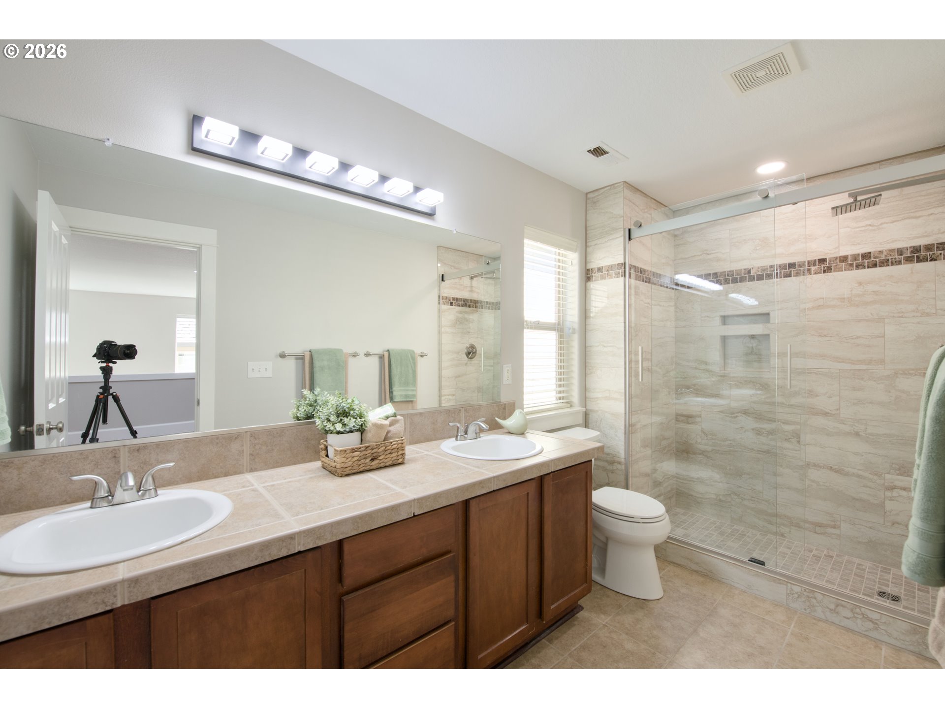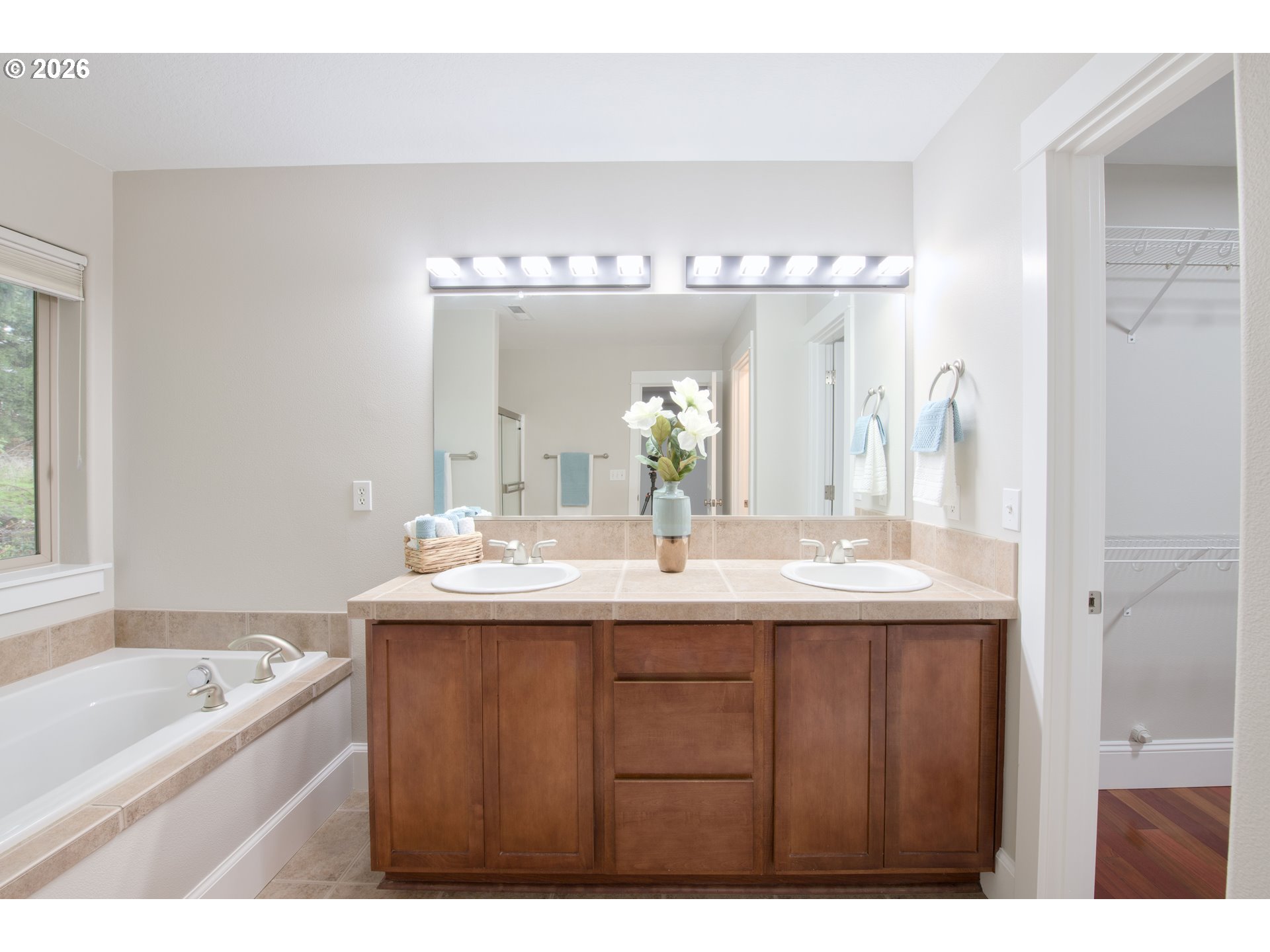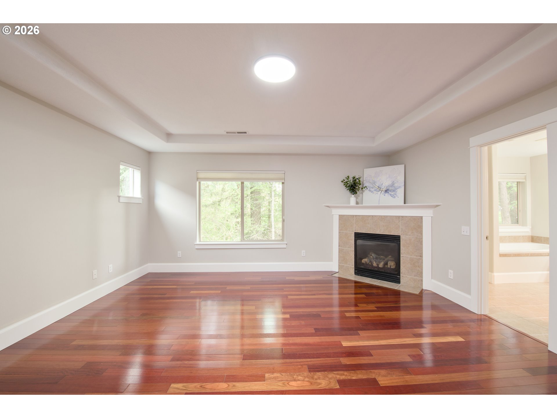 This east-facing home features a welcoming front porch with a new deck. You will be pleased to enter the 2-story foyer, which features several windows that bring in natural light. The entire home has gleaming 3/4" cherry hardwood floors and high ceilings. The great room layout is ideal for entertaining. The spacious kitchen offers an eating bar, stainless steel appliances, large walk-in pantry, and a full-height backsplash. The elegant wooden baluster, iron spindles, and stair lights adorn the staircase, leading to the versatile 24x14 loft that works well as an office, play area or fitness space. Huge windows above the staircase with convenient remote-controlled blinds provide abundant light. The primary suite overlooks a peaceful wooded setting. Imagine waking up each day to nature! The room is huge, with a step ceiling and a fireplace that add to its elegance and luxury. The bathroom has a soaking tub, a separate shower and spacious walk-in closet. Two additional bedrooms are generously sized and next to a remodeled bathroom with an attractive tile surround step-in shower. Both bathrooms and the laundry room have tile floors. The home has a new roof, new interior paint and some new light fixtures. The water heater was replaced in 2022. This home has been professionally cleaned and is ready for its new owners.You will enjoy the quiet dead-end street, the wooded greenbelt at the back which provides privacy and cool summer afternoons and a path to the Rock Creek Trail out front. The home has a convenient location near PCC Rock Creek and is just minutes from Nike, Intel, shops, and the freeway.