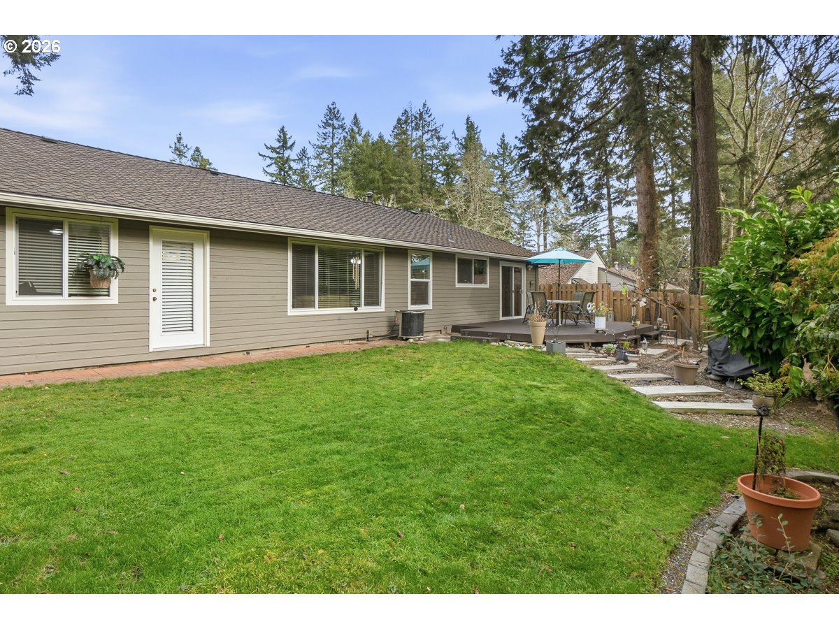 Exceptional light-filled, updated single-level home in the coveted Four Seasons neighborhood. Step into your own sanctuary featuring a spacious open-concept living area with abundant natural light, updated windows, and newer luxury vinyl plank flooring throughout. Enjoy peace of mind with a newer 50-year Presidential roof. The open kitchen is ideal for everyday living and entertaining, showcasing granite countertops, a center island with eating bar, stainless steel appliances, and extra custom built-in cabinetry. The adjacent dining area flows effortlessly to the outdoors. The large primary suite offers a private bathroom, walk-in closet, and an exterior door—perfect for enjoying morning coffee or fresh air. An additional updated bathroom and tasteful molding throughout the home create a warm, welcoming, and polished feel.Second bathroom offers a jetted tub and nice updates. Outdoors, relax in the easy-maintenance, park-like setting featuring a custom deck and multiple sitting areas—ideal for entertaining or simply enjoying seasonal birds and gentle breezes.