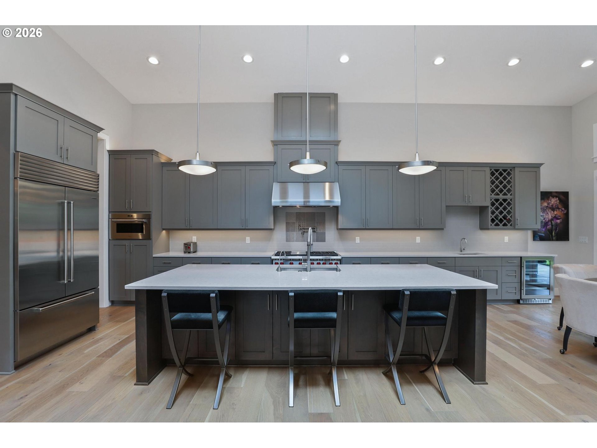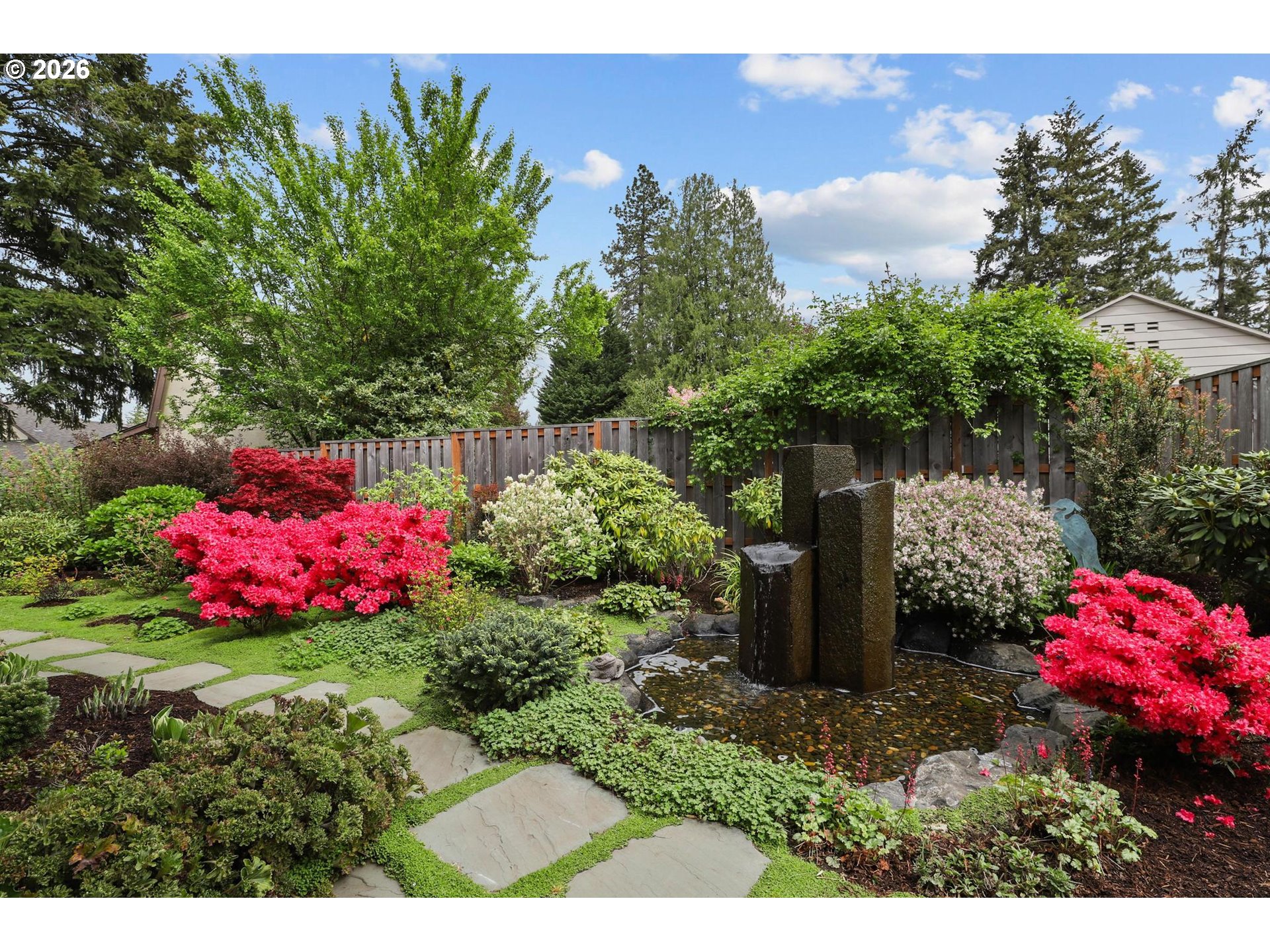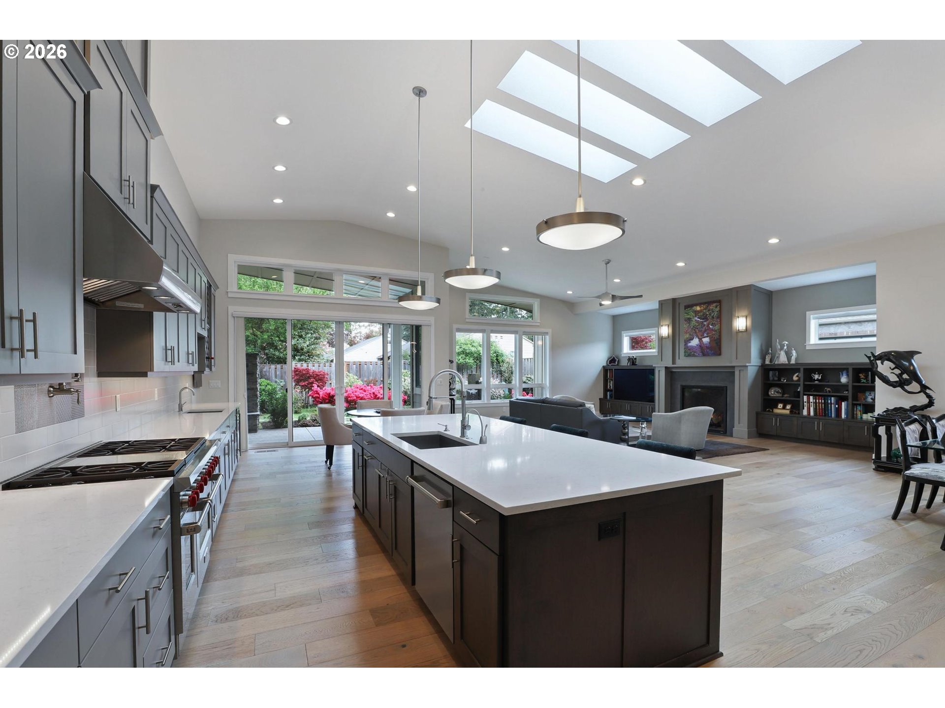 Impressive single-level luxury in gated Raleigh Hills neighborhood. Built by Mission Homes in 2018, this 3,546 sq. ft. home offers 3 bedrooms + den and 3 full baths, including a large primary suite and attached casita-perfect for nanny, caretaker etc. Wide plank hardwood floors, extensive millwork and soaring high ceilings throughout. Vaulted great room features 19' ceilings, skylights, floor-to-ceiling windows, gas fireplace, and built-ins. Gourmet kitchen with 48" Wolf commercial range, Subzero refrigerator, oversized quartz island, wine storage, and huge walk-in pantry(16'x5'). Primary suite has patio access, soaking tub, walk-in shower and large closet with island. Well-designed mudroom with custom cabinetry, bench and tons of storage. Fully fenced yard with covered stamped concrete patio, outdoor fireplace, custom water feature, and stunning professional landscaping designed to bloom year round. Great location, WA county. Mins to Portland Golf Club.