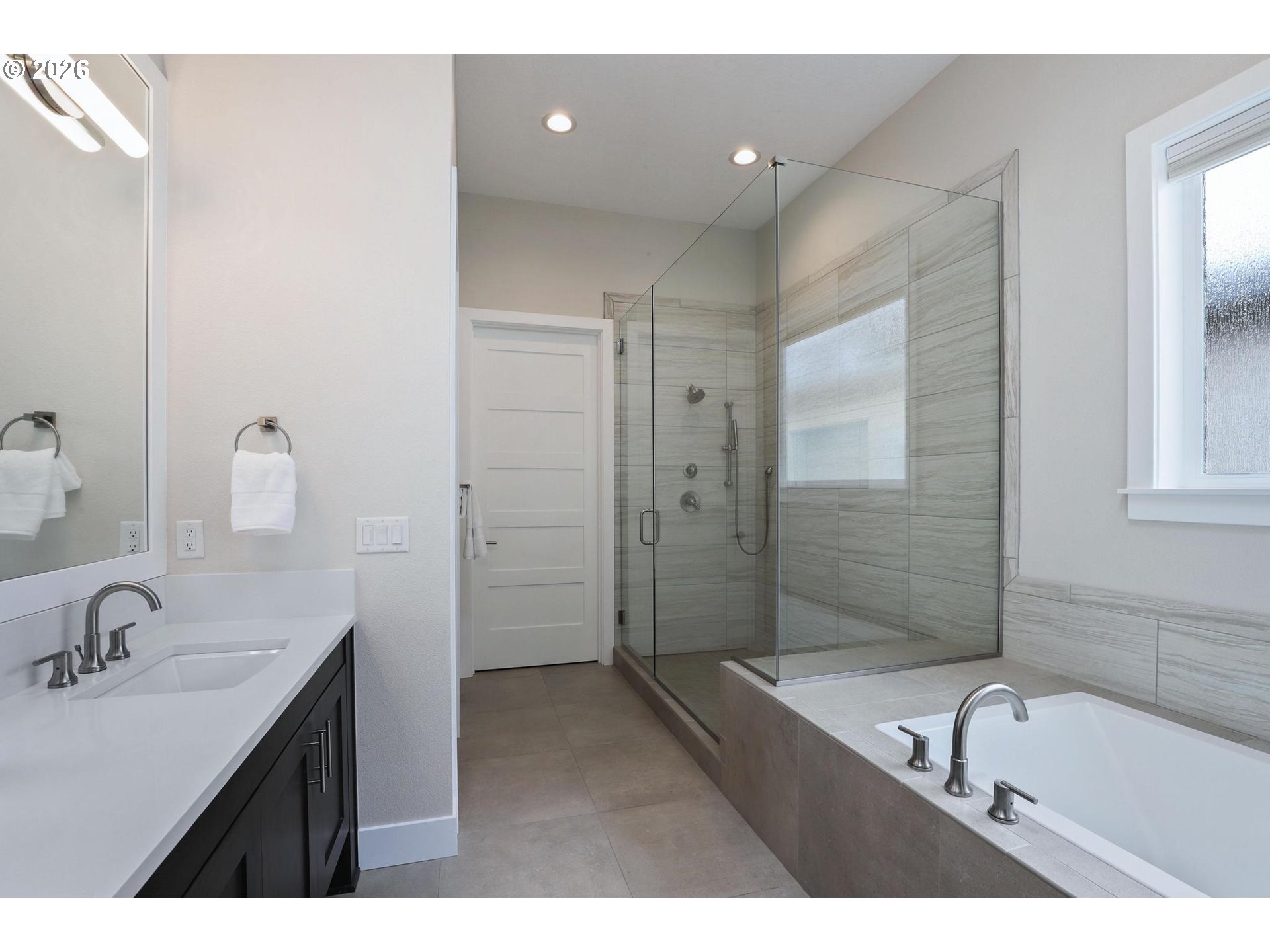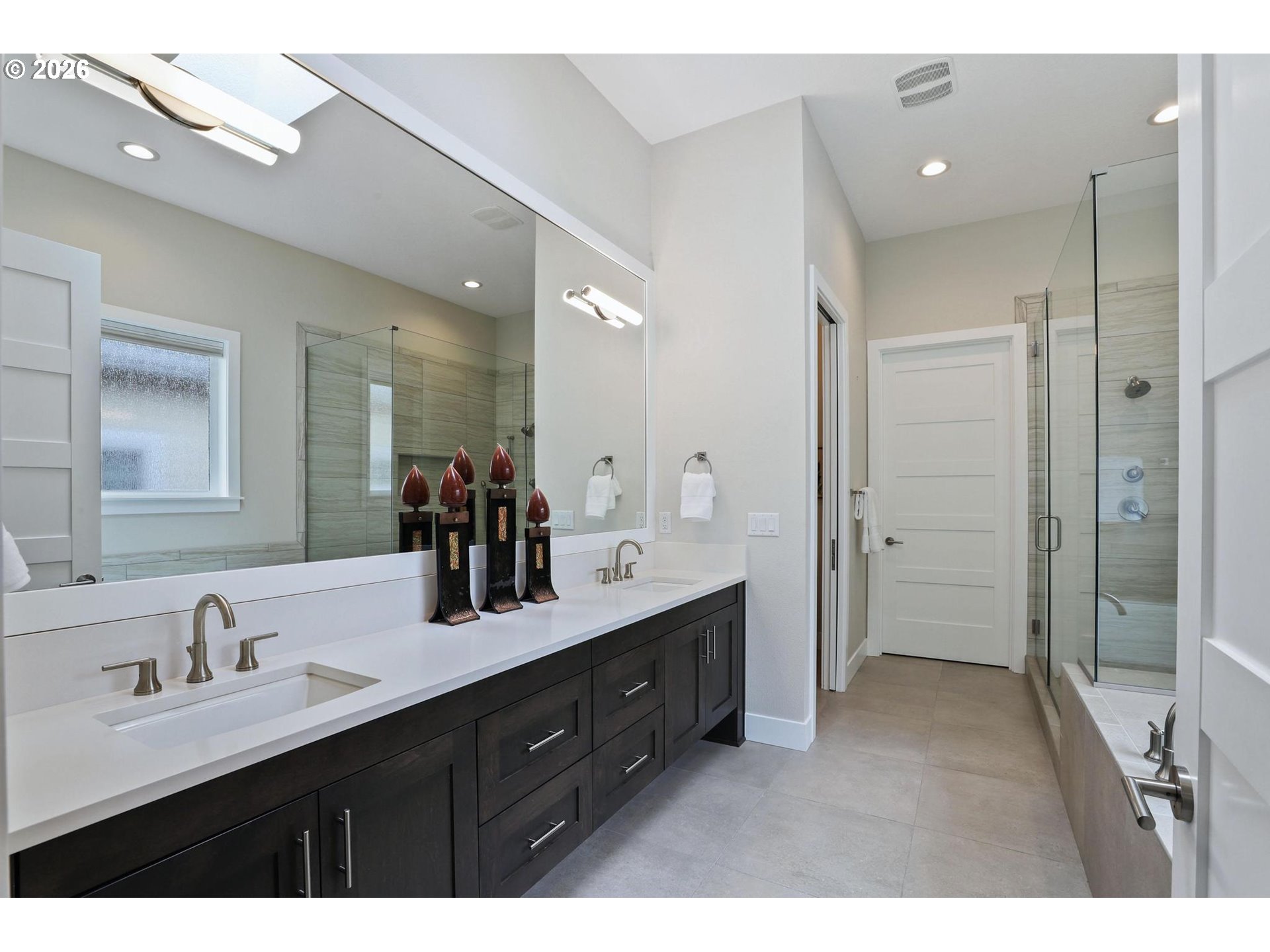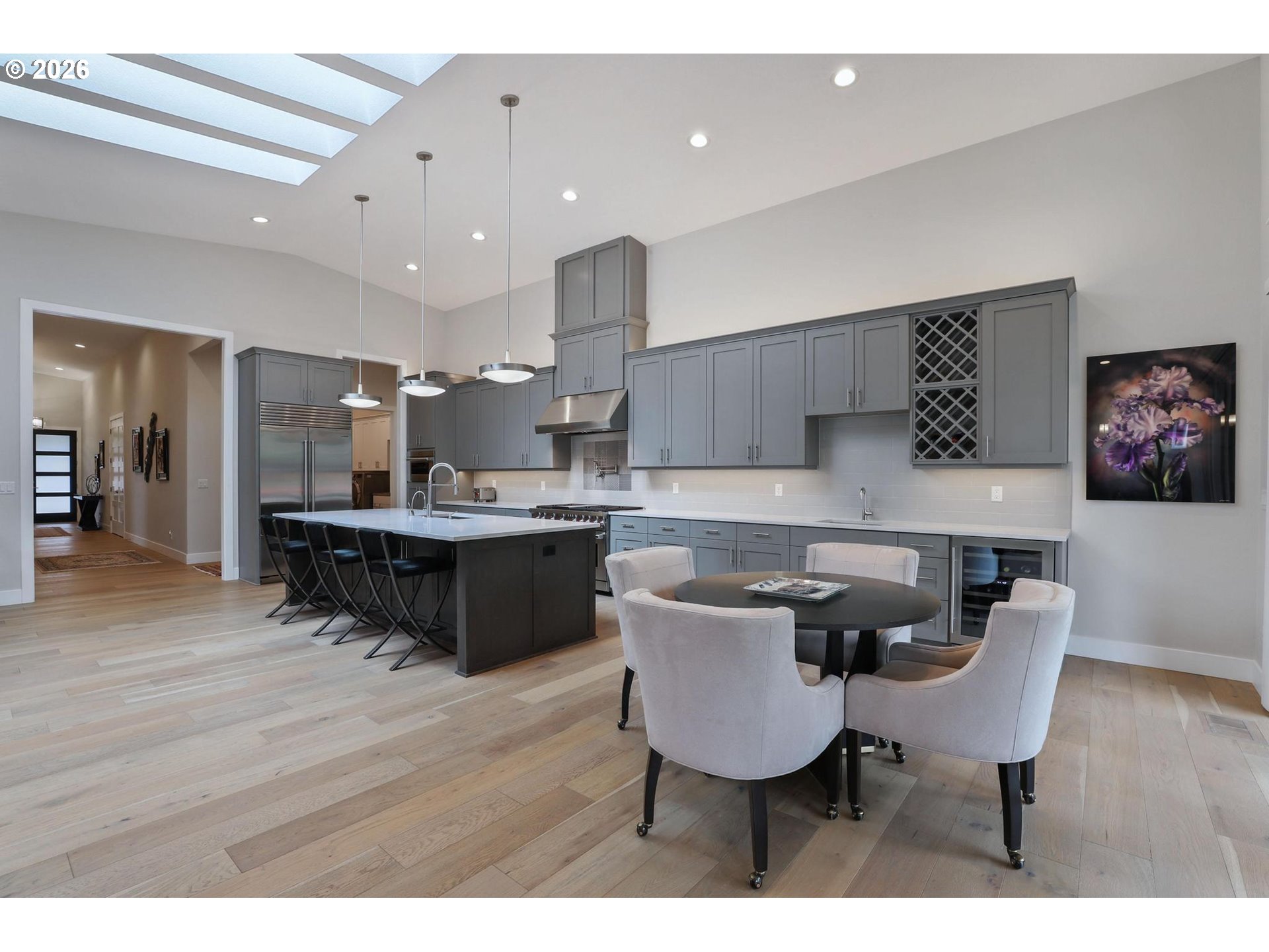 Impressive single-level luxury in gated Raleigh Hills neighborhood. Built by Mission Homes in 2018, this 3,546 sq. ft. home offers 3 bedrooms + den and 3 full baths, including a large primary suite and attached casita-perfect for nanny, caretaker etc. Wide plank hardwood floors, extensive millwork and soaring high ceilings throughout. Vaulted great room features 19' ceilings, skylights, floor-to-ceiling windows, gas fireplace, and built-ins. Gourmet kitchen with 48" Wolf commercial range, Subzero refrigerator, oversized quartz island, wine storage, and huge walk-in pantry(16'x5'). Primary suite has patio access, soaking tub, walk-in shower and large closet with island. Well-designed mudroom with custom cabinetry, bench and tons of storage. Fully fenced yard with covered stamped concrete patio, outdoor fireplace, custom water feature, and stunning professional landscaping designed to bloom year round. Great location, WA county. Mins to Portland Golf Club.