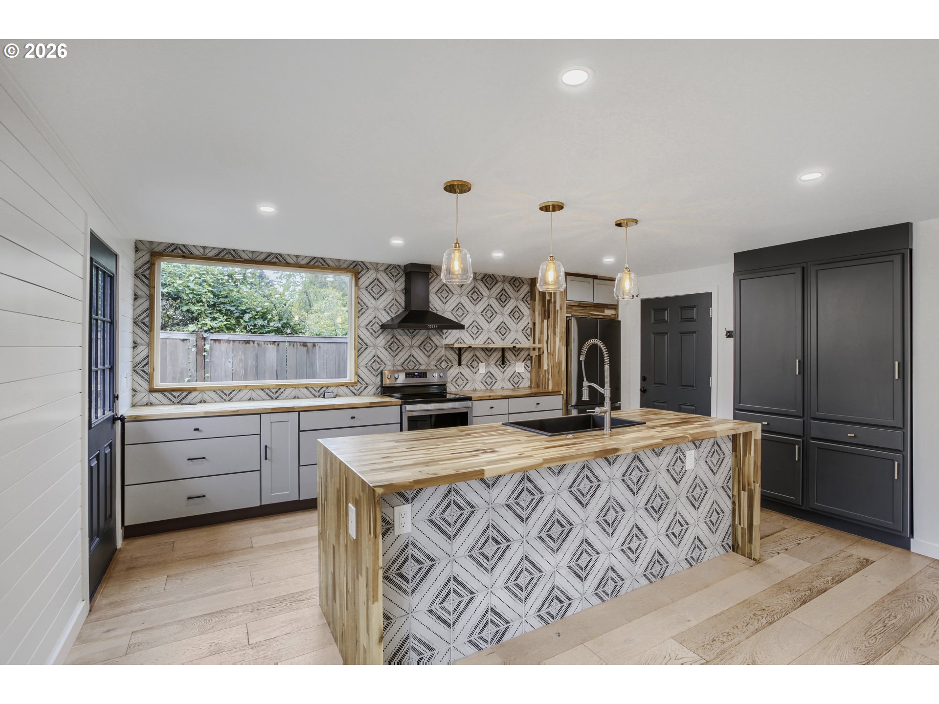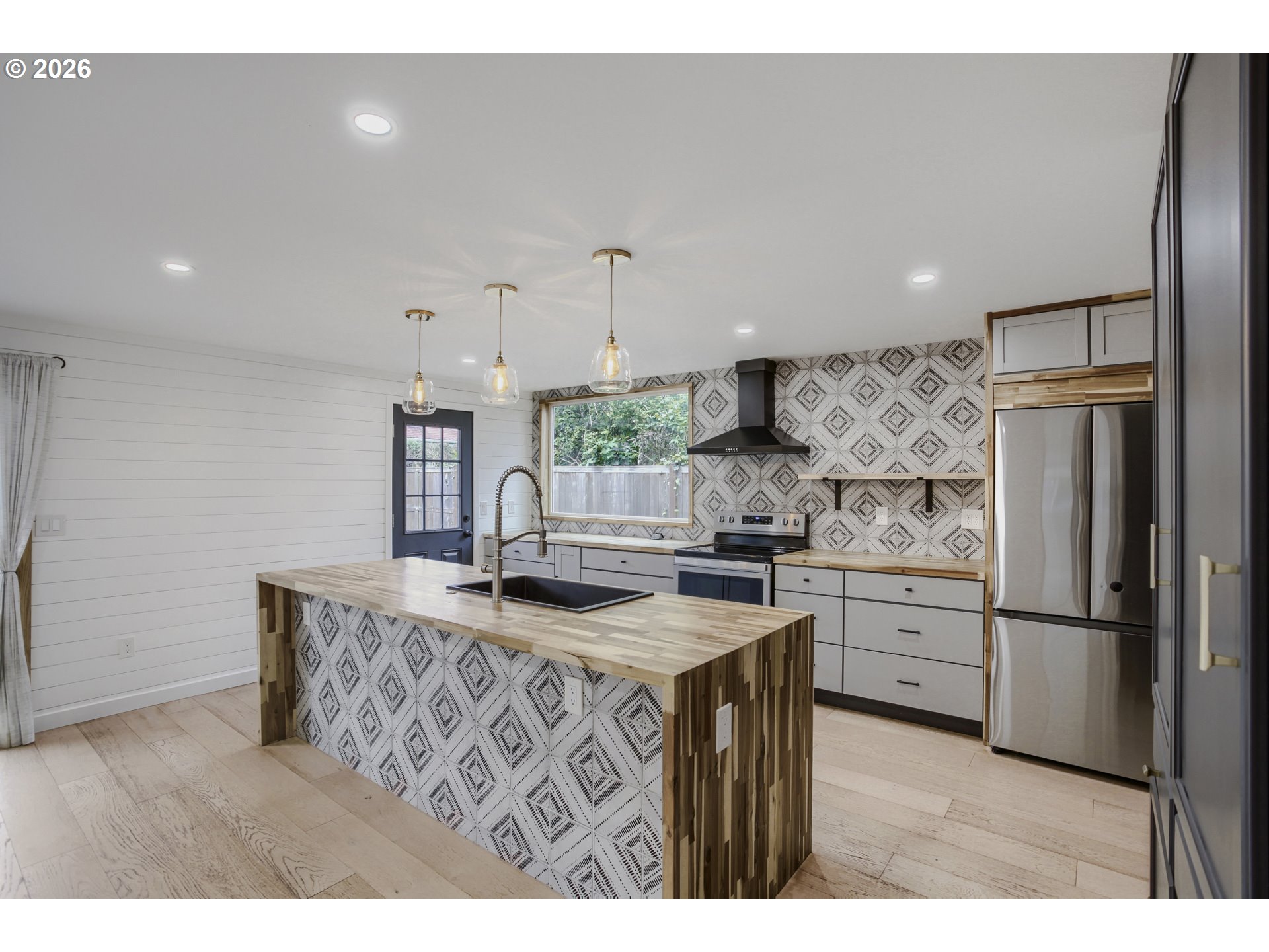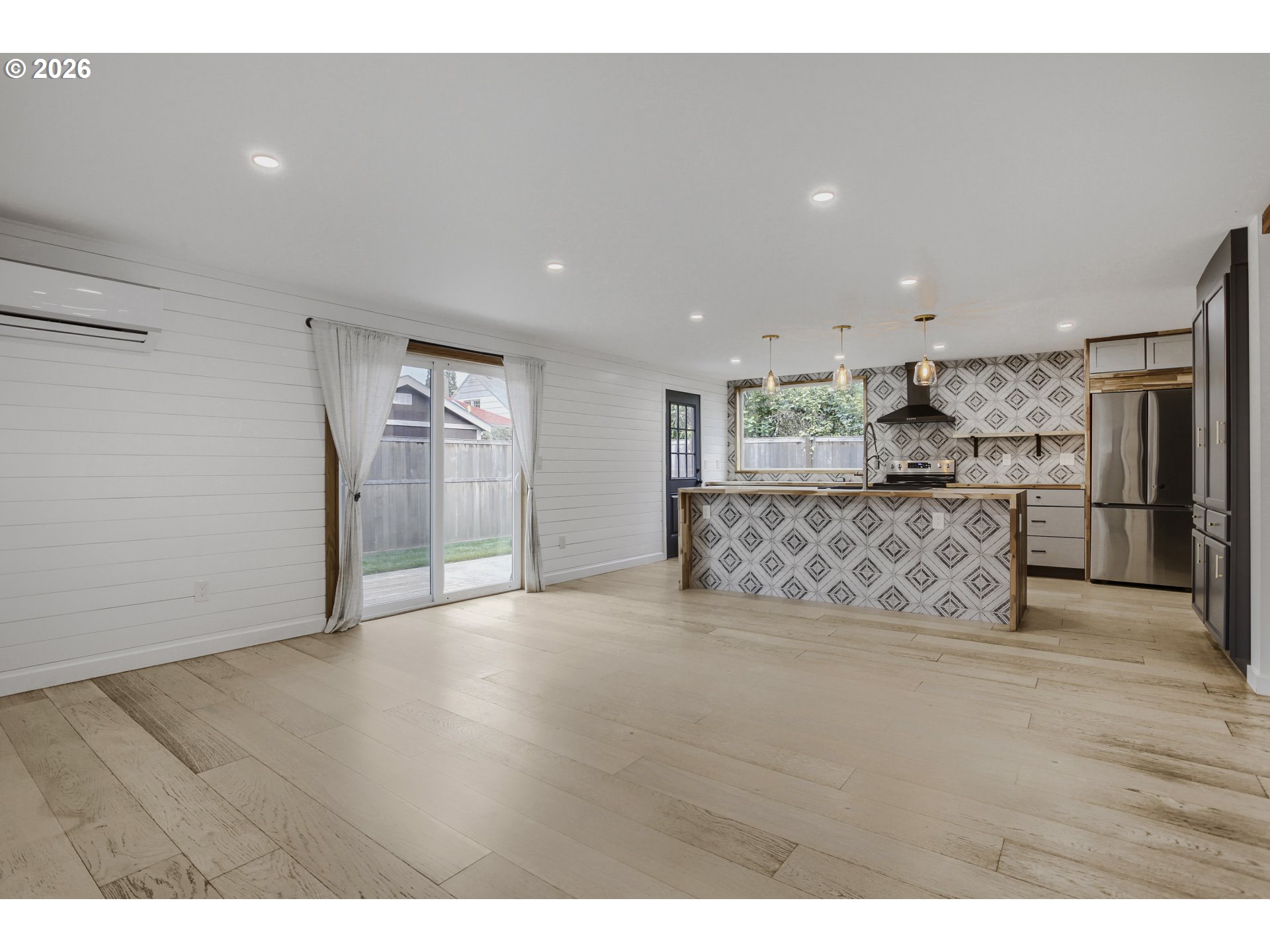 Stunning down-to-the-studs renovation in a highly desirable Hillsboro location, just minutes from parks, shopping, dining, and downtown amenities. Rebuilt with a focus on quality, efficiency, and modern design, this home offers the feel of new construction with custom character throughout. | Inside, you’ll find a bright, open layout with cohesive, high-quality finishes including custom butcher block countertops and reclaimed tongue-and-groove flooring. The kitchen features stainless steel appliances and flows seamlessly into the main living space, where large glass sliders open to a private patio and fully fenced backyard, ideal for everyday living and entertaining. | Major systems have been fully updated, including plumbing, electrical, roof, skylight, and an efficient heating and cooling system, providing long-term comfort and peace of mind. | The home offers a three-bedroom layout, with the front room currently configured without a closet, ideal as a home office or guest room, with the option to easily convert to a traditional bedroom. | A rare opportunity to own a truly turnkey home combining thoughtful design, modern efficiency, and lasting value. [Home Energy Score = 7. HES Report at https://rpt.greenbuildingregistry.com/hes/OR10198122]